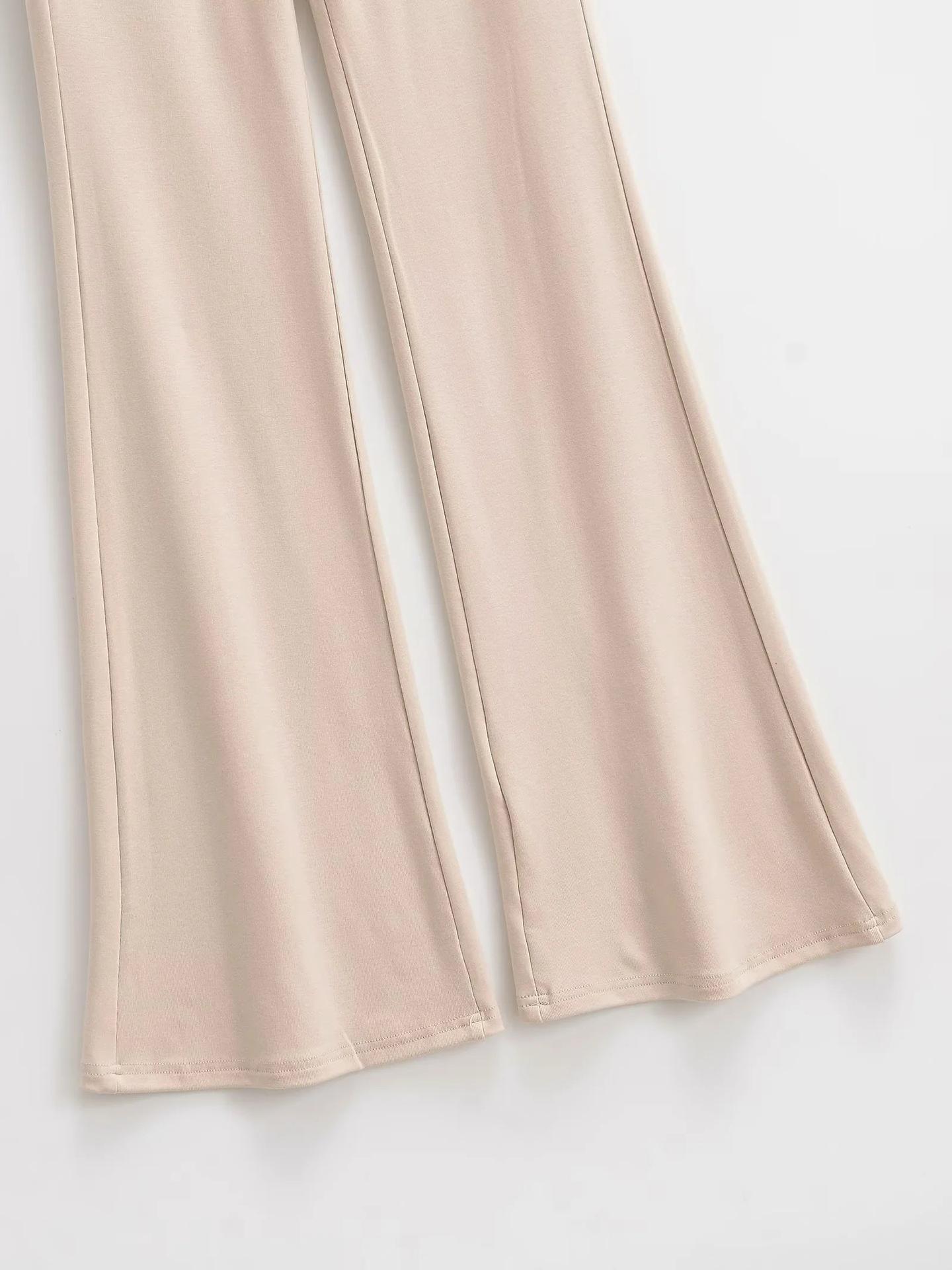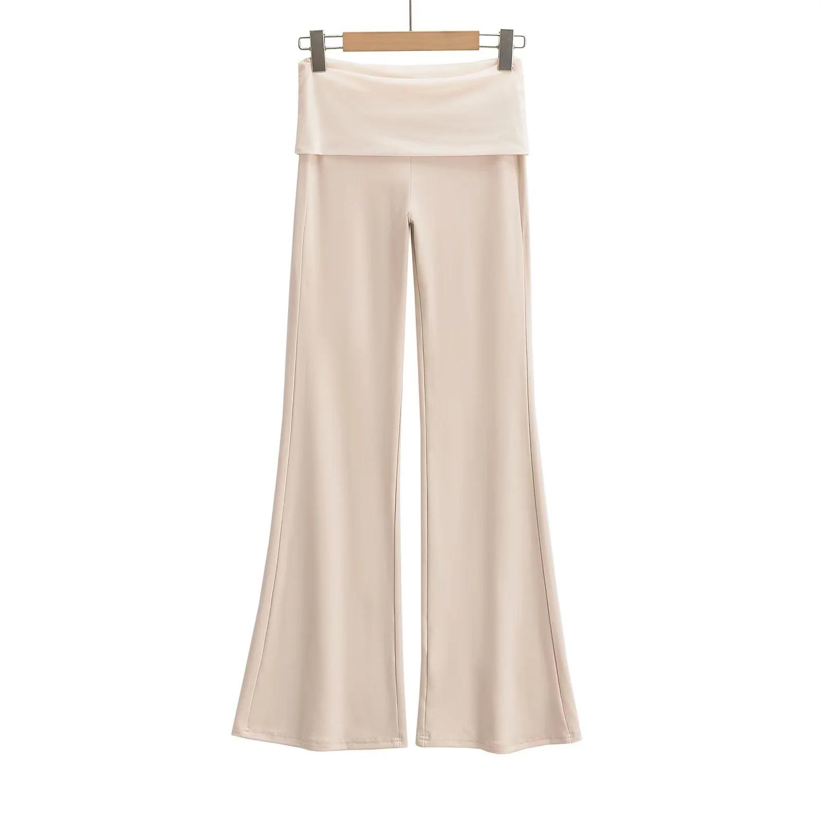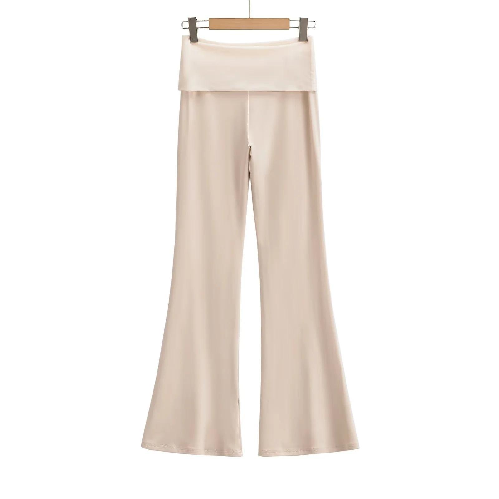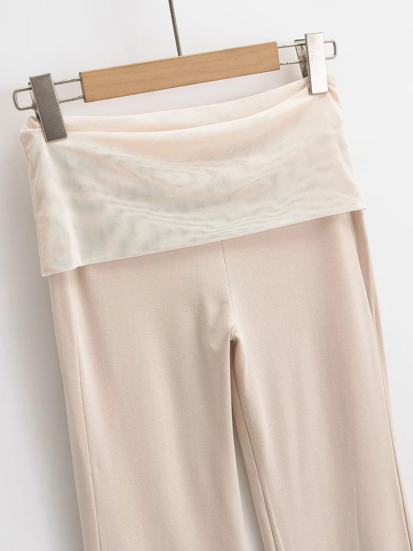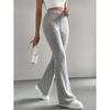 Pantalones acampanados drapeados de talle alto y corte slim con empalme de malla para mujer, pantalones versátiles deportivos casuales hasta el suelo al por mayor