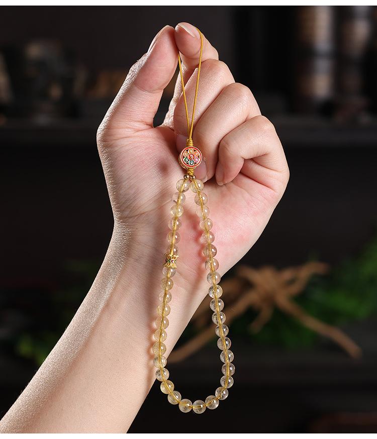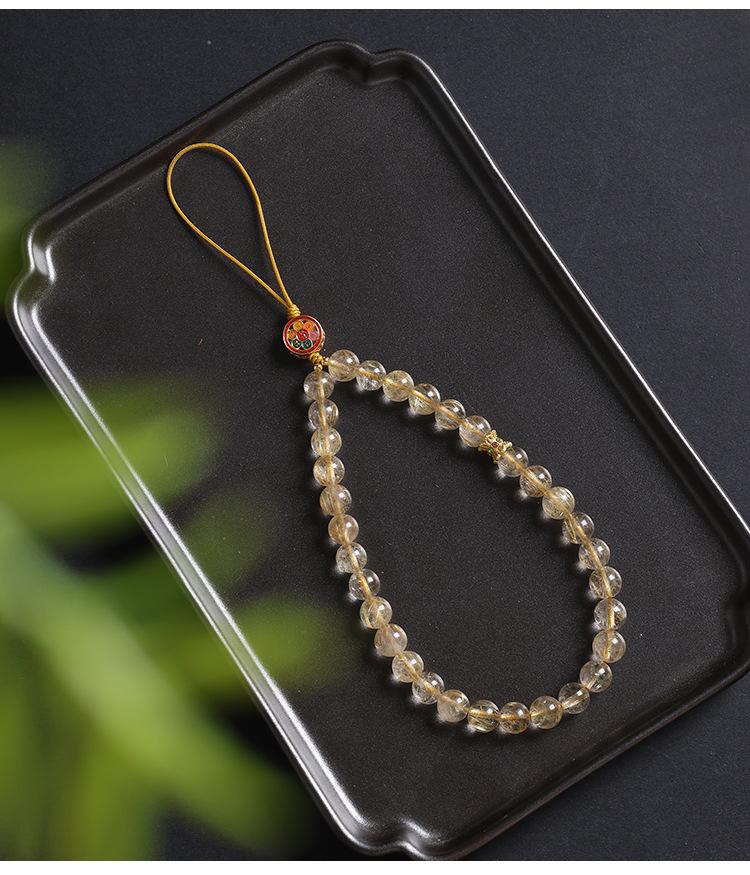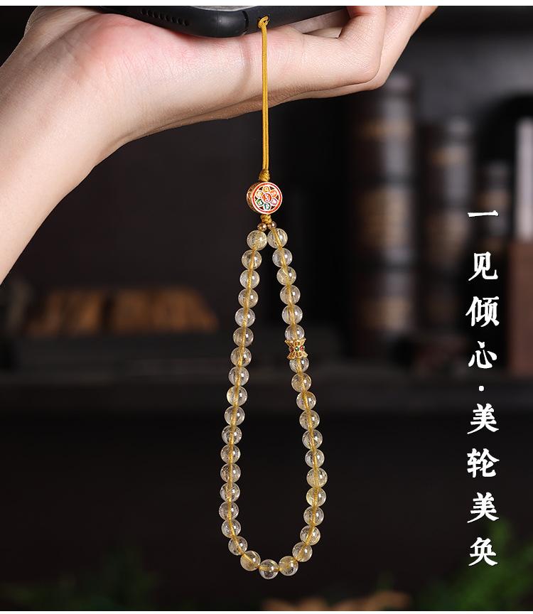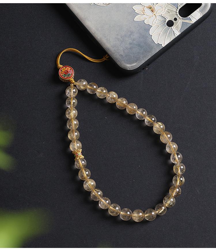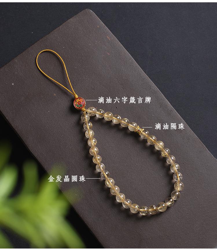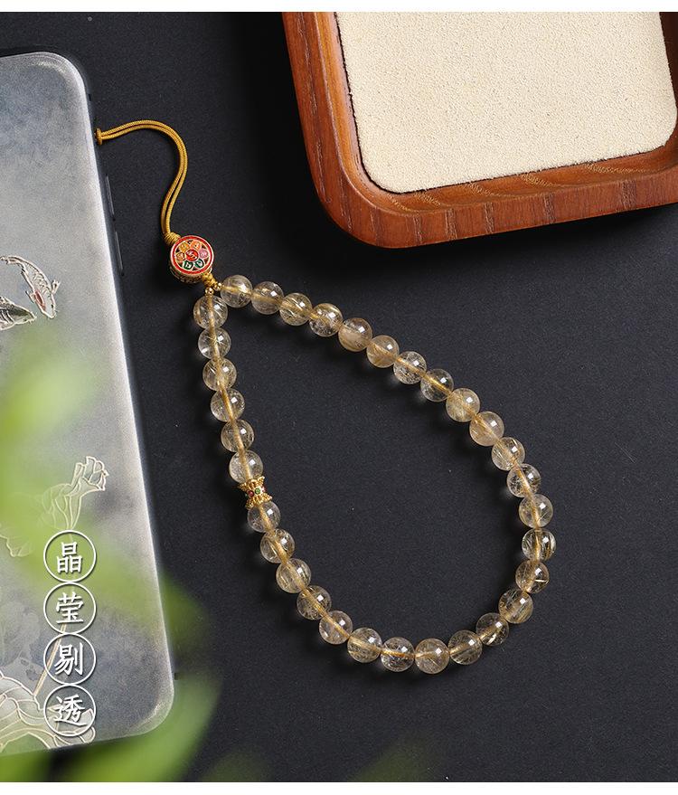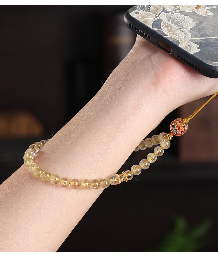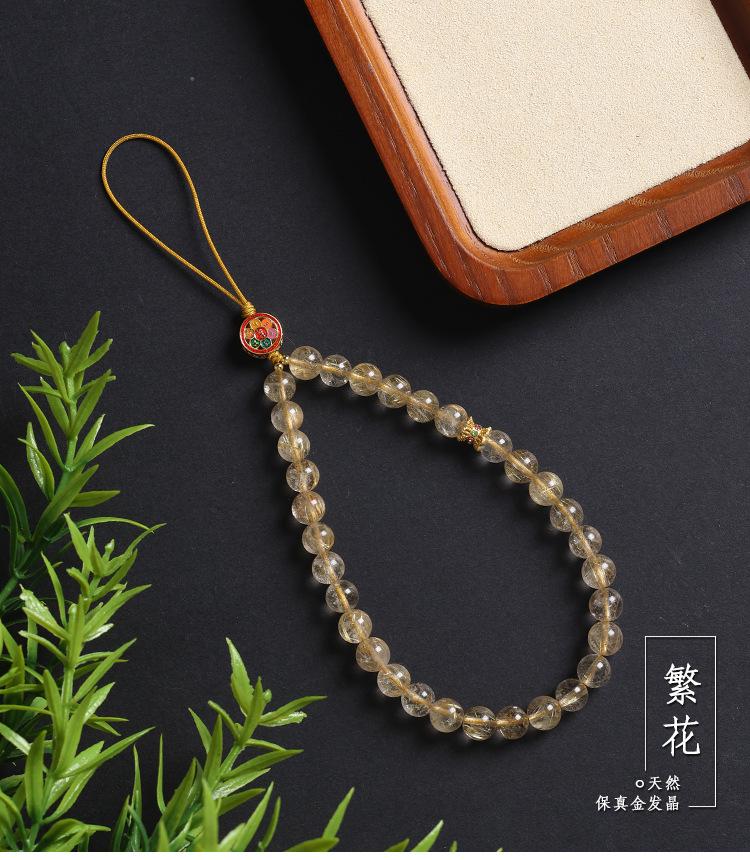 Cordón para Teléfono Móvil de Cristal de Cabello Dorado Natural para Mujer 2025 Nuevo Exquisito Colgante de Cadena para Teléfono Móvil Colgante de Cuerda Corta Anti-pérdida para Muñeca