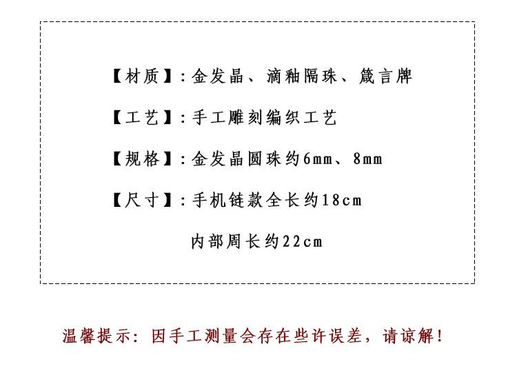 6mm blonde crystal mobile phone chain, 8mm blonde crystal mobile phone chain