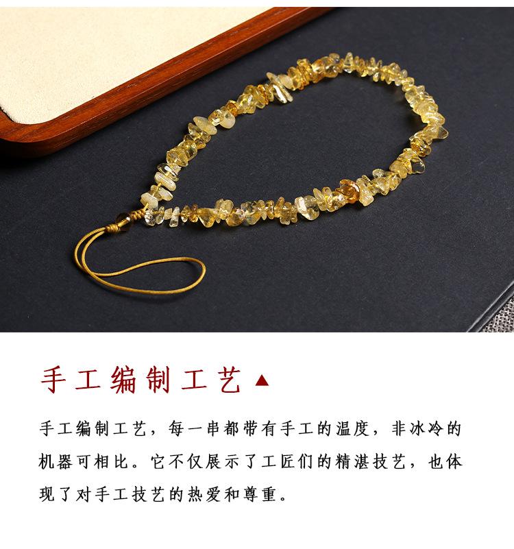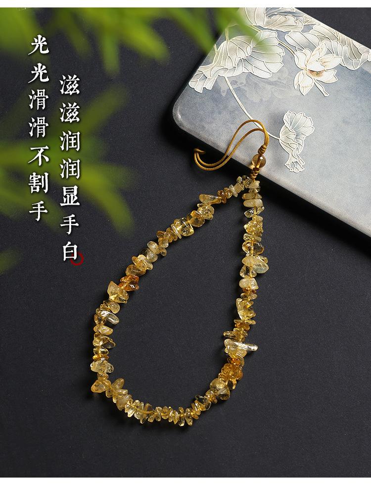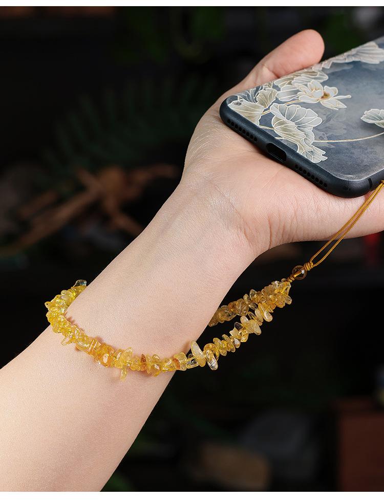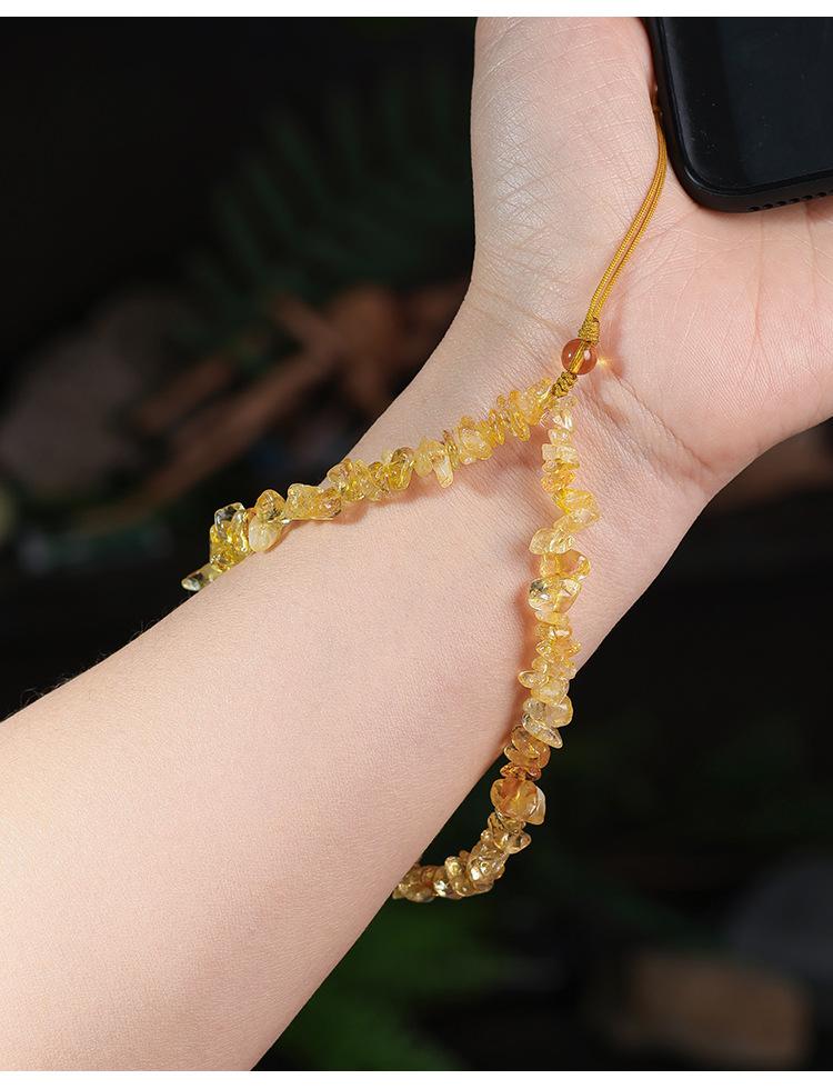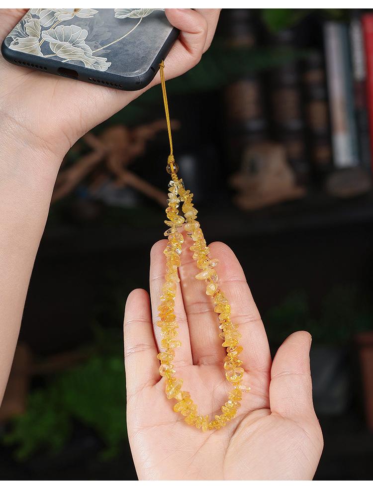 Cordón para teléfono móvil de citrino natural para mujer, fuente financiera, cristal de grava, cordón corto para muñeca, colgante de cadena antipérdida para teléfono móvil.