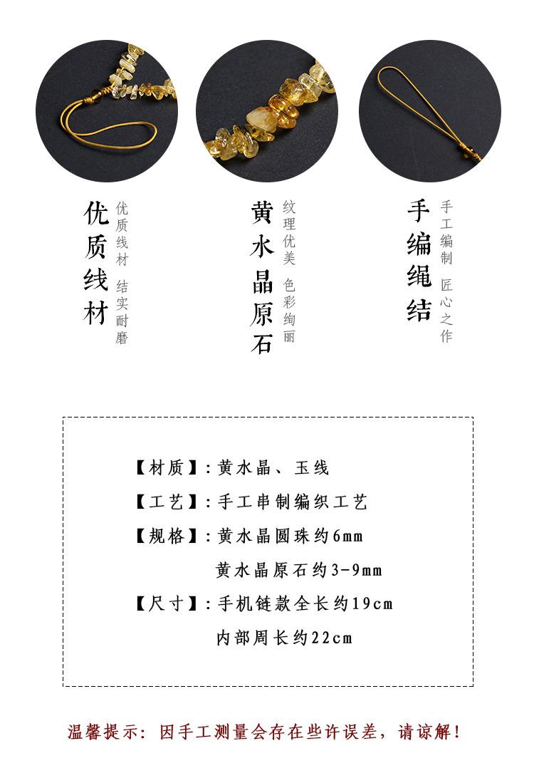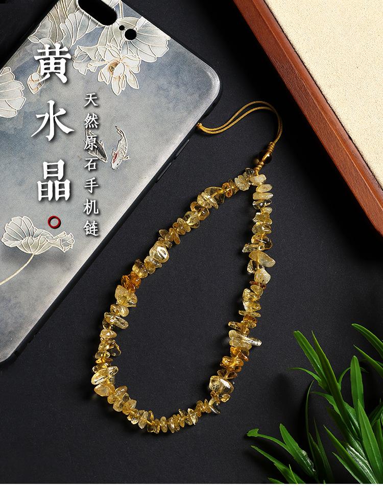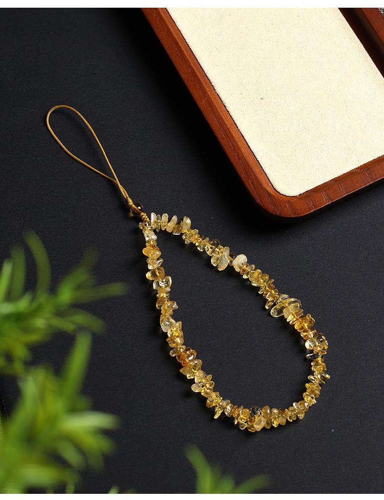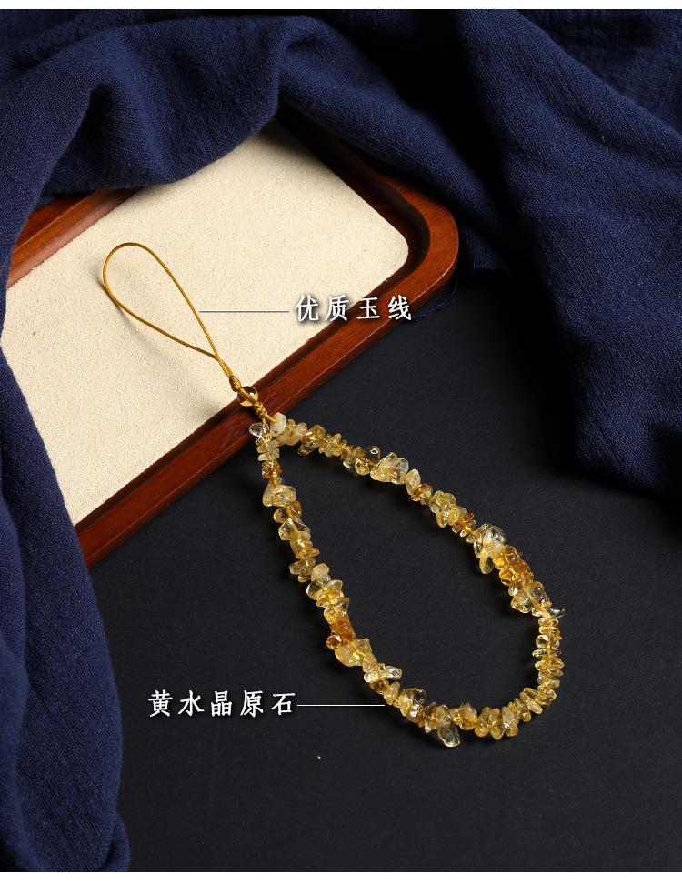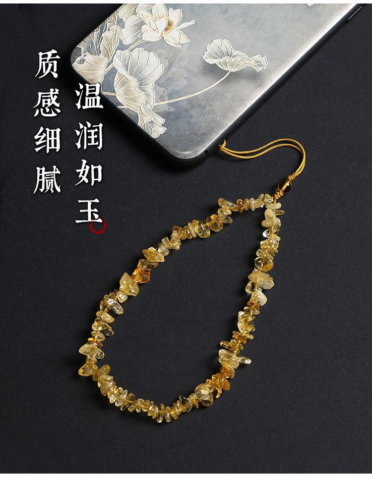 Cordón para teléfono móvil de citrino natural para mujer, fuente financiera, cristal de grava, cordón corto para muñeca, colgante de cadena antipérdida para teléfono móvil.