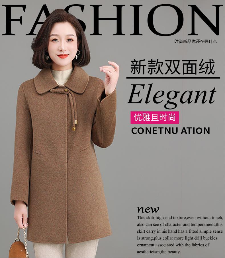 Abrigo de lana de doble vista estilo occidental para madre otoño e invierno 2024 nuevo señora rica mediana edad y anciana abrigo de lana suelto