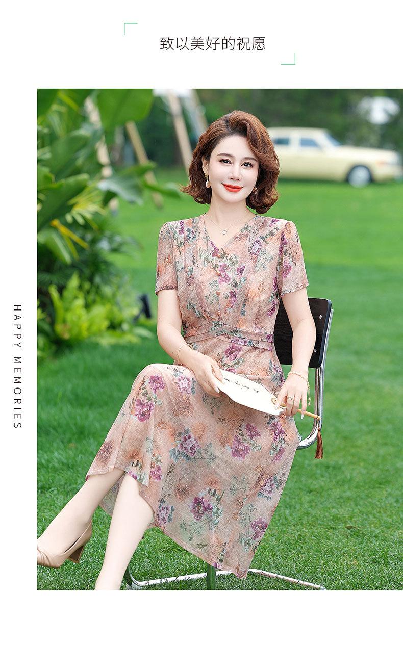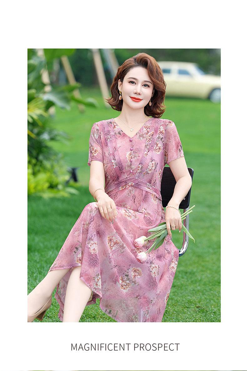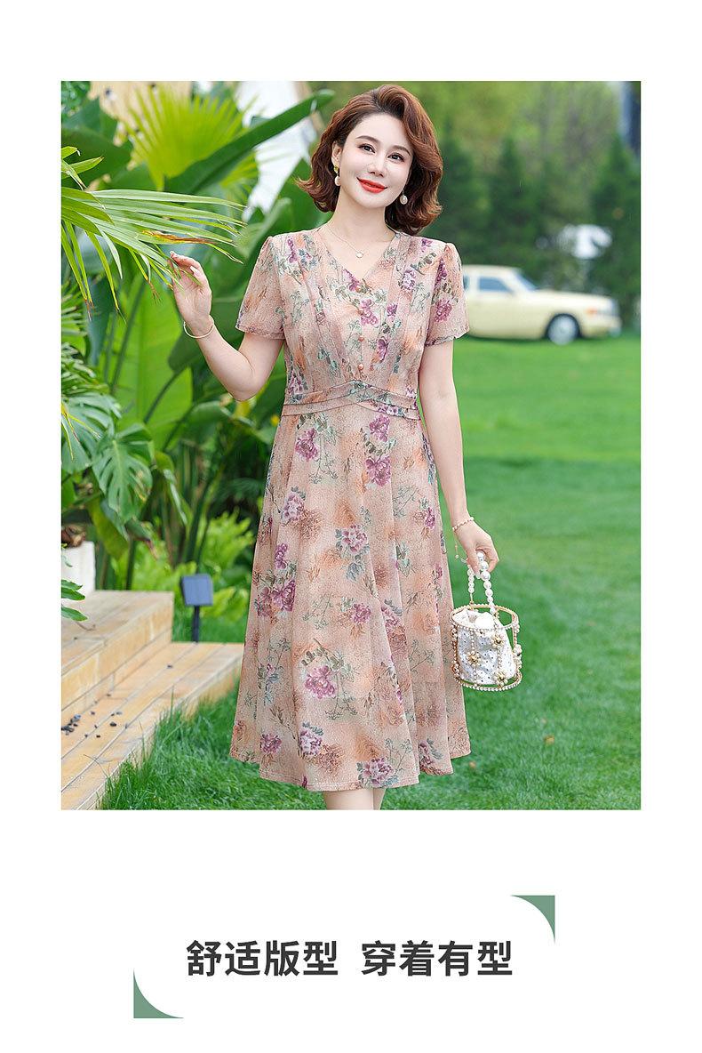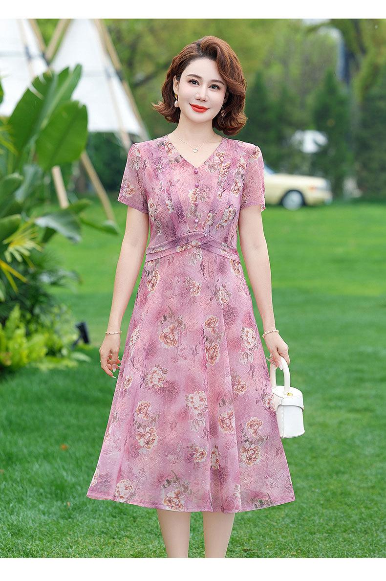 Vestido de gasa estilo extranjero para madre, verano para mujeres de mediana edad de 40 años 50, noble, temperamento de verano para mediana edad, falda de manga corta