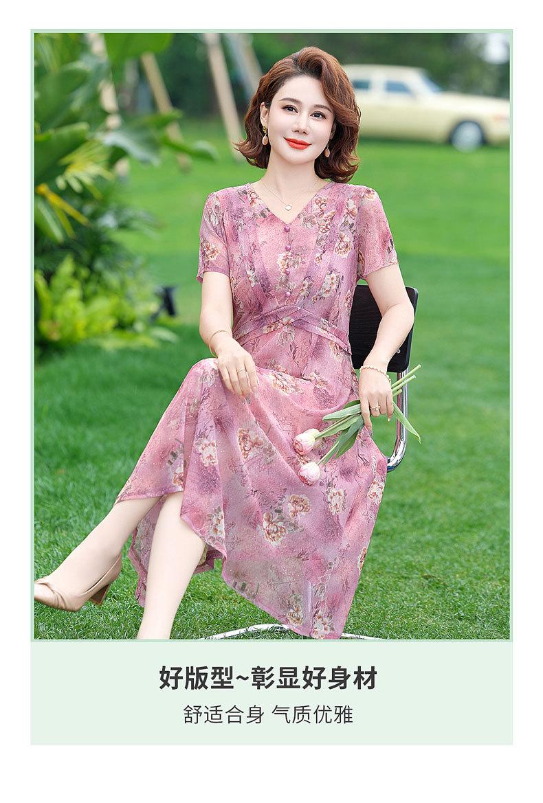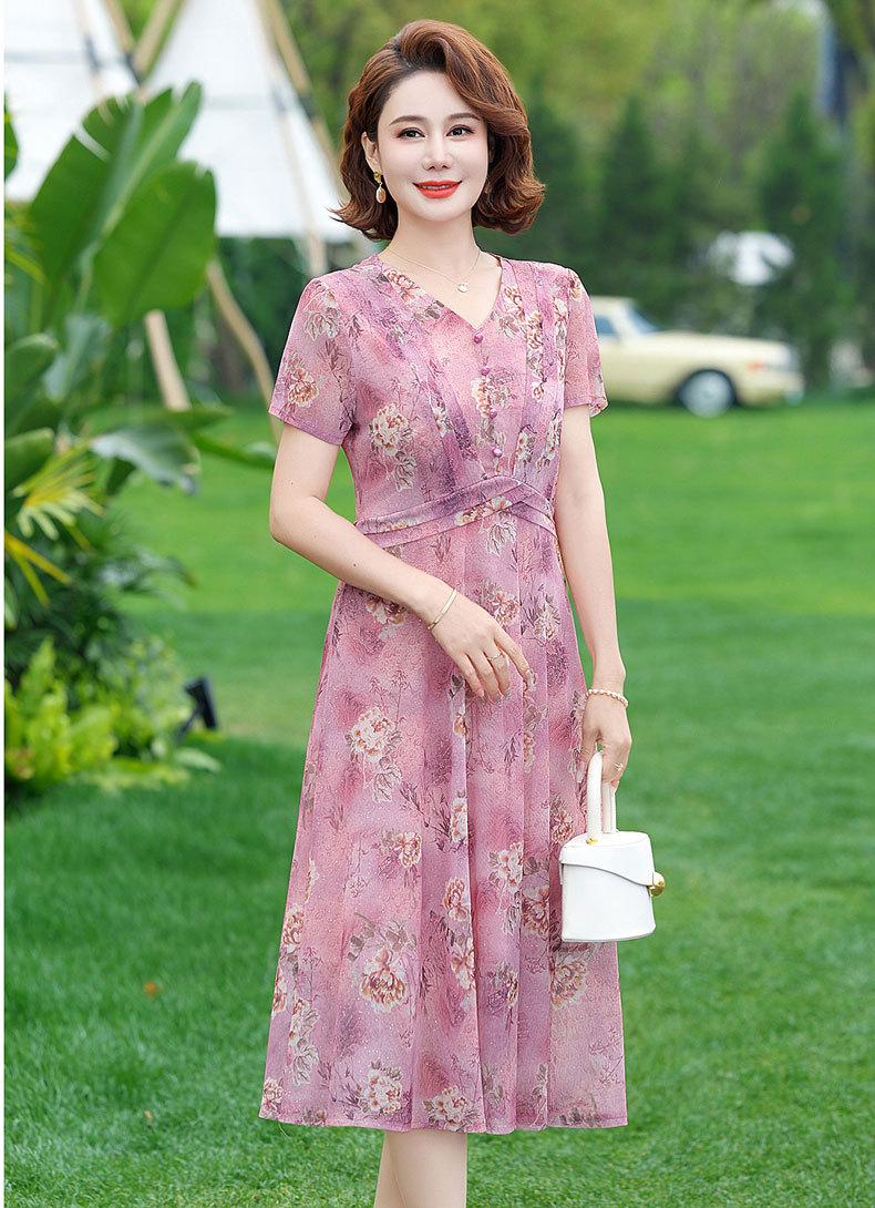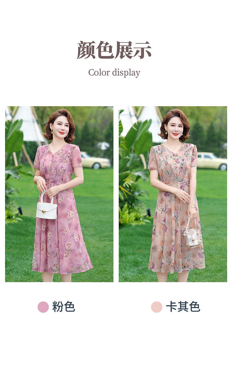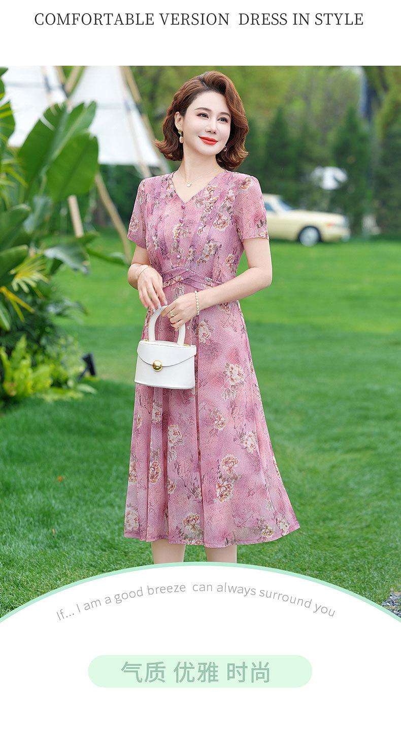 Vestido de gasa estilo extranjero para madre, verano para mujeres de mediana edad de 40 años 50, noble, temperamento de verano para mediana edad, falda de manga corta