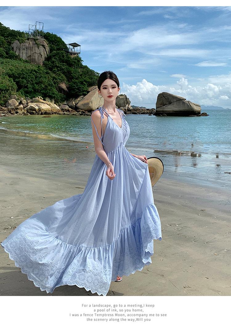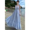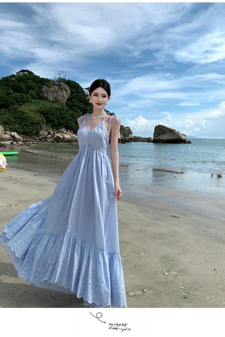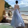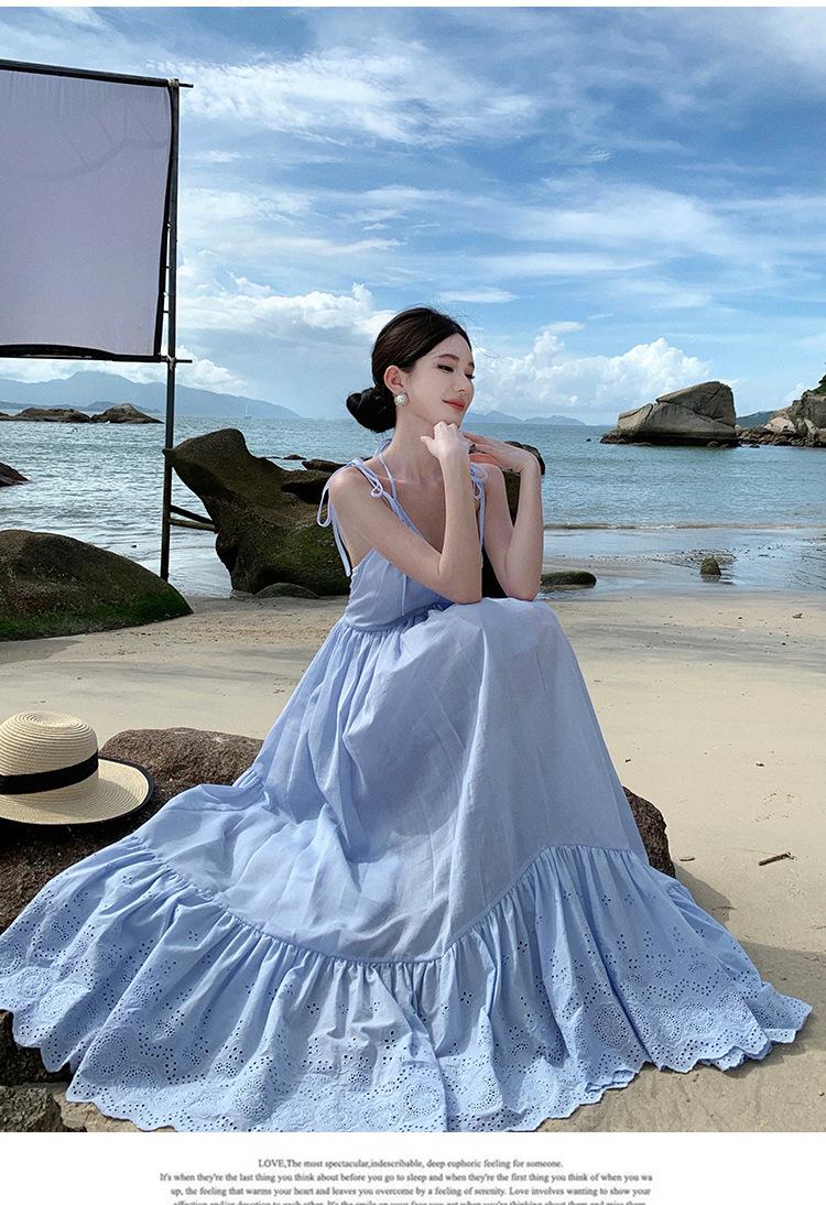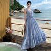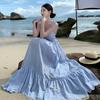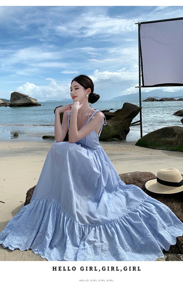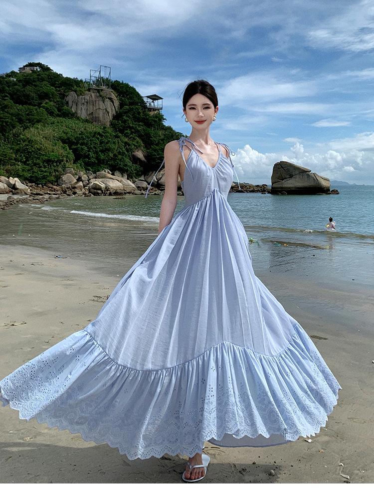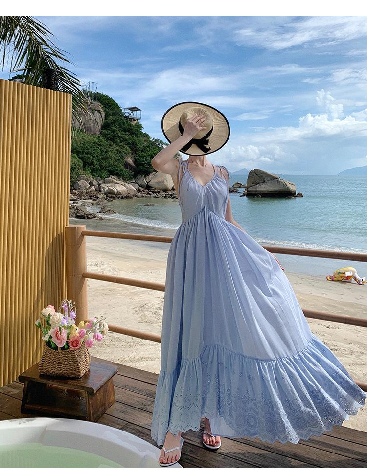 Vestido de tirantes bordado azul vintage francés Suelto Combinable Vestido resistente