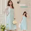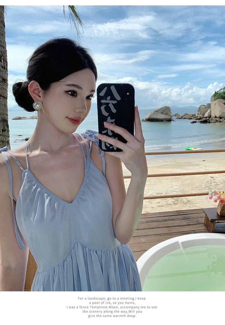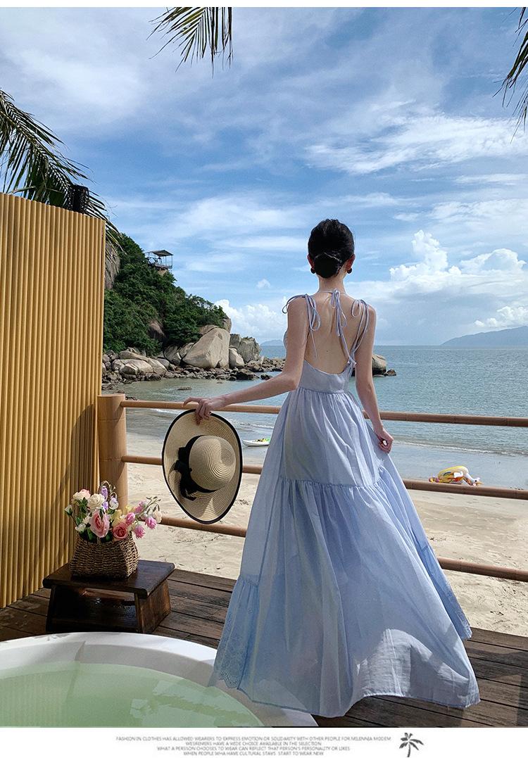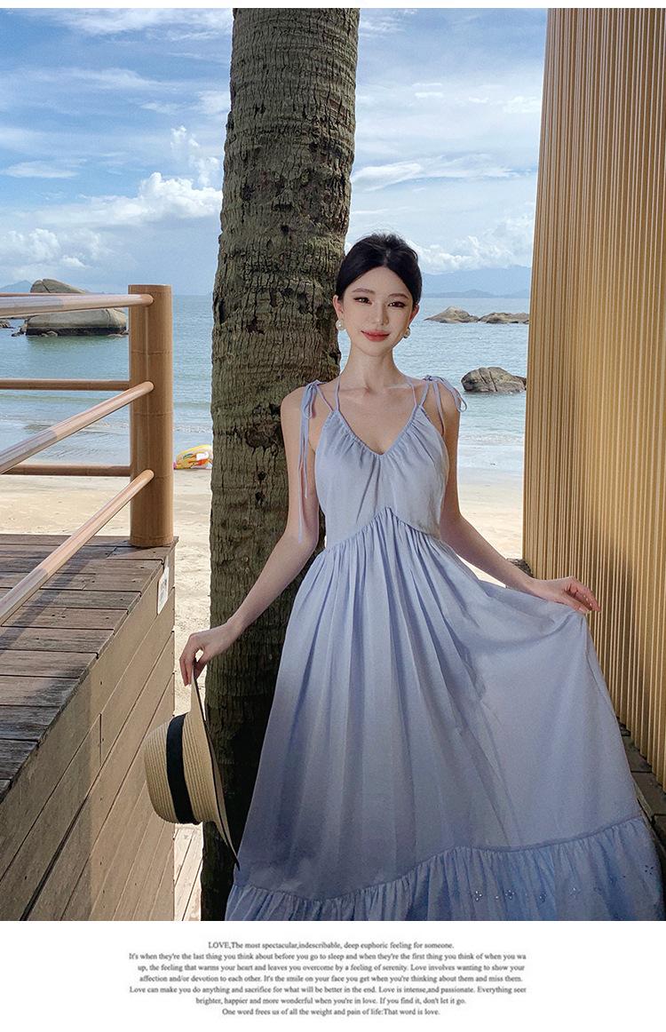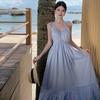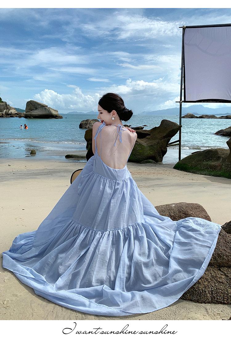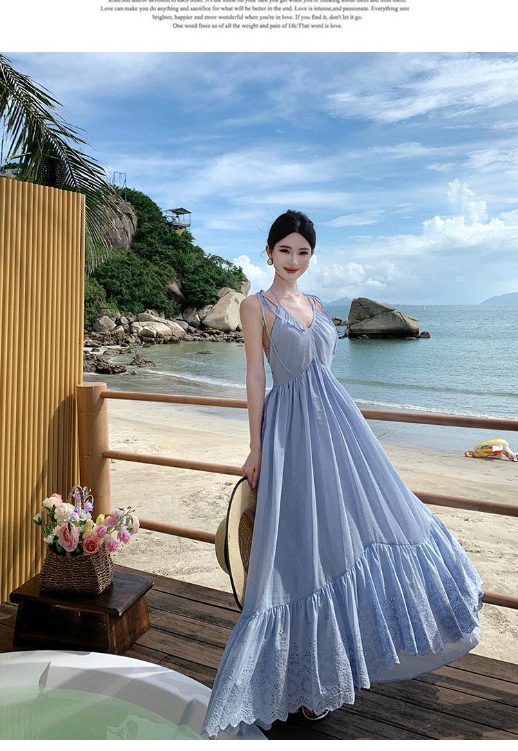 Vestido de tirantes bordado azul vintage francés Suelto Combinable Vestido resistente