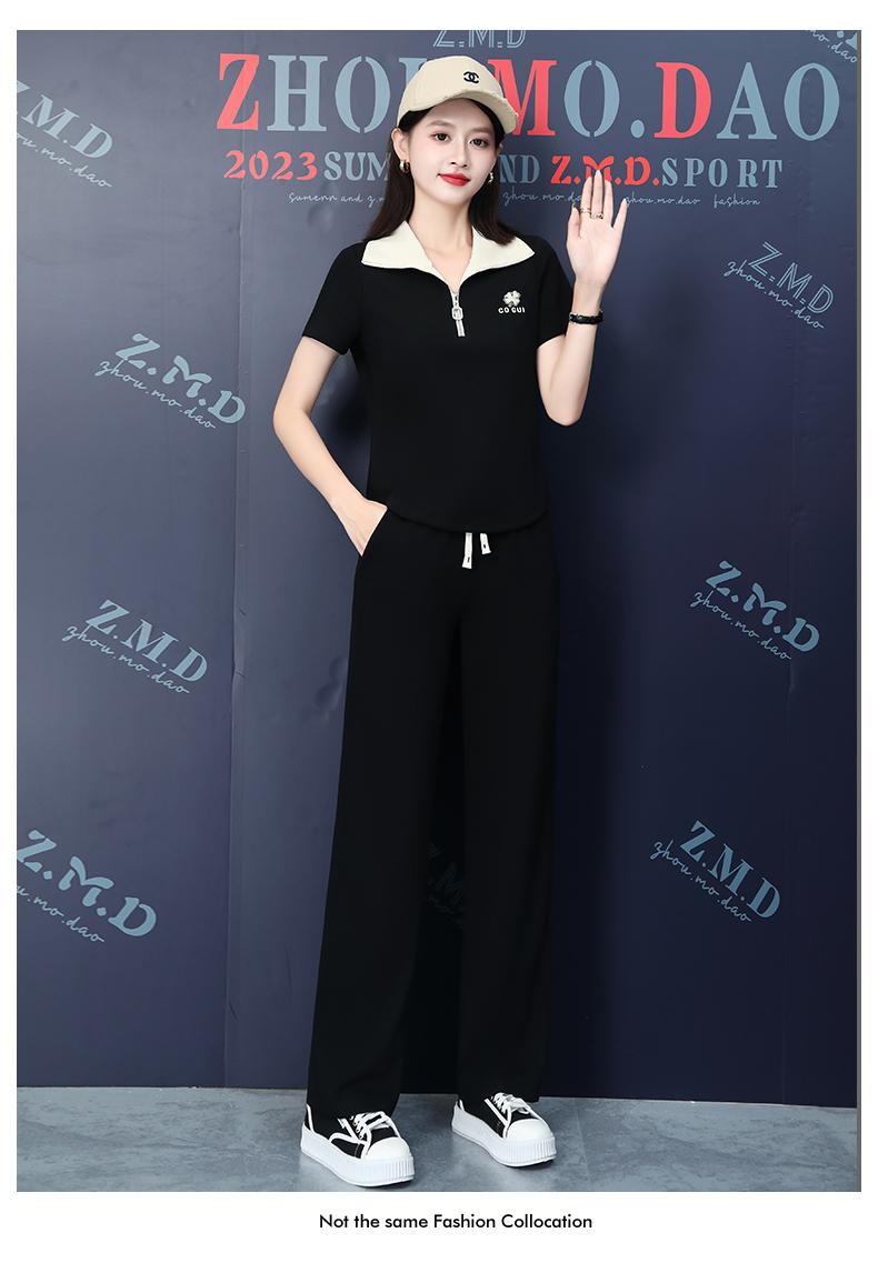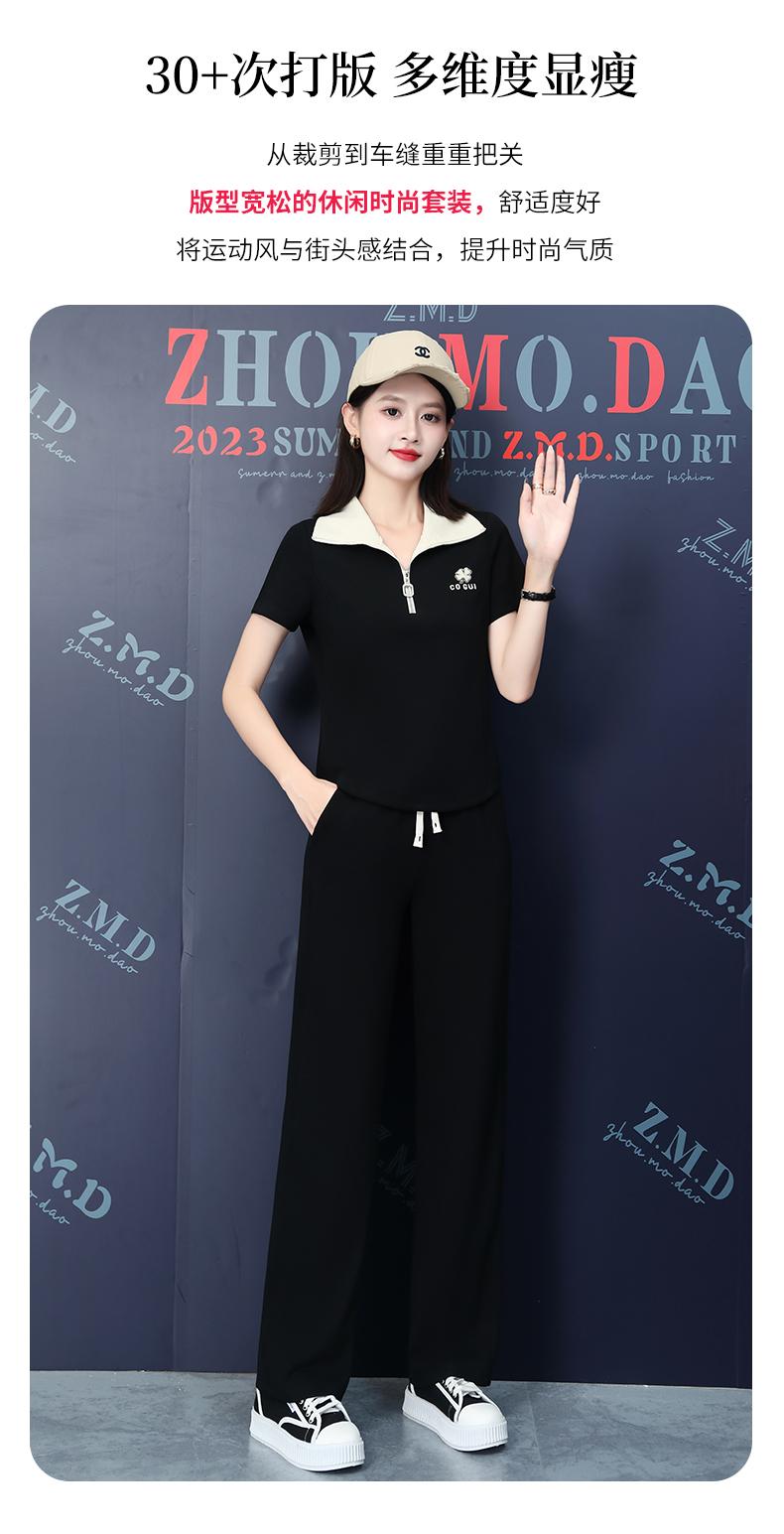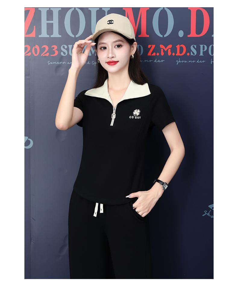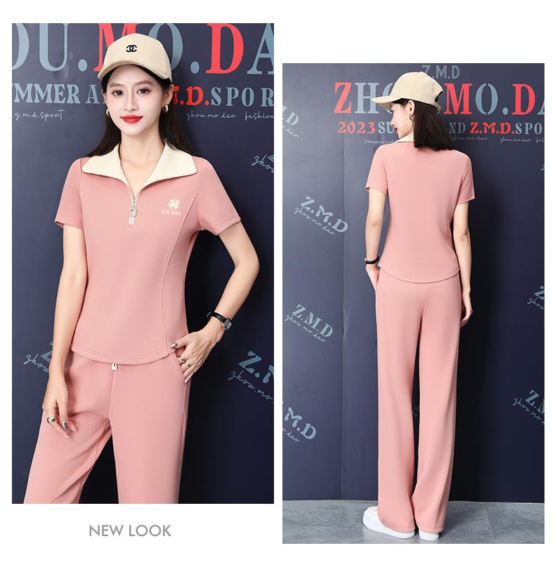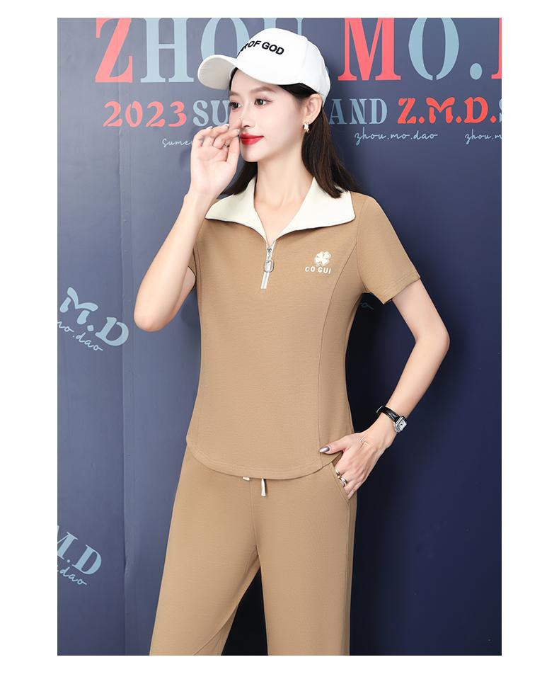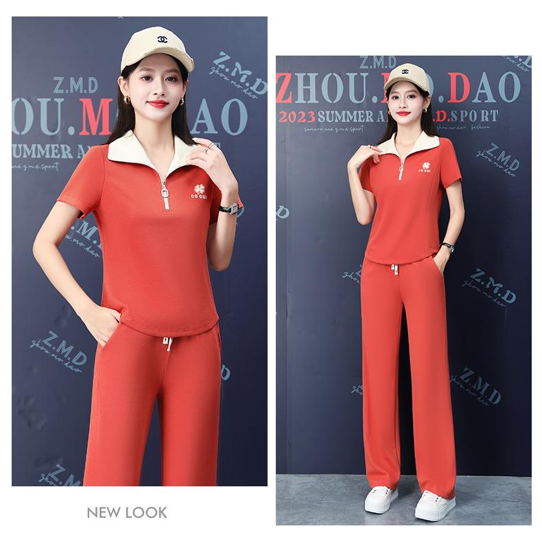 Trajes casuales deportivos para mujer verano 2023 nuevo estilo moderno para damas solapa manga corta pantalones para correr traje de dos piezas