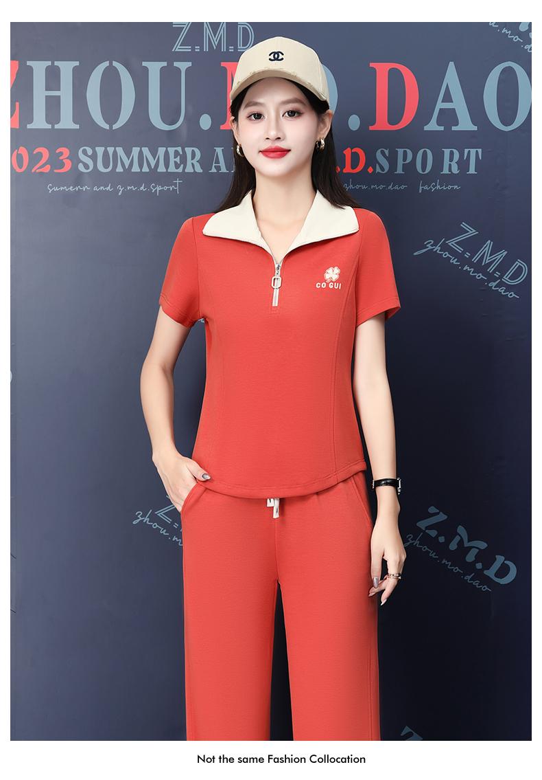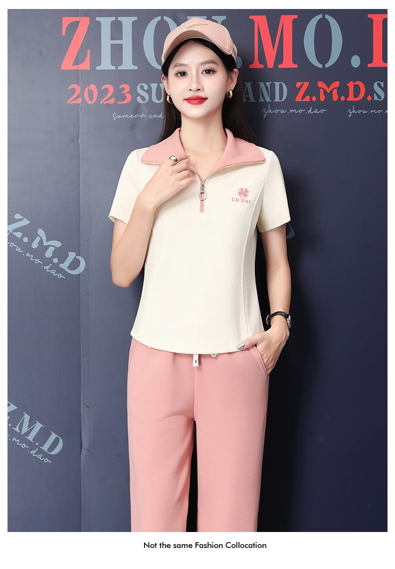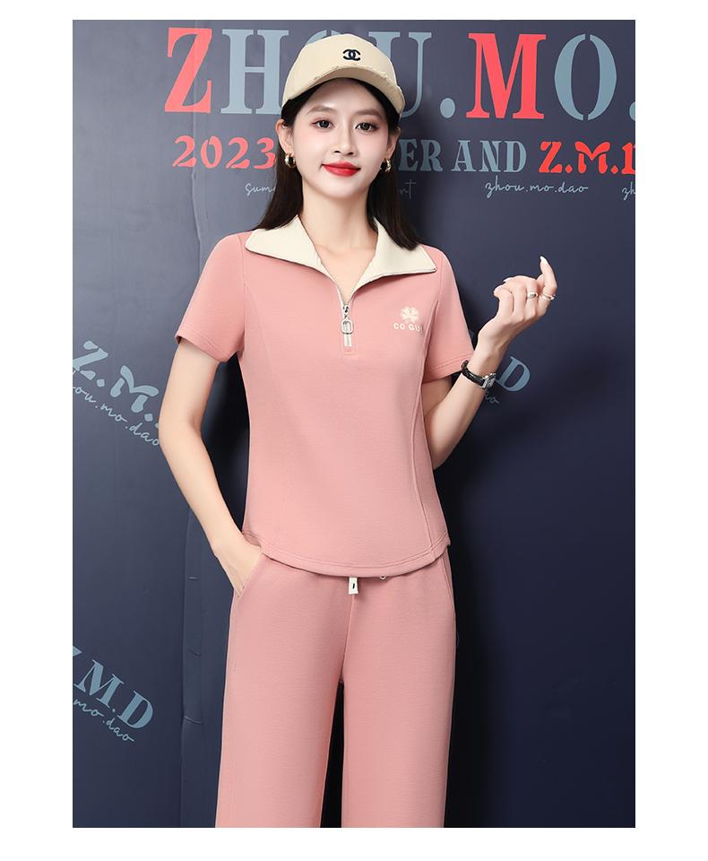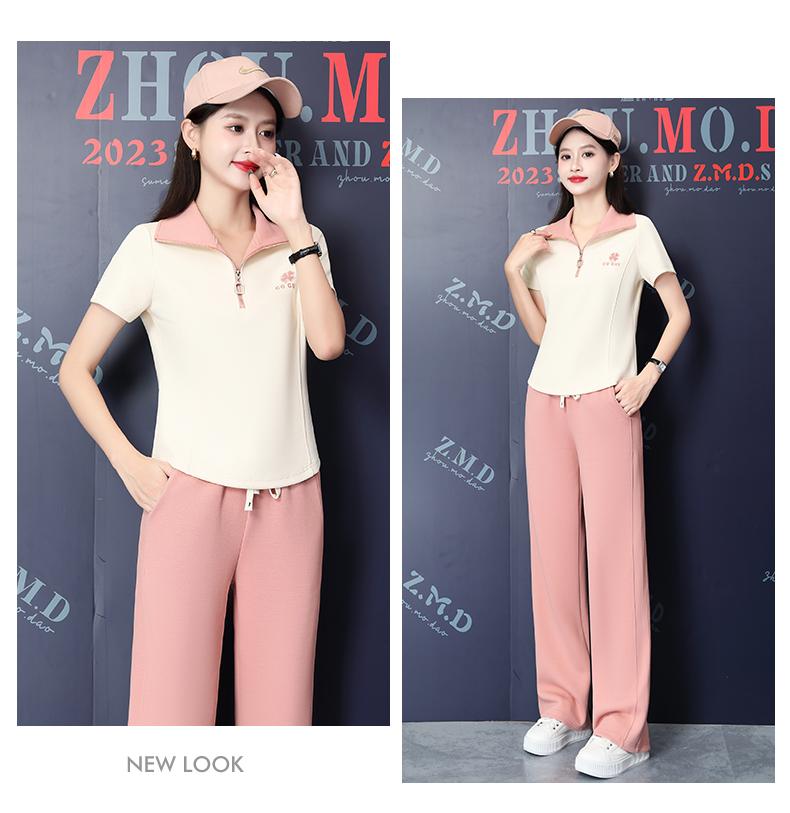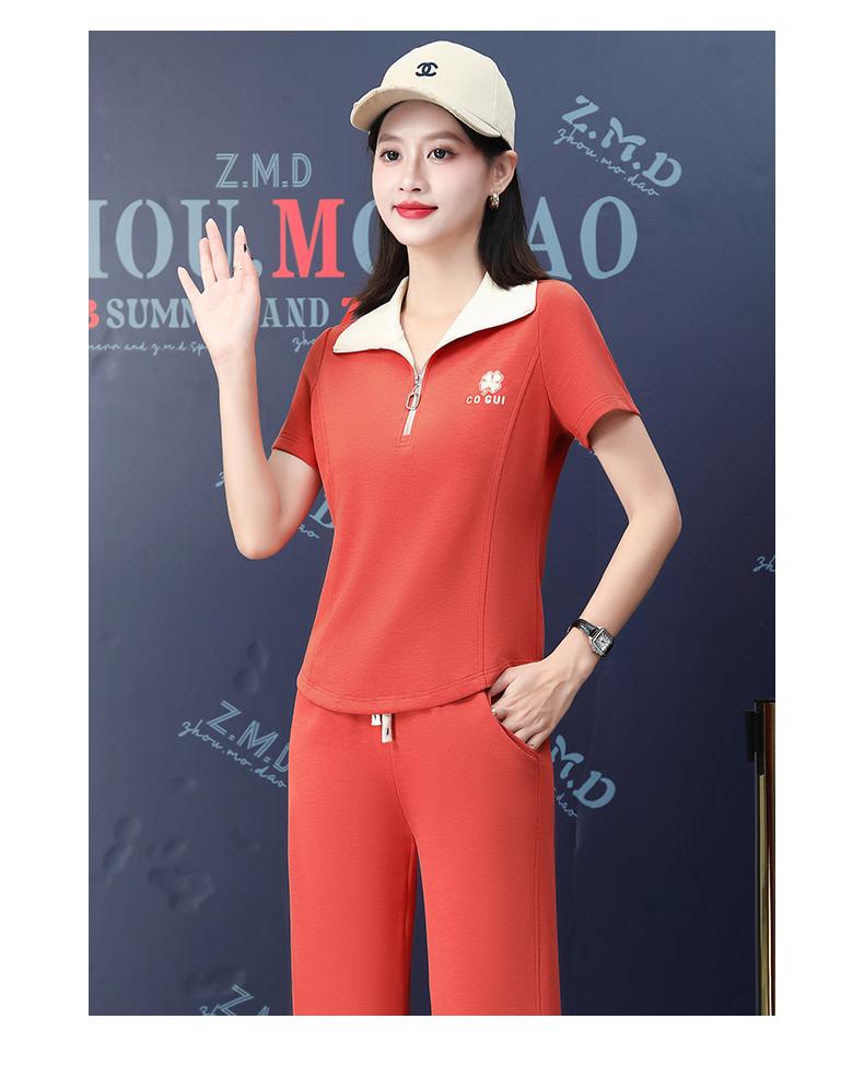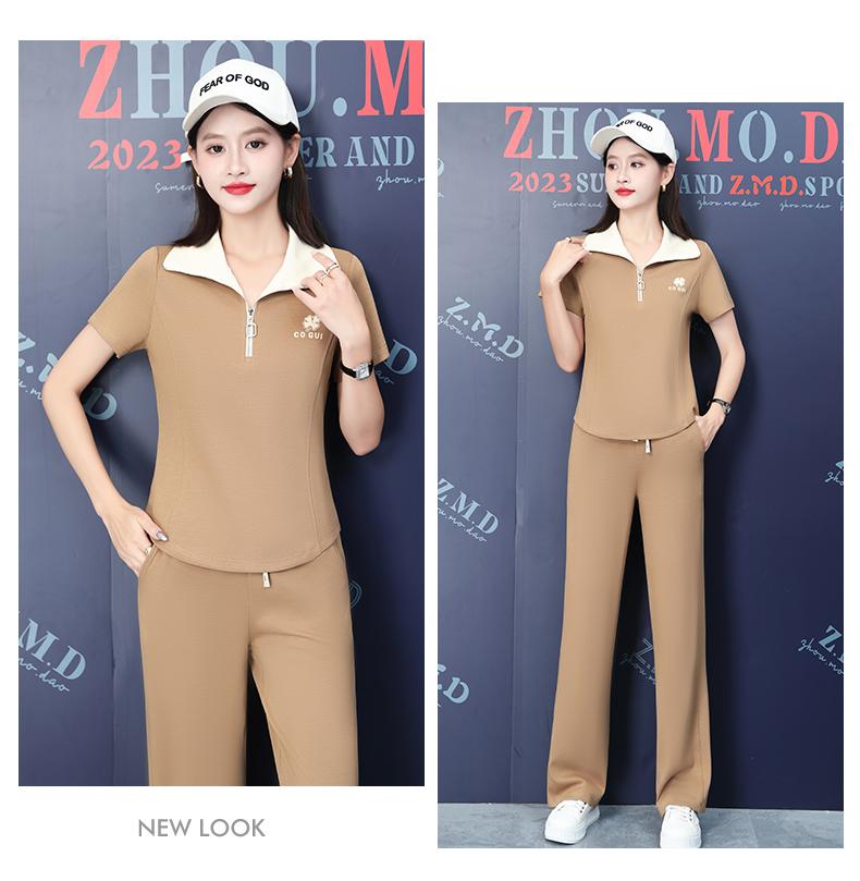 Trajes casuales deportivos para mujer verano 2023 nuevo estilo moderno para damas solapa manga corta pantalones para correr traje de dos piezas