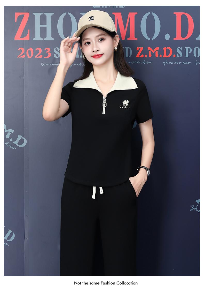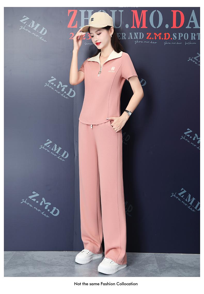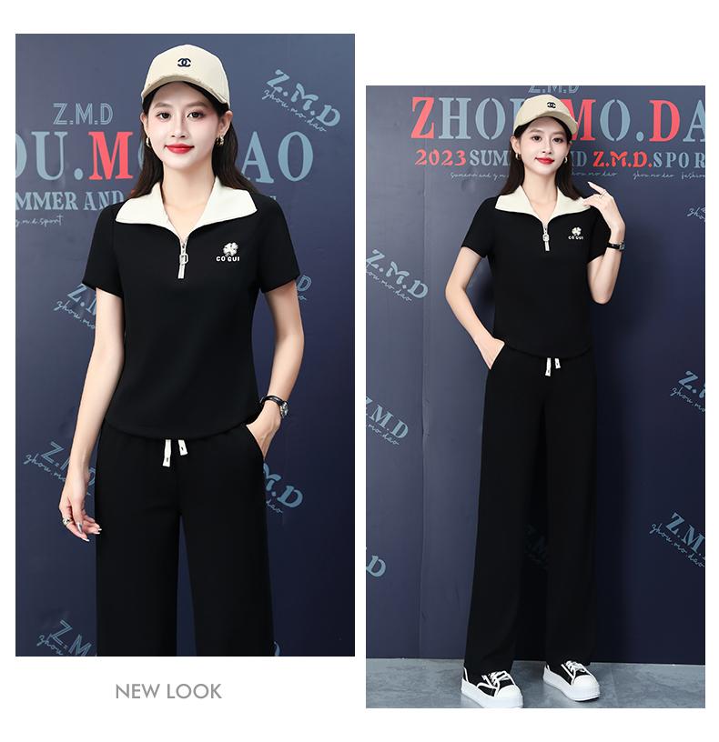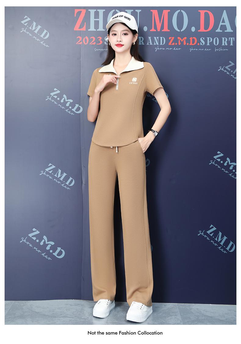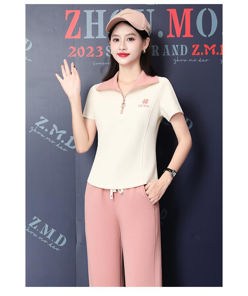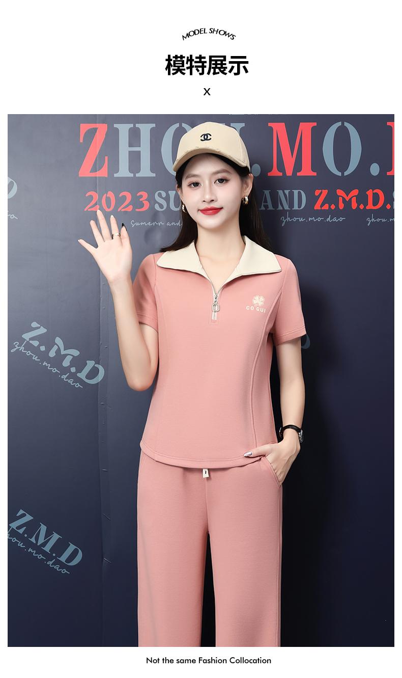 Trajes casuales deportivos para mujer verano 2023 nuevo estilo moderno para damas solapa manga corta pantalones para correr traje de dos piezas