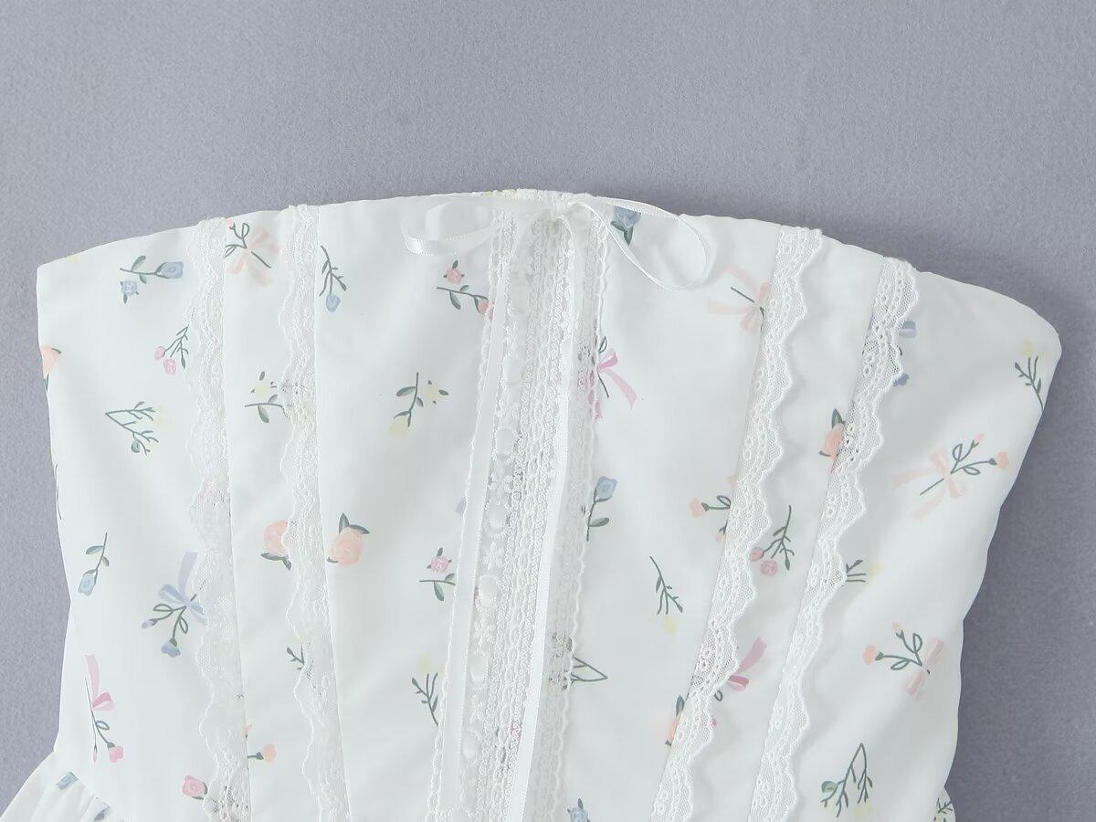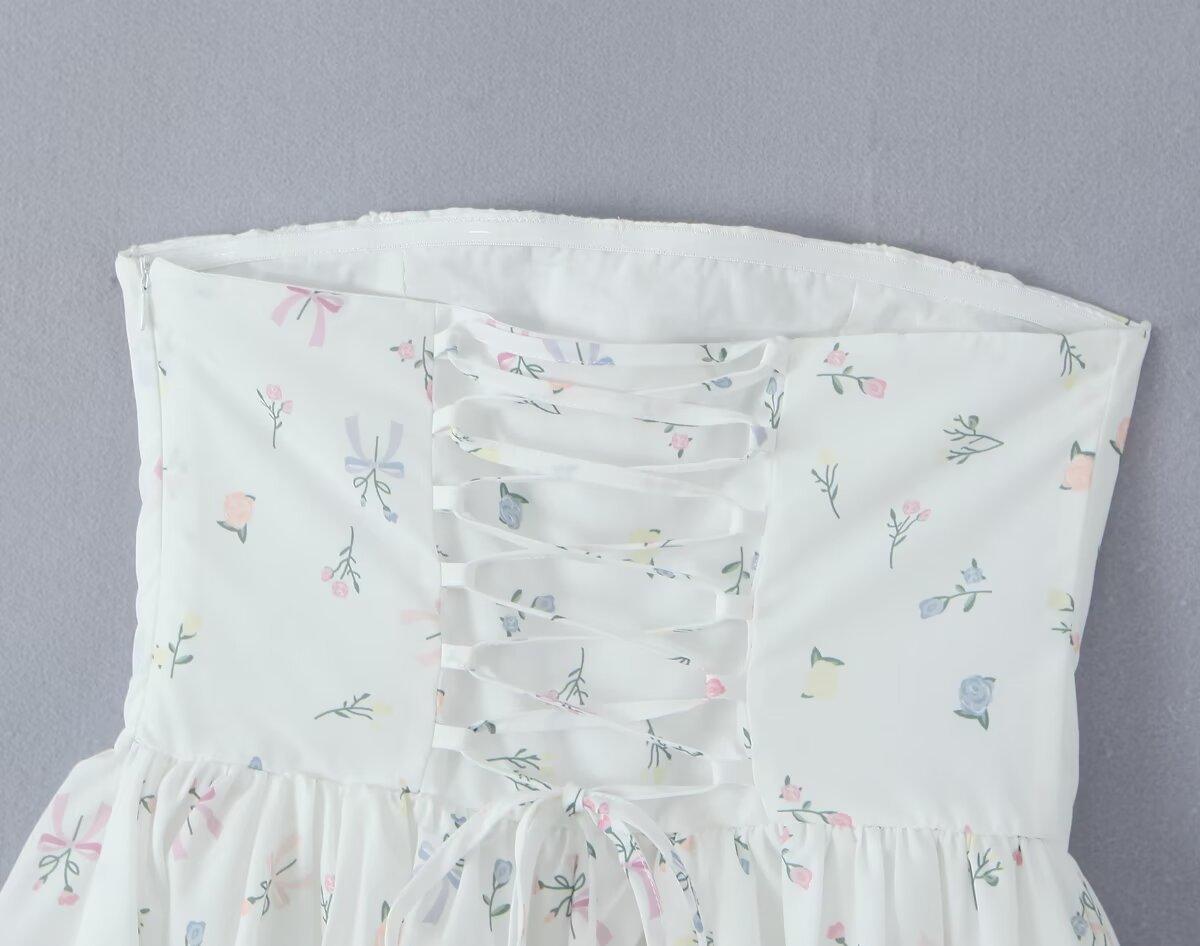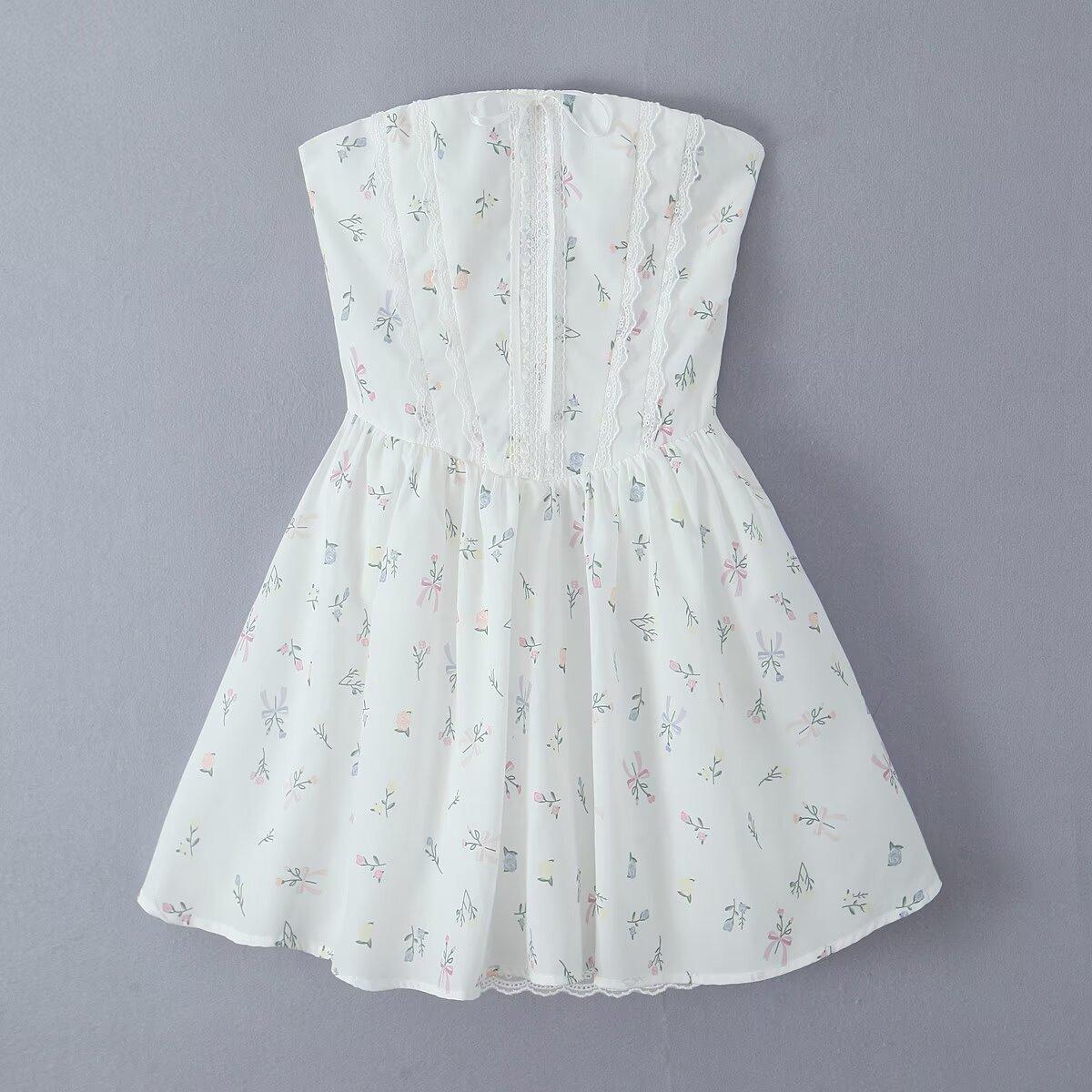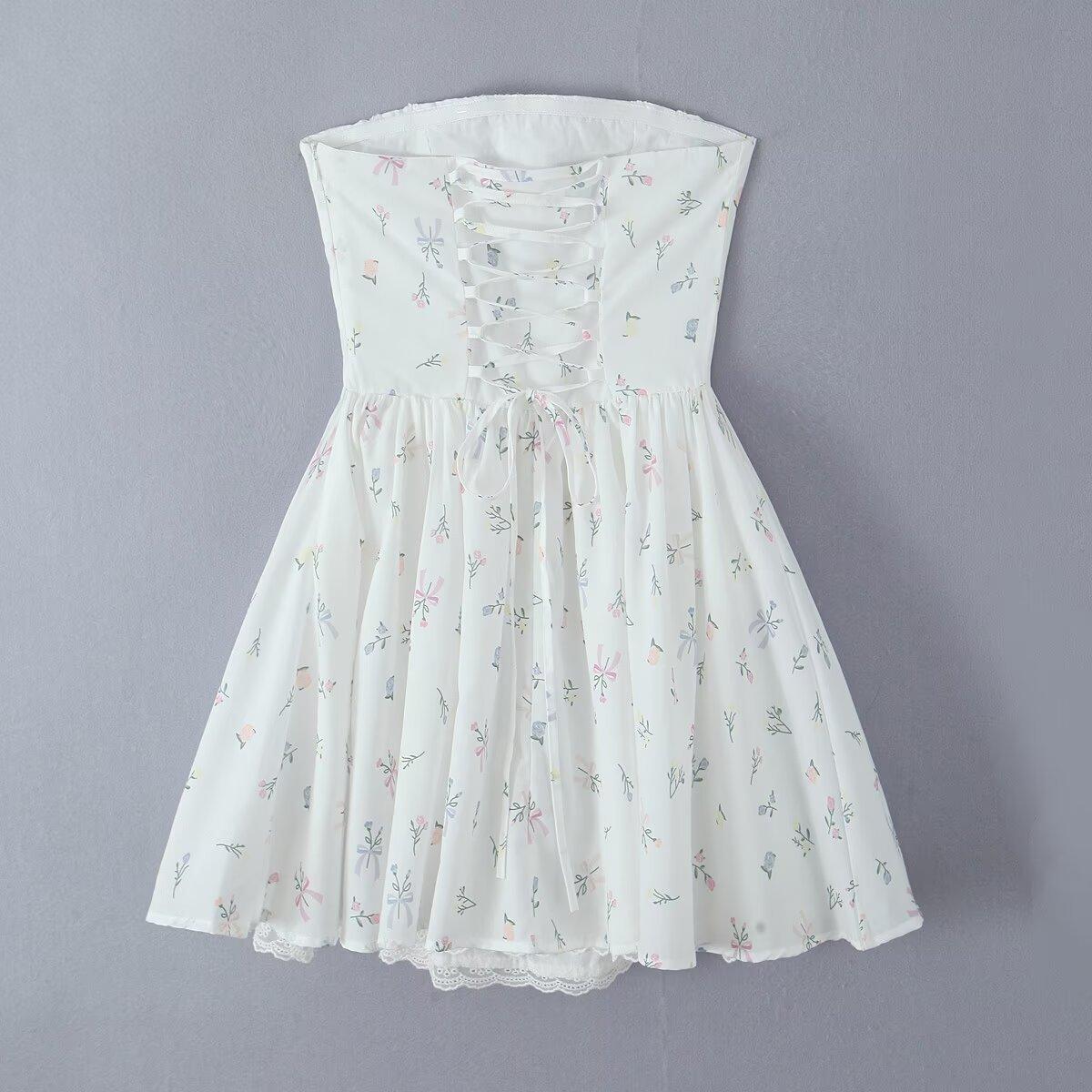 Verano Nuevo Deseo Puro Vestido Floral Francés Suave Tirantes Cintura Chica Picante Sexy Vietnamita Strapless Vestido de Tirantes