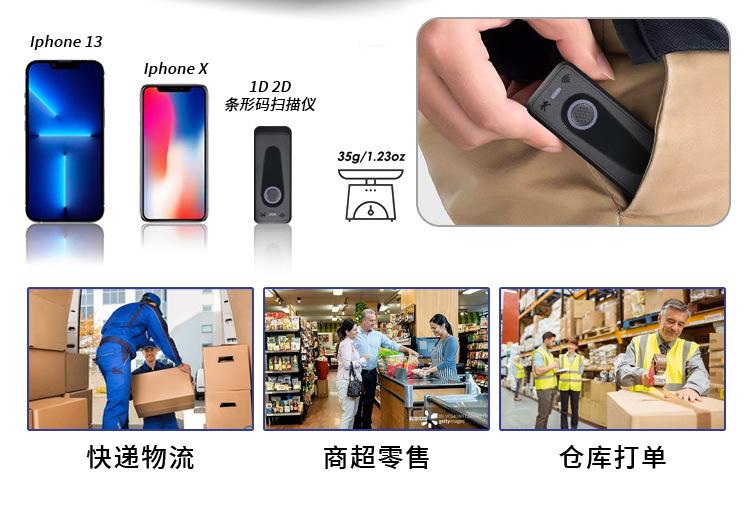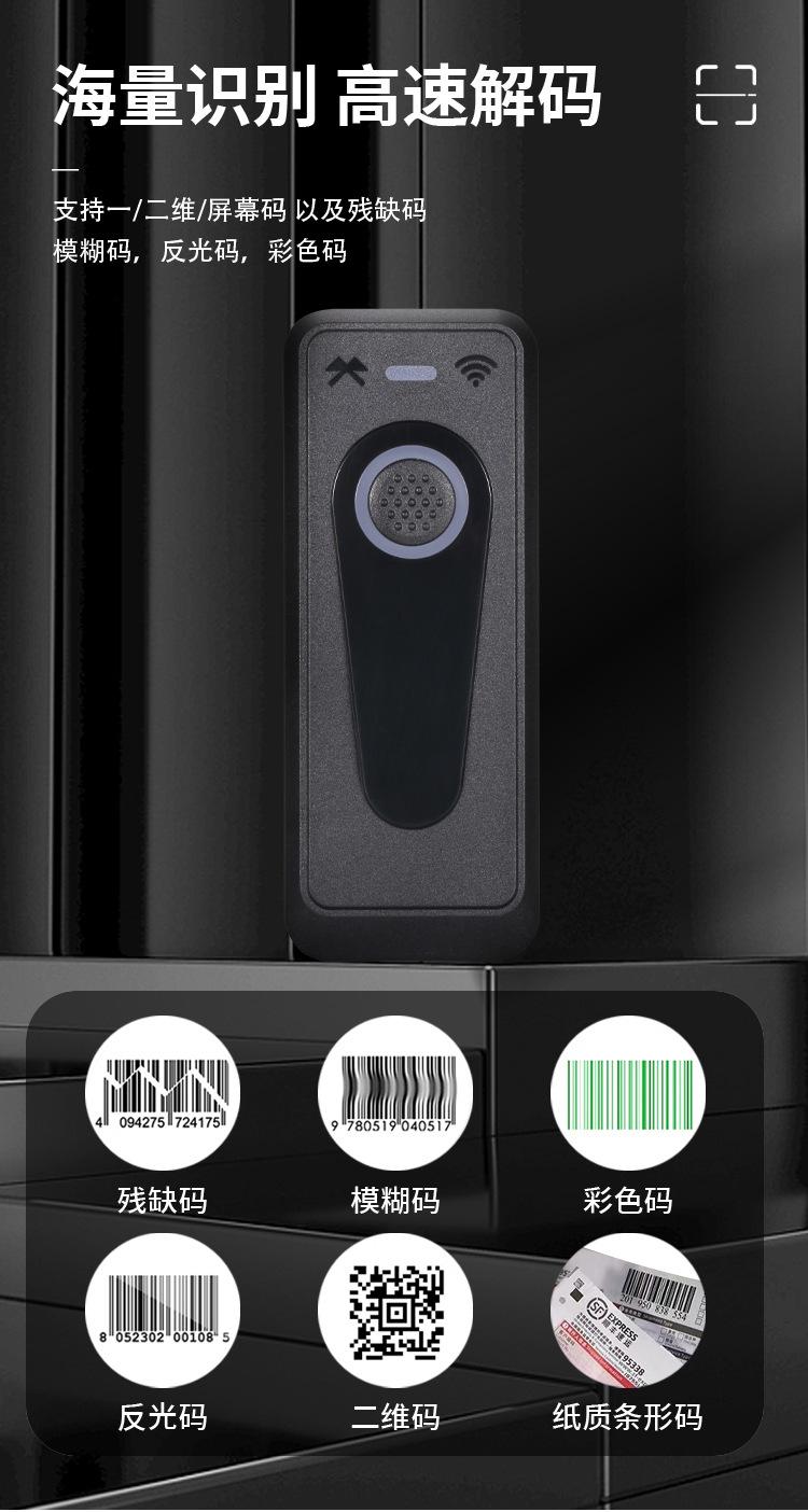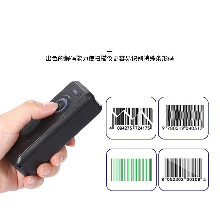 Mini Lector de Código Unidimensional Código Qr Escaneo Expreso Pistola Inalámbrica Bluetooth Supermercado Pistola de Escaneo Portátil Pistola de Código de Barras Personalización