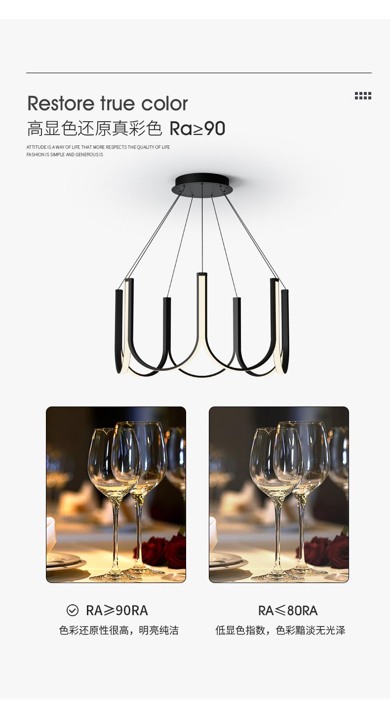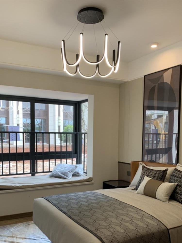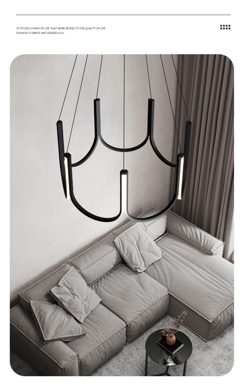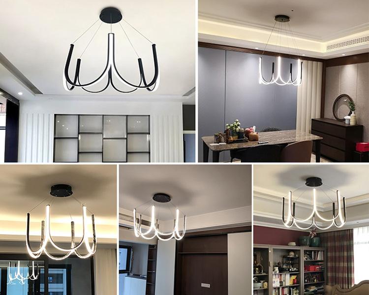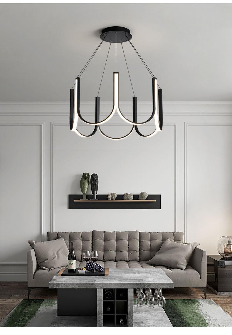 Candelabro Moderno Minimalista para Sala de Estar Diseñador Nórdico Creativo Negro Comedor Dormitorio Aluminio Candelabro Redondo