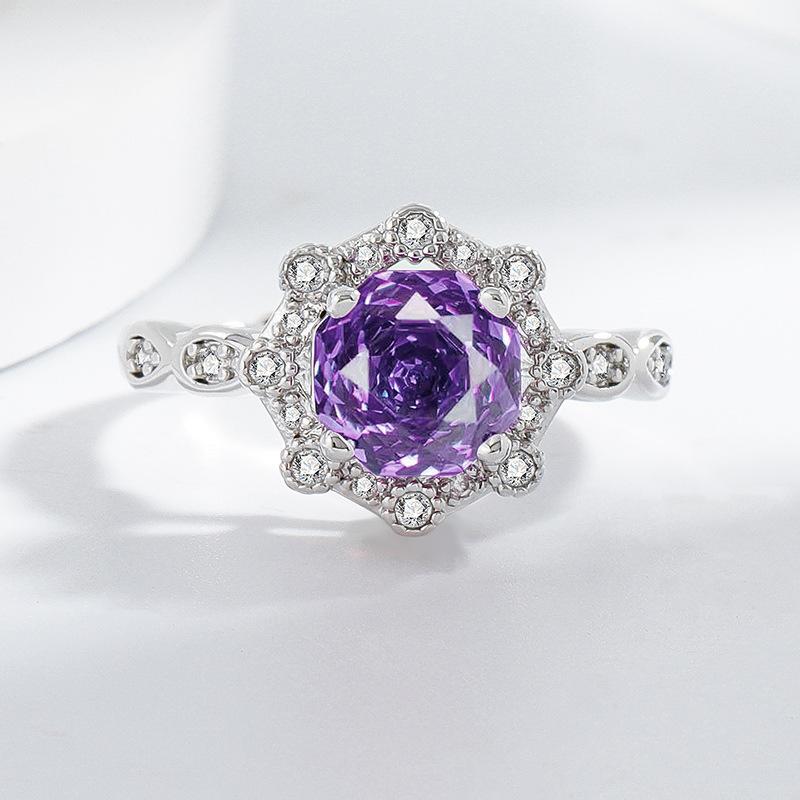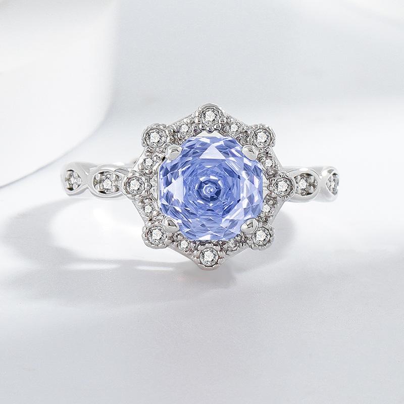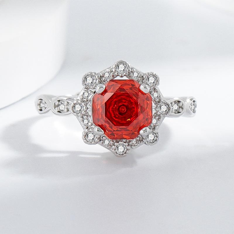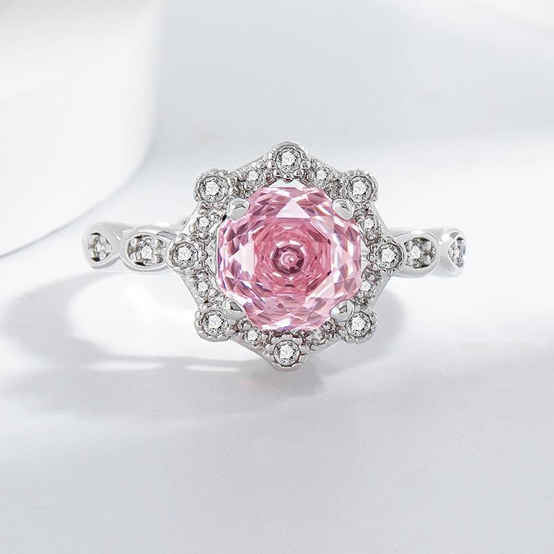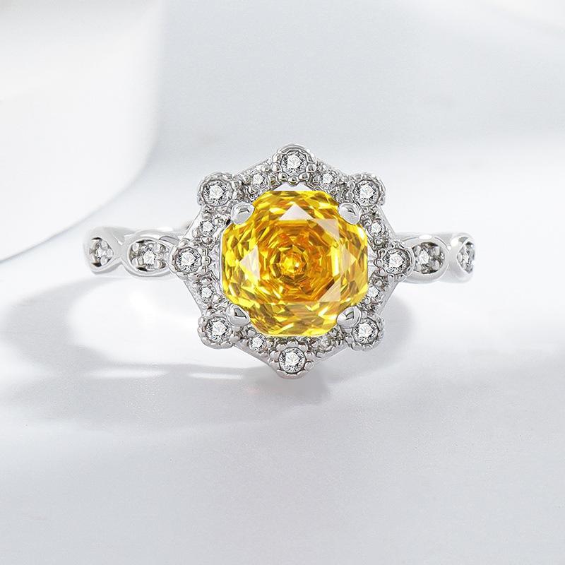 Anillo de diamantes rosas talla rosa de anís estrellado de venta en vivo, simple, versátil, de moda, de lujo, con circonita amarilla, anillo para mujer