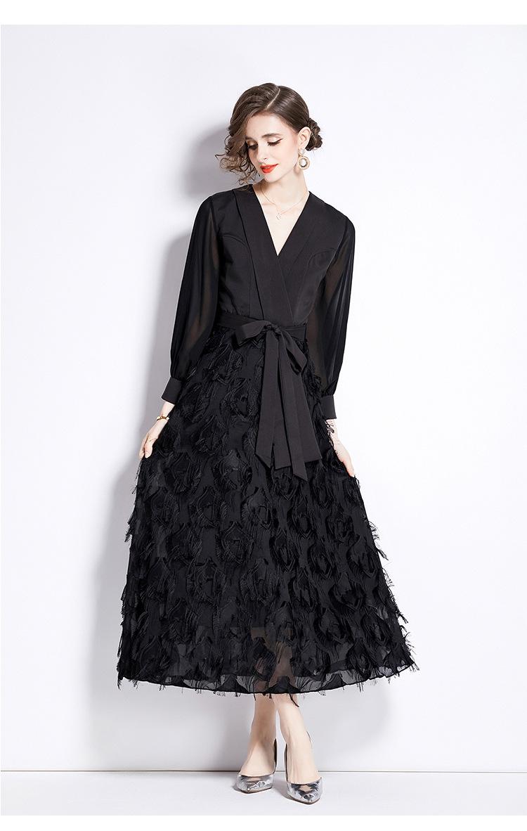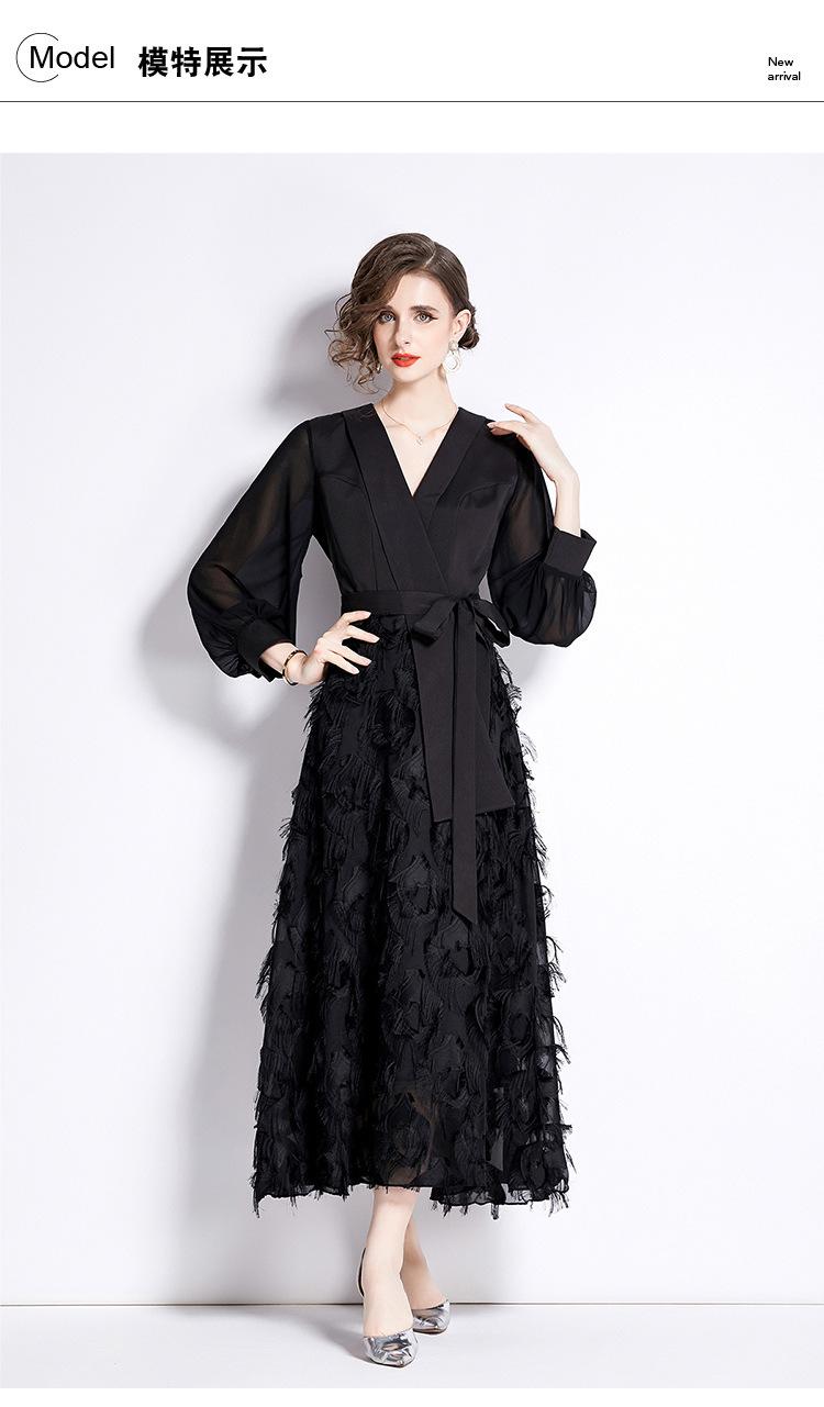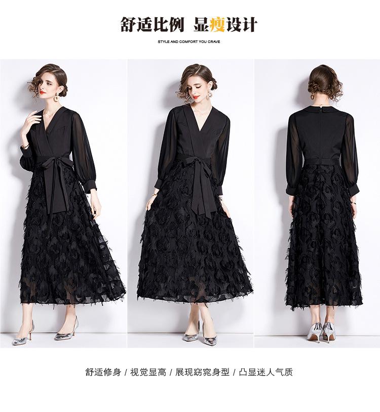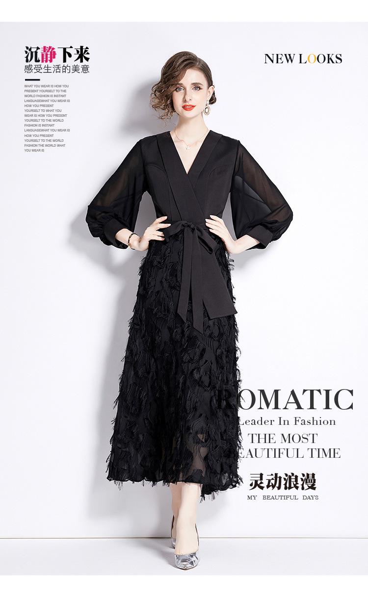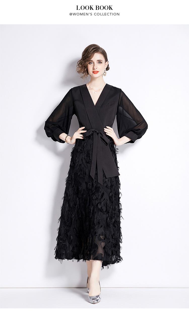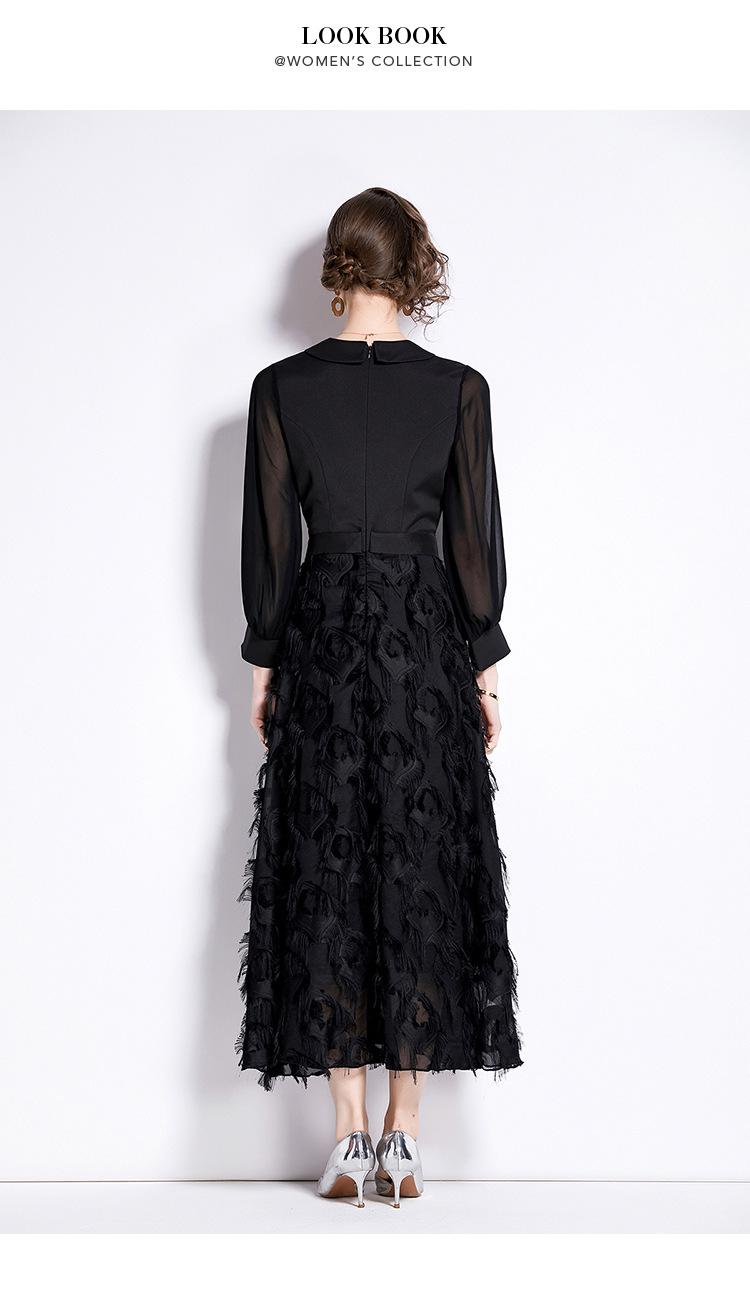 Moda Europea Retro Negro Elegante Lujo Ligero Nicho Temperamento Vestido Slim