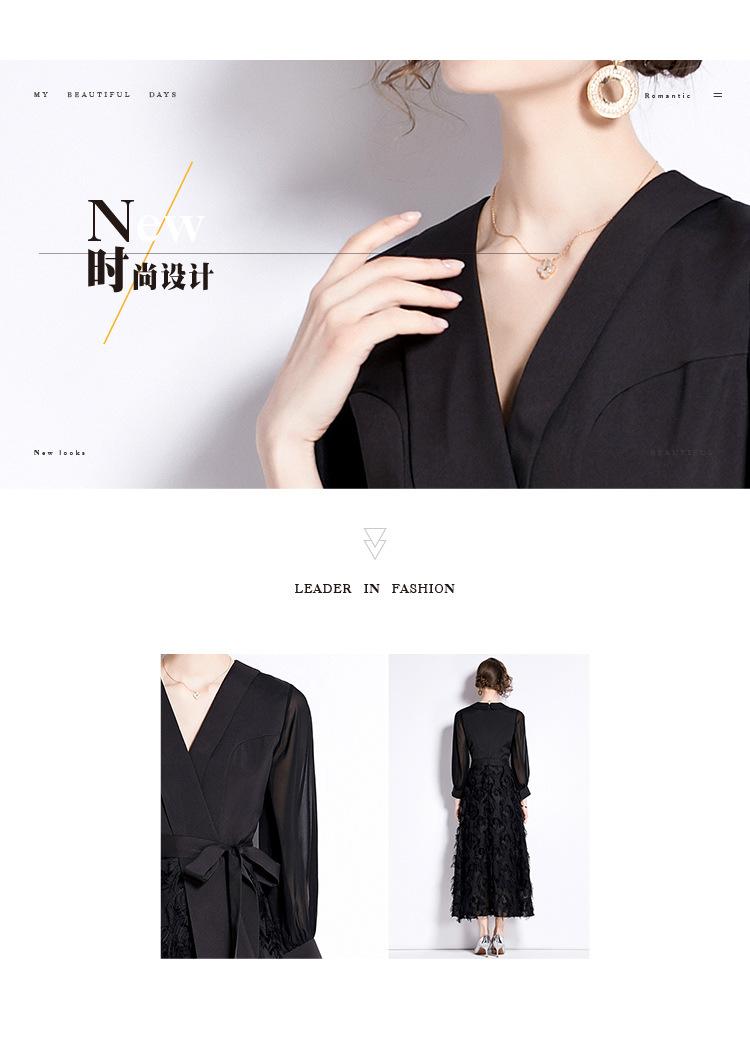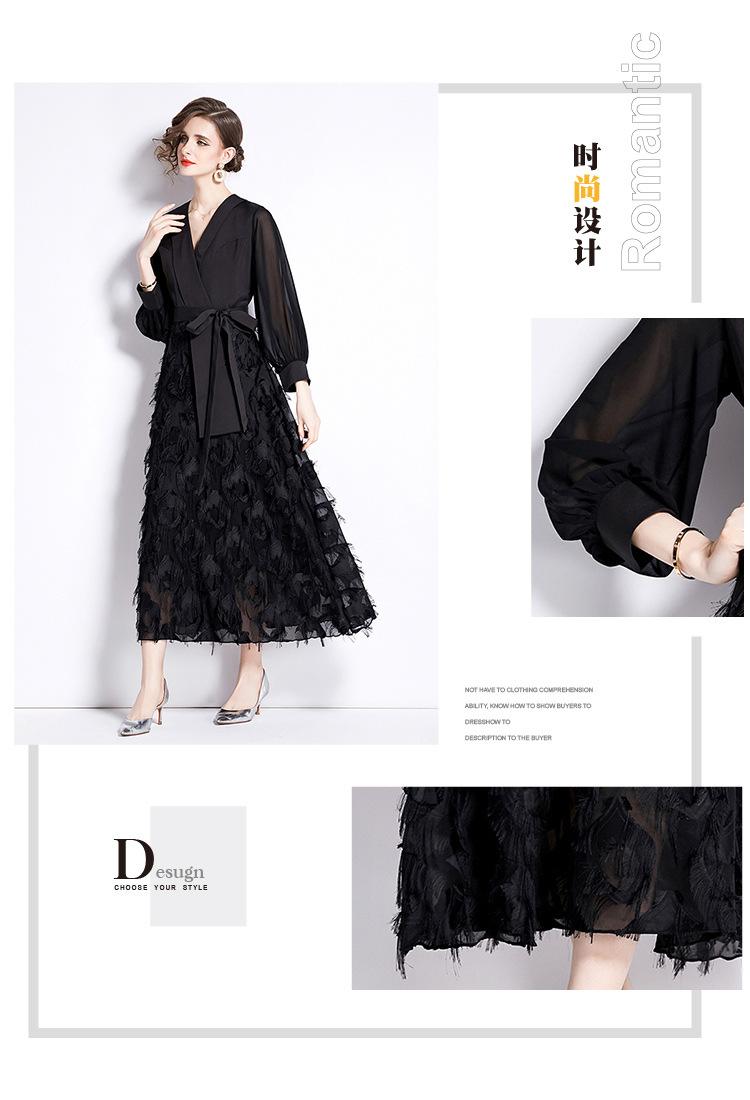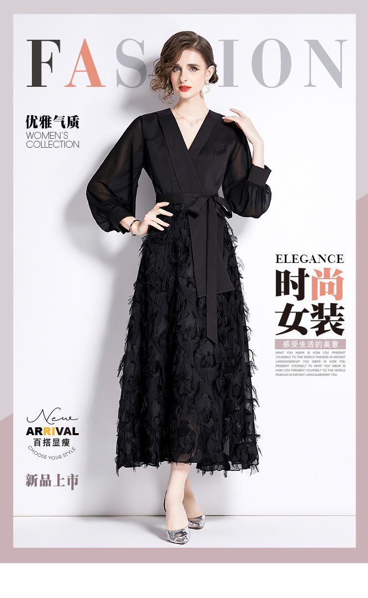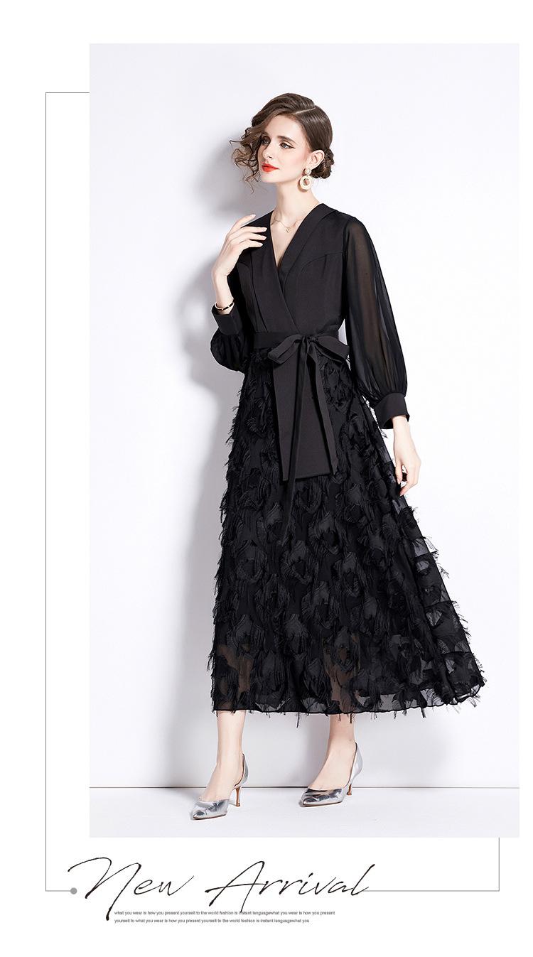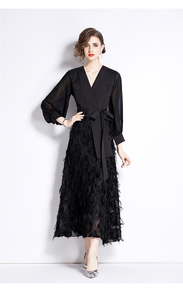 Moda Europea Retro Negro Elegante Lujo Ligero Nicho Temperamento Vestido Slim