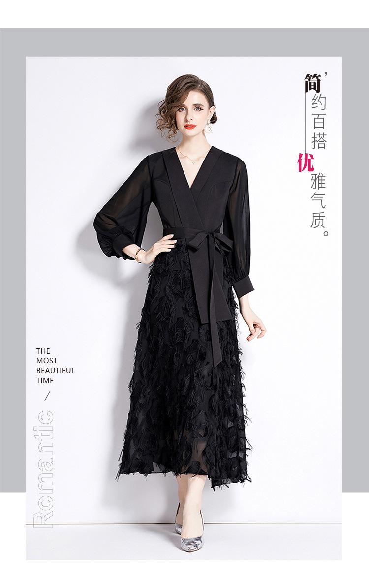 Puff sleeves + splicing + invisible zipper + tie back + jacquard