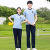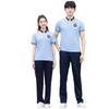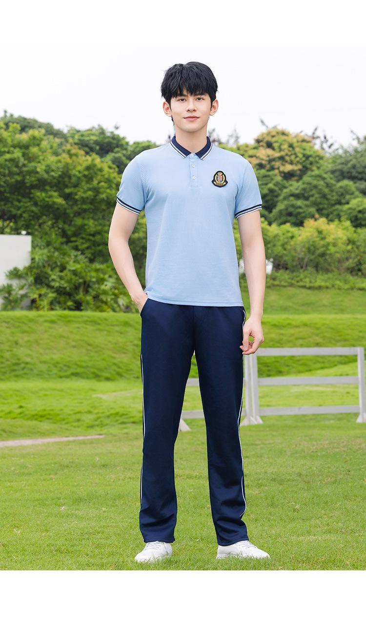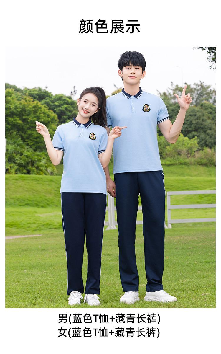 [two-piece set] blue t-shirt + south korean silk navy blue one-bar straight, [two-piece set] blue t-shirt + so...