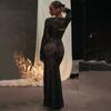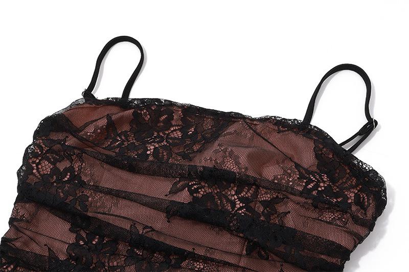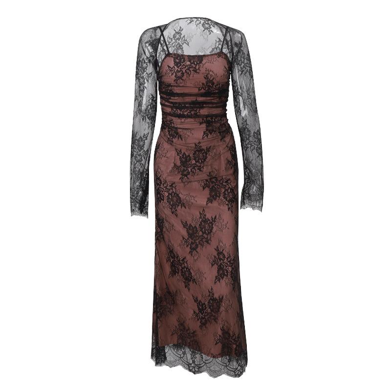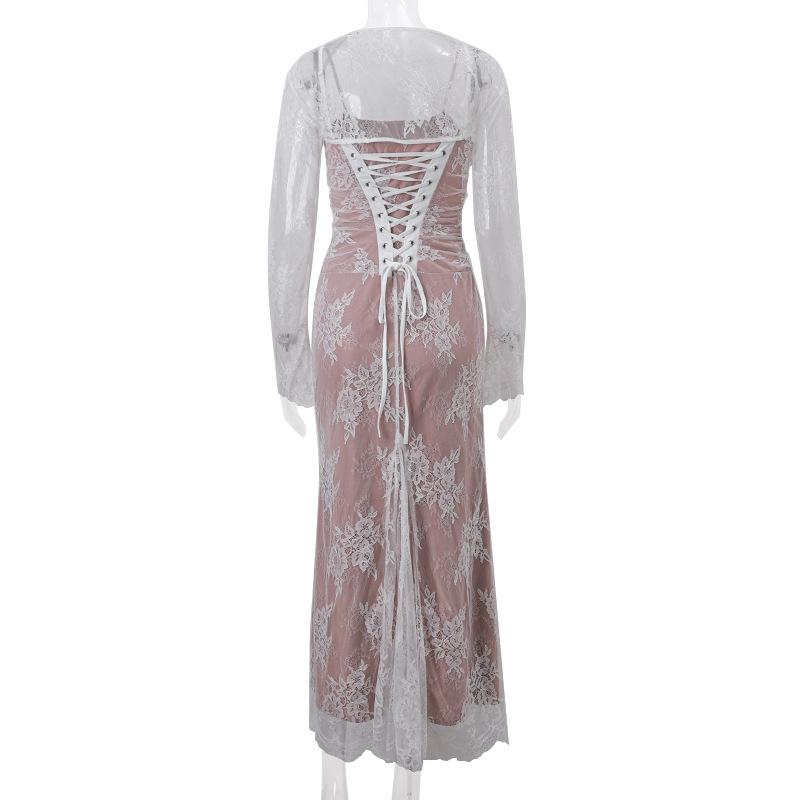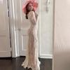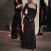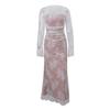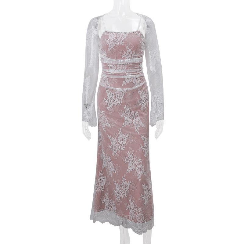 Ropa de mujer de estilo europeo y americano, otoño 2023, nuevo vestido sexy con cintura de temperamento, manga larga, tirantes y encaje con gancho
