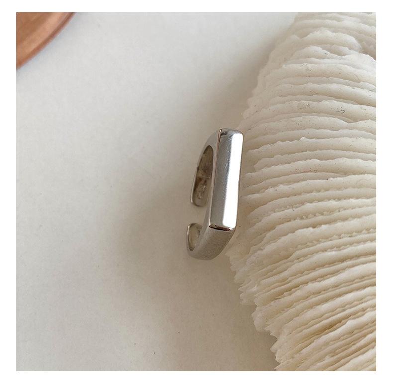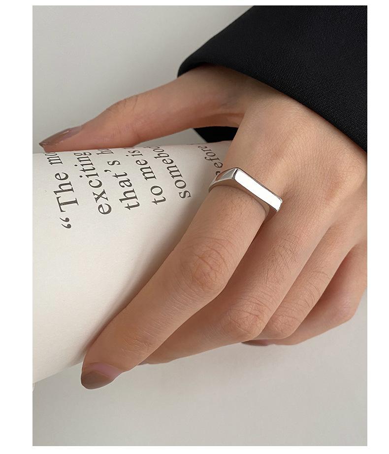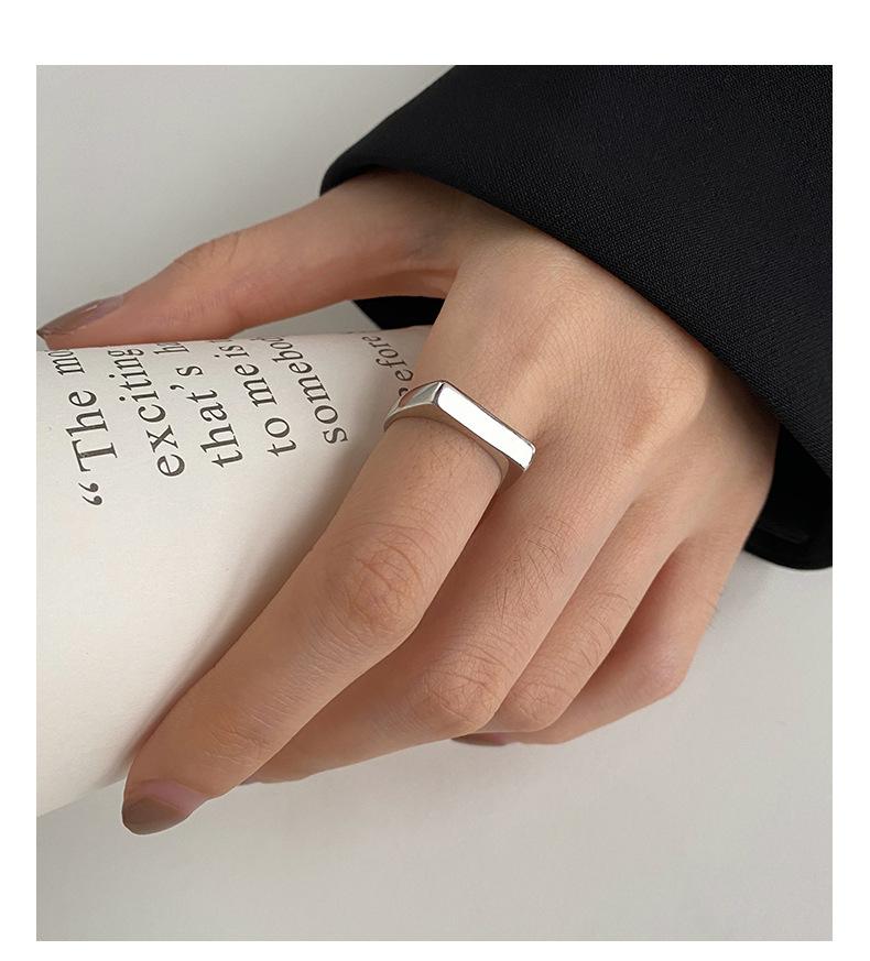 Anillo cuadrado geométrico de plata S925 Anillo simple liso retro para mujer Anillo abierto personalizado Anillo para el dedo índice de comercio exterior transfronterizo europeo y americano