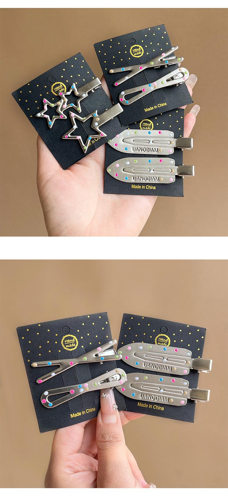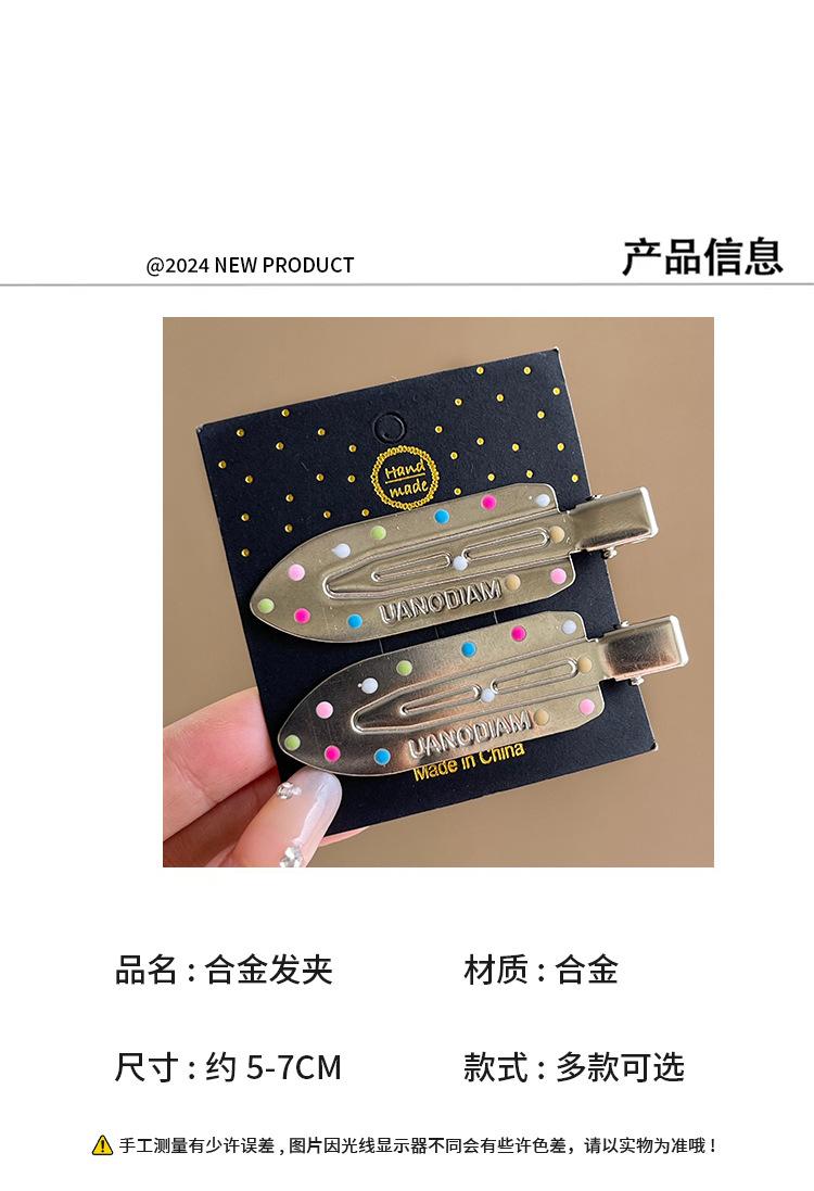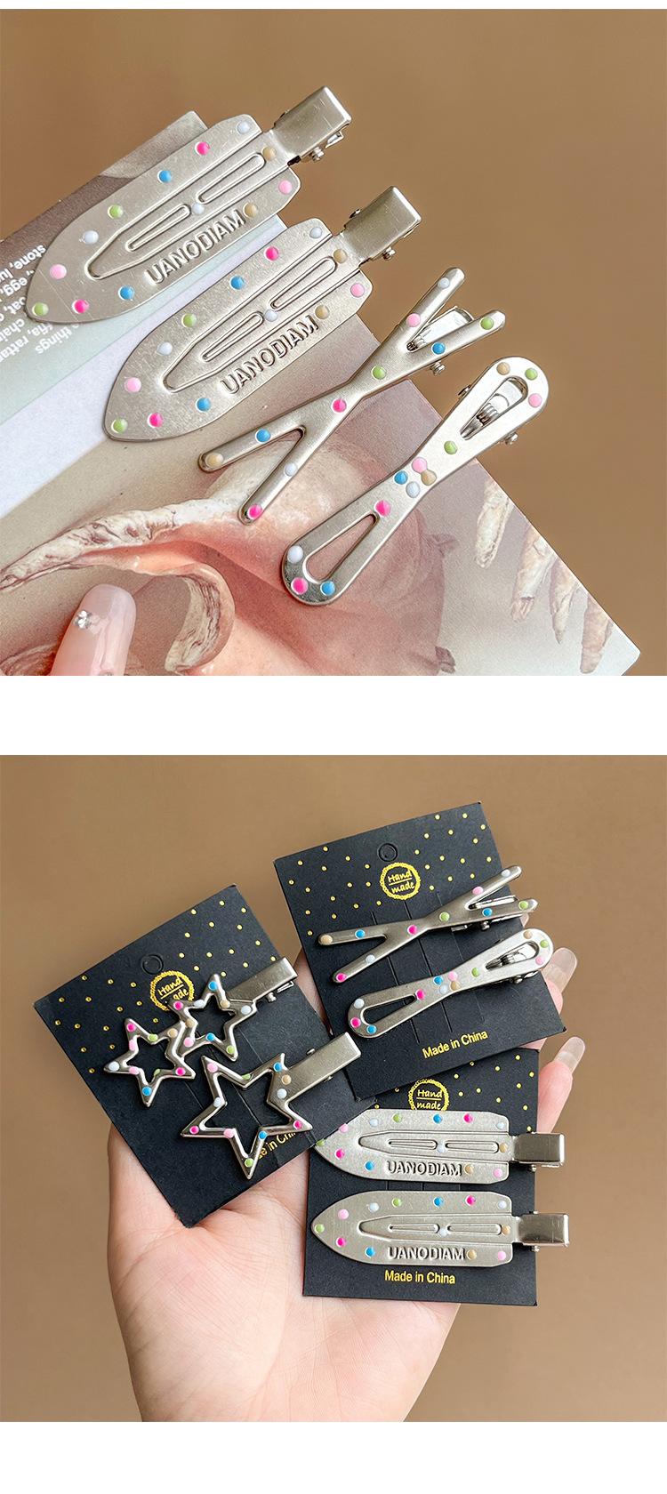 Horquilla de metal plateada con puntos de colores para mujer, con clip lateral y forma de gota de agua, para maquillaje, para el flequillo frontal.