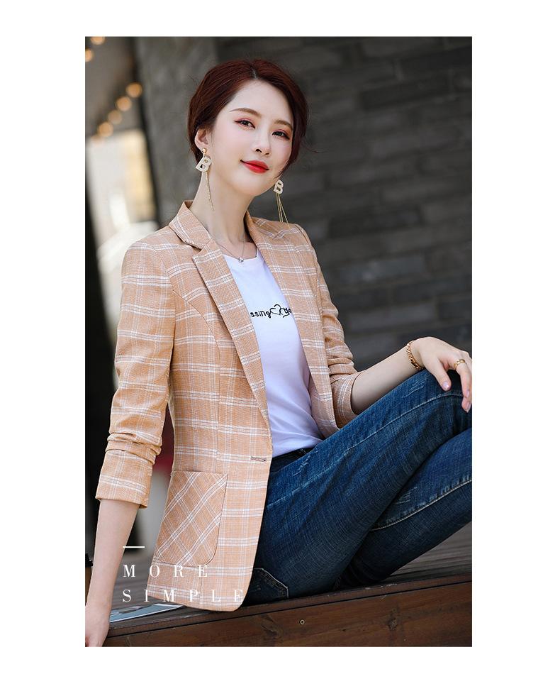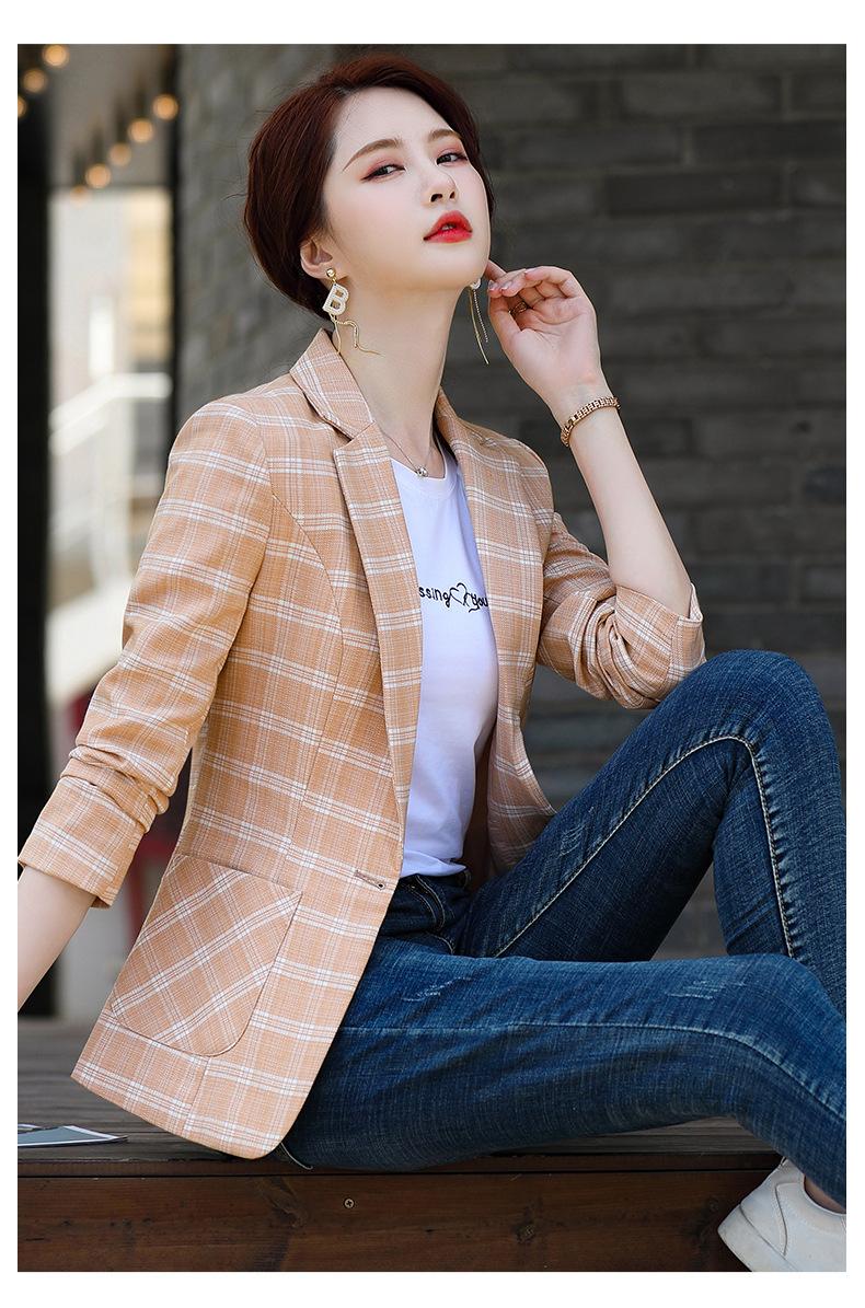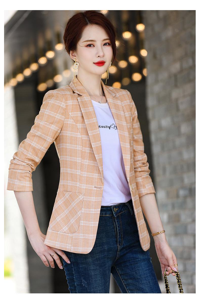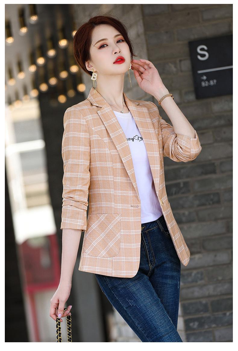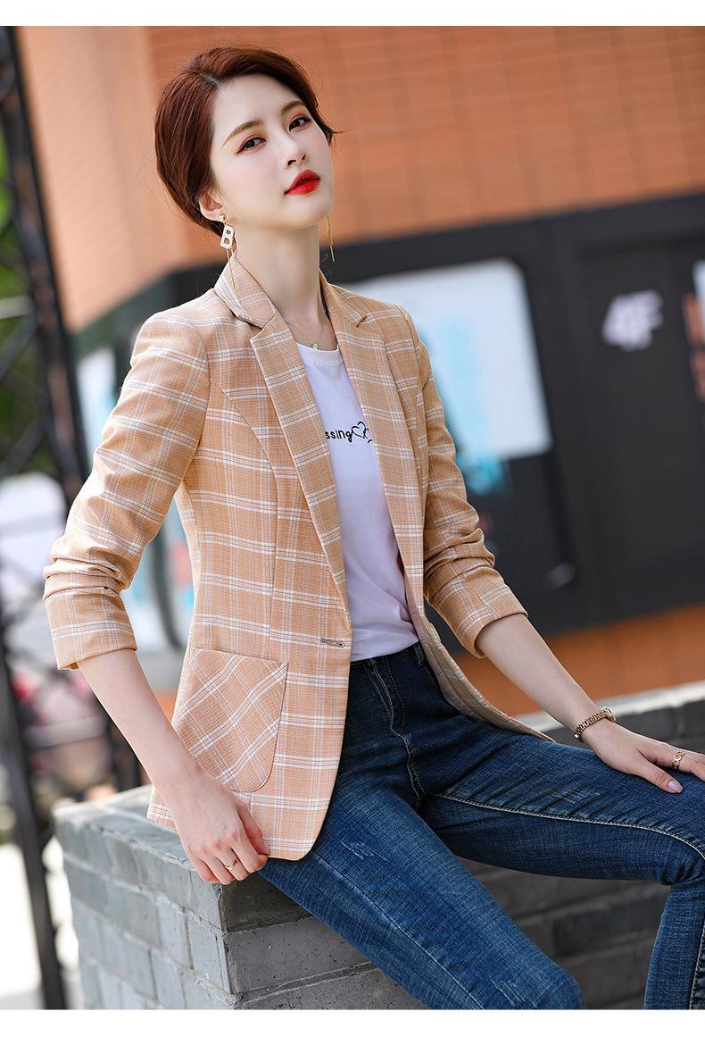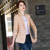 Traje pequeño a cuadros estilo coreano para mujer, ropa de negocios de primavera y verano, abrigo de manga larga para mujer