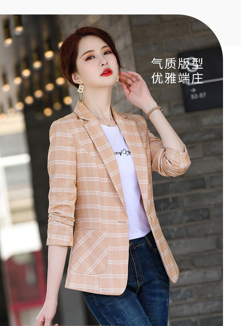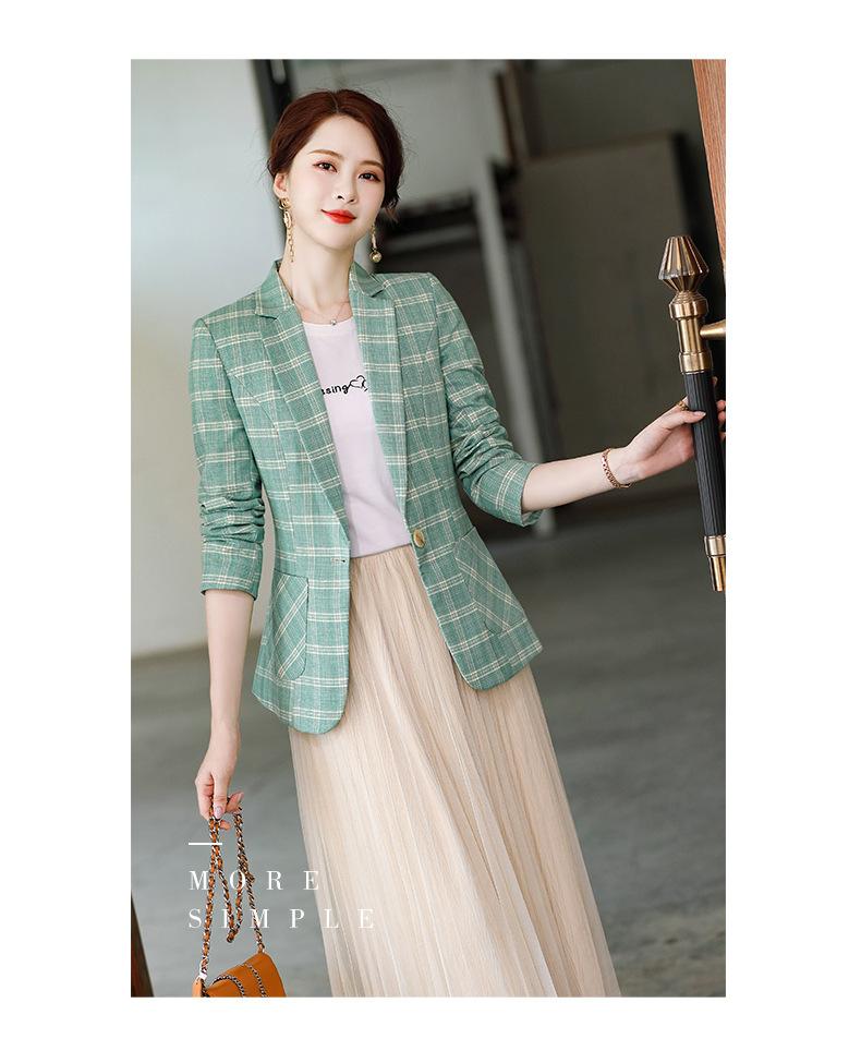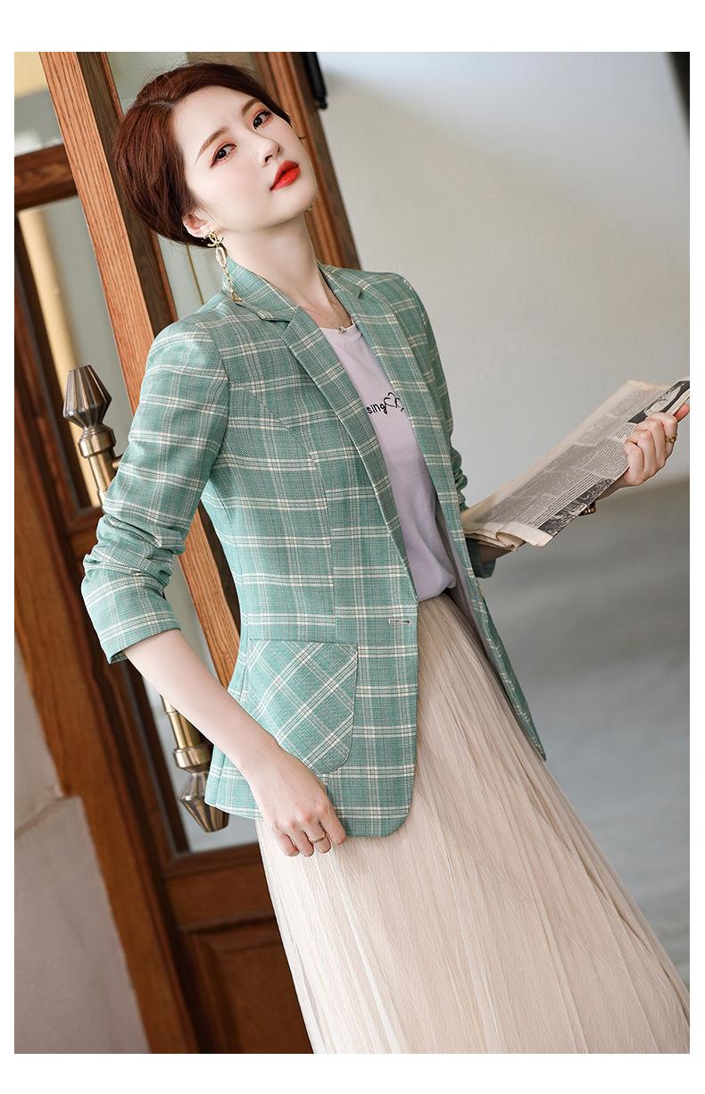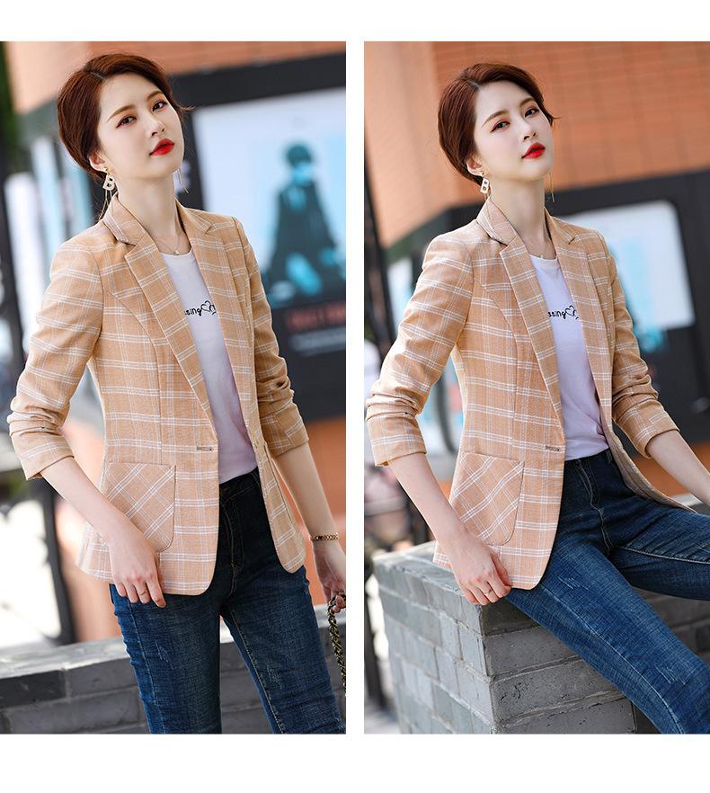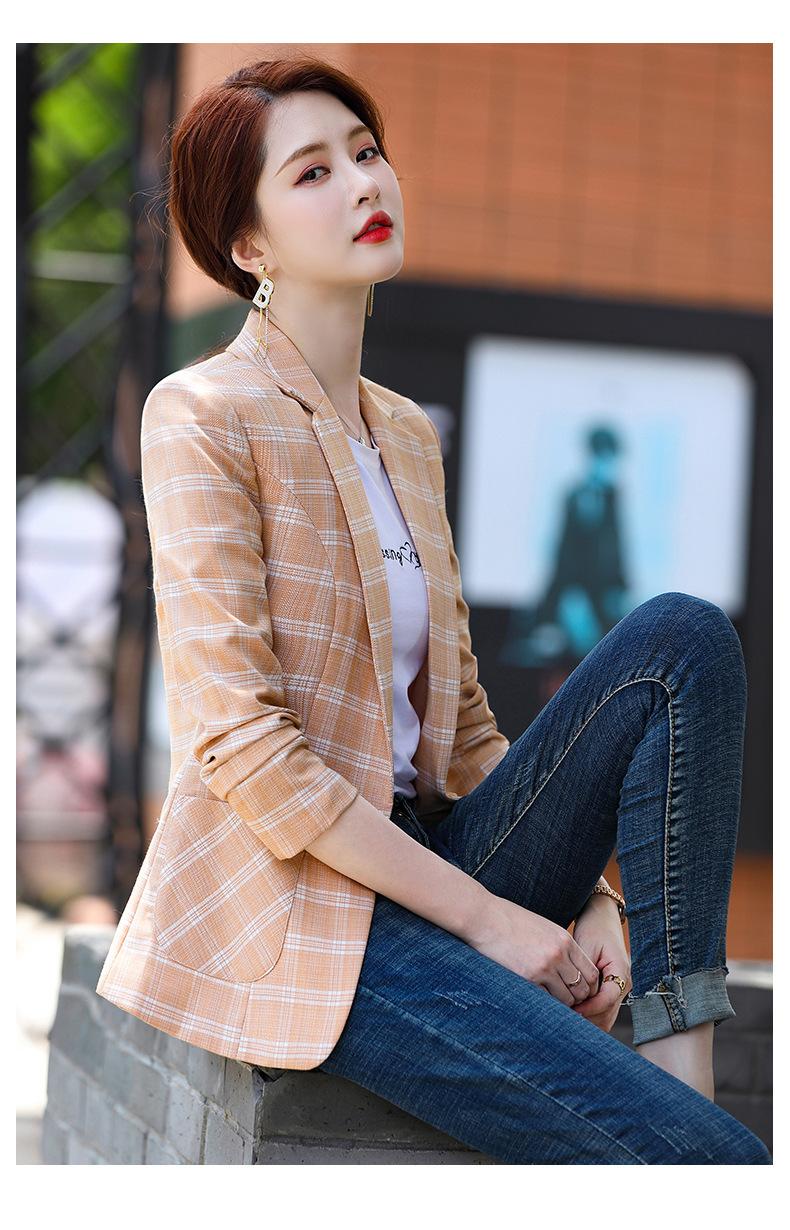 Traje pequeño a cuadros estilo coreano para mujer, ropa de negocios de primavera y verano, abrigo de manga larga para mujer