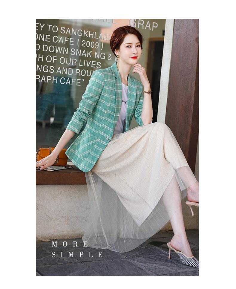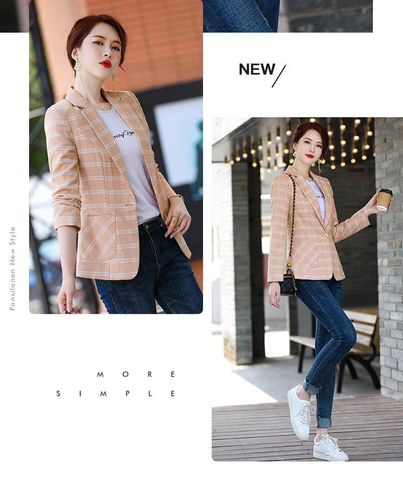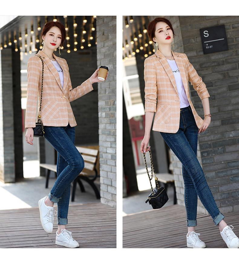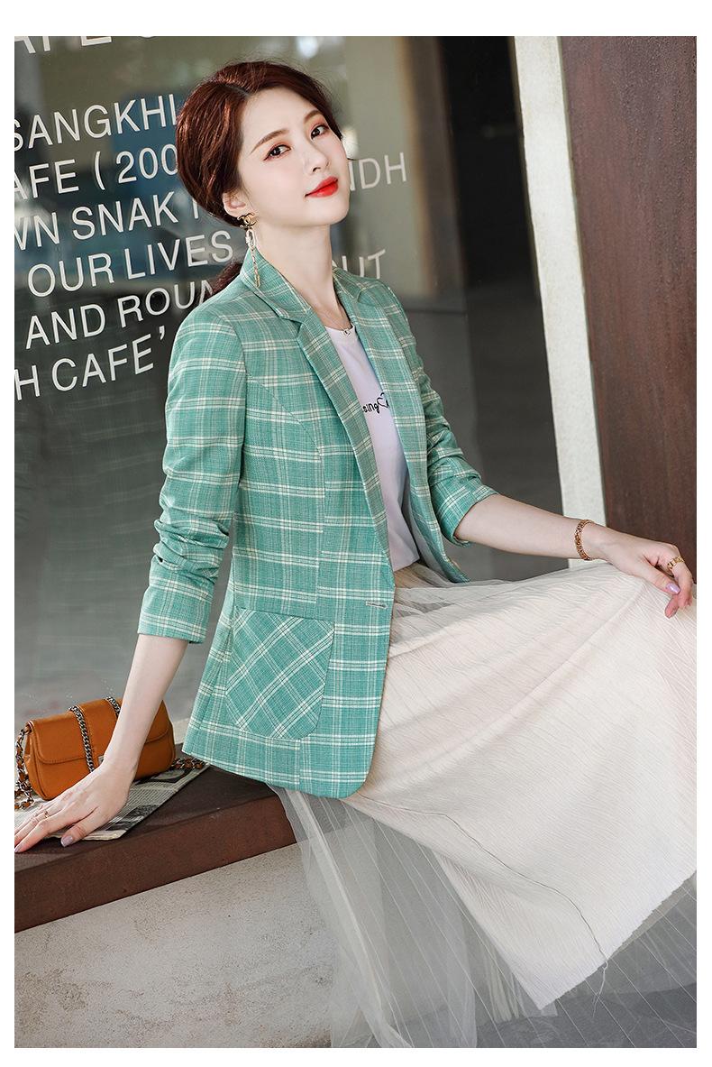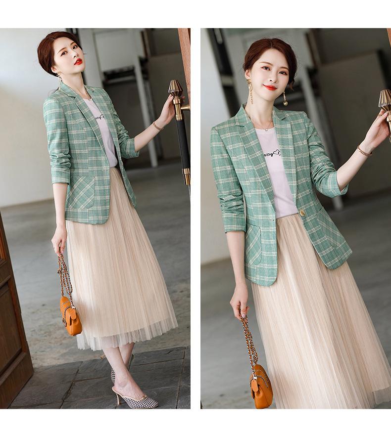 Traje pequeño a cuadros estilo coreano para mujer, ropa de negocios de primavera y verano, abrigo de manga larga para mujer