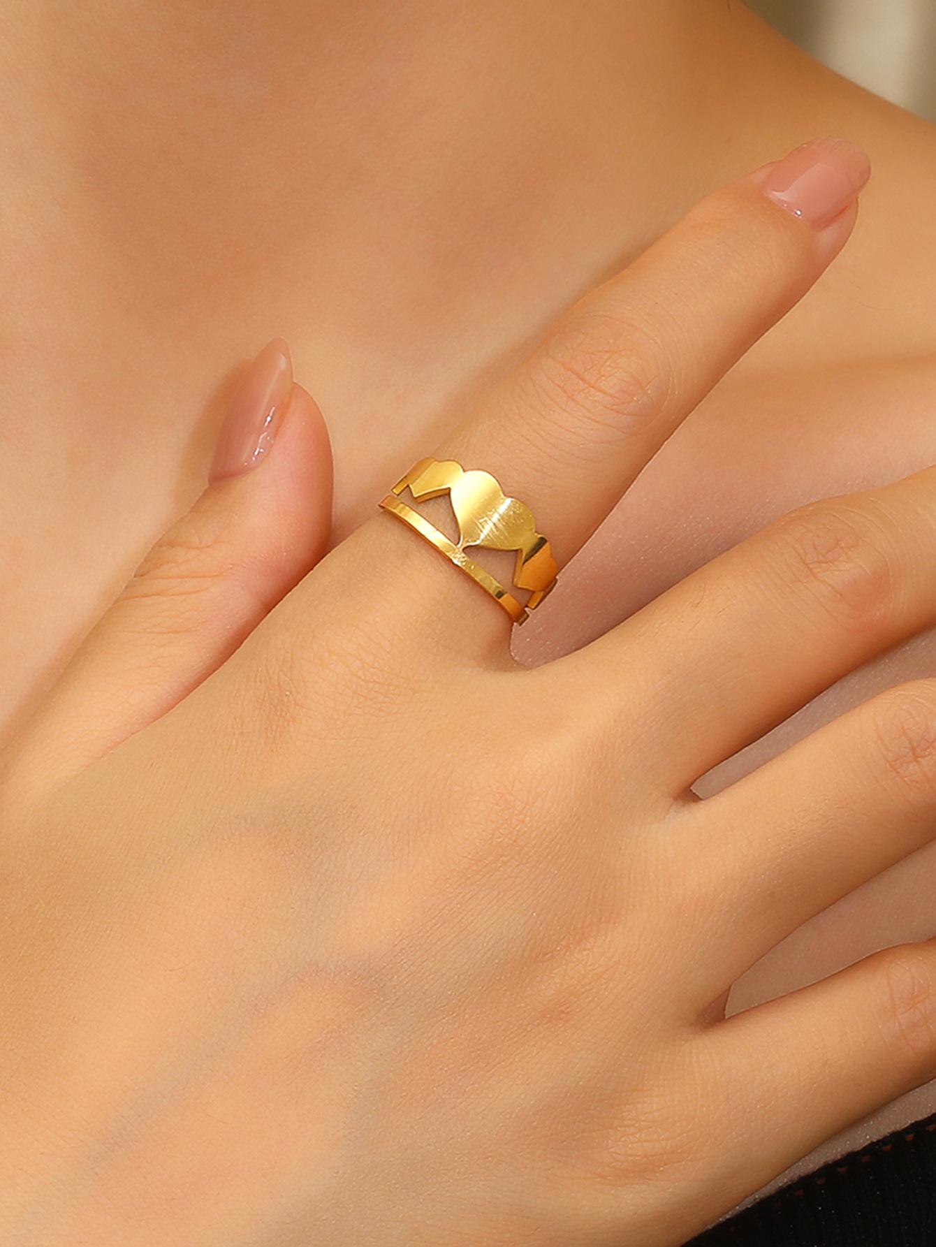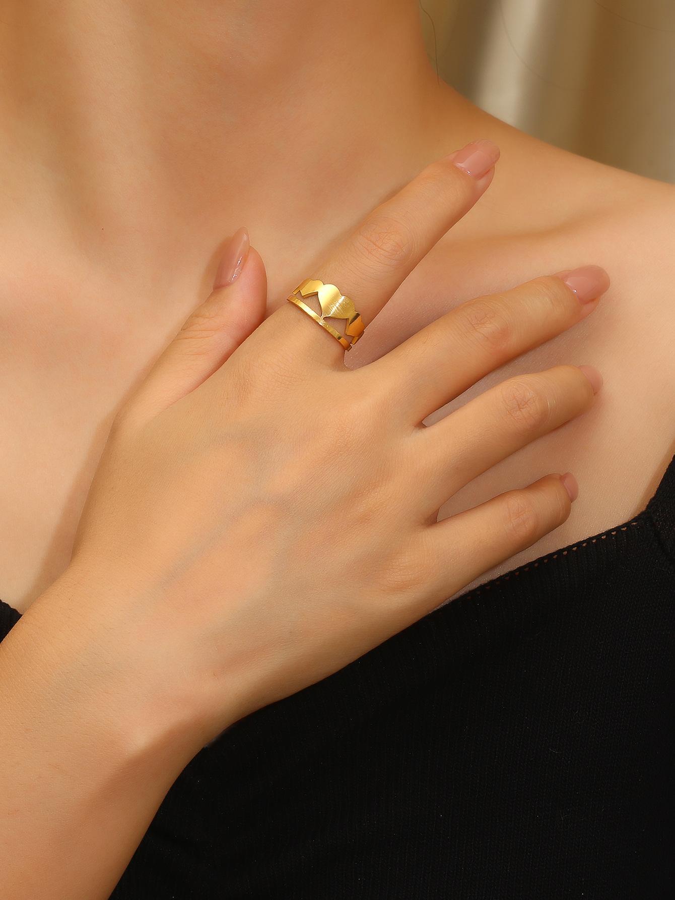Anillo sencillo de amor hueco de acero inoxidable europeo y americano para mujer, anillo de oro de 18 quilates