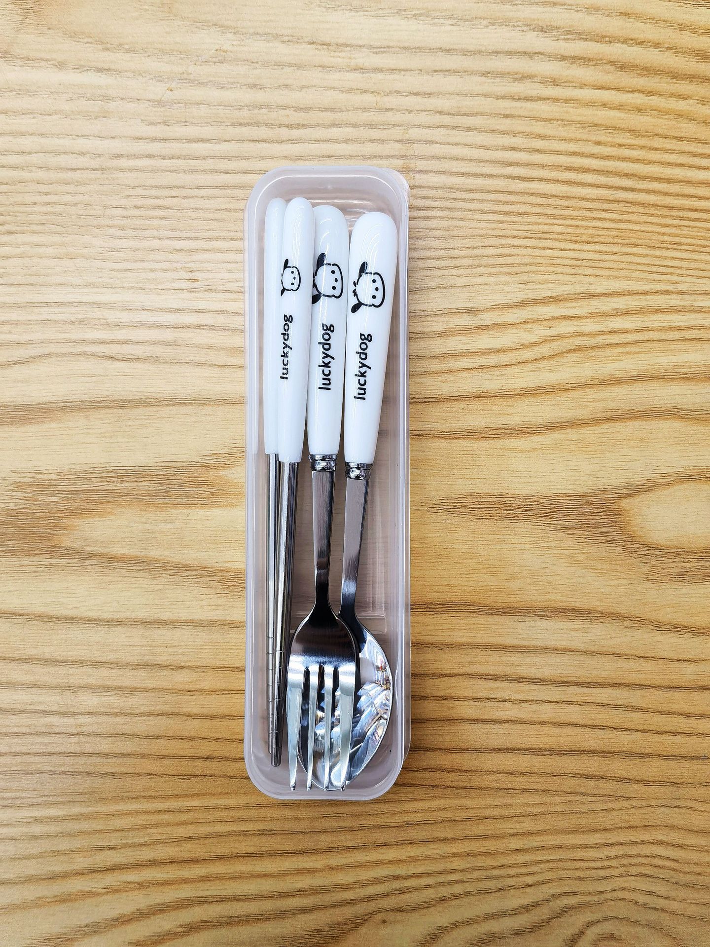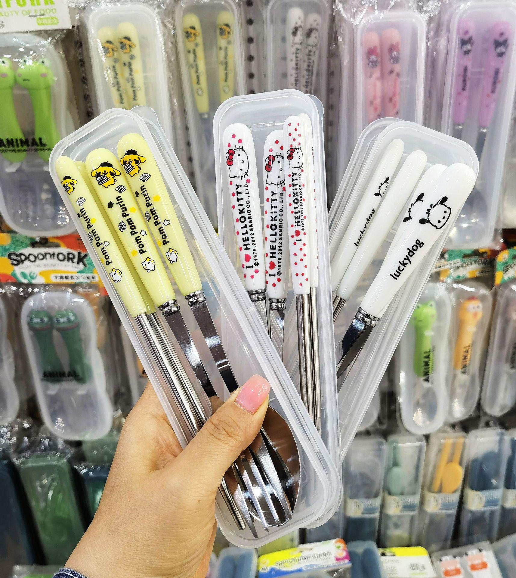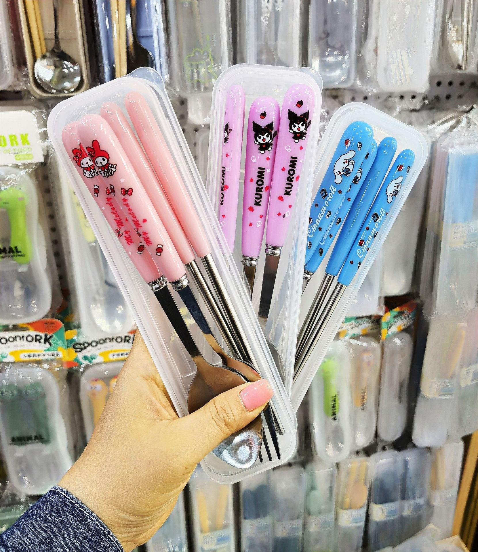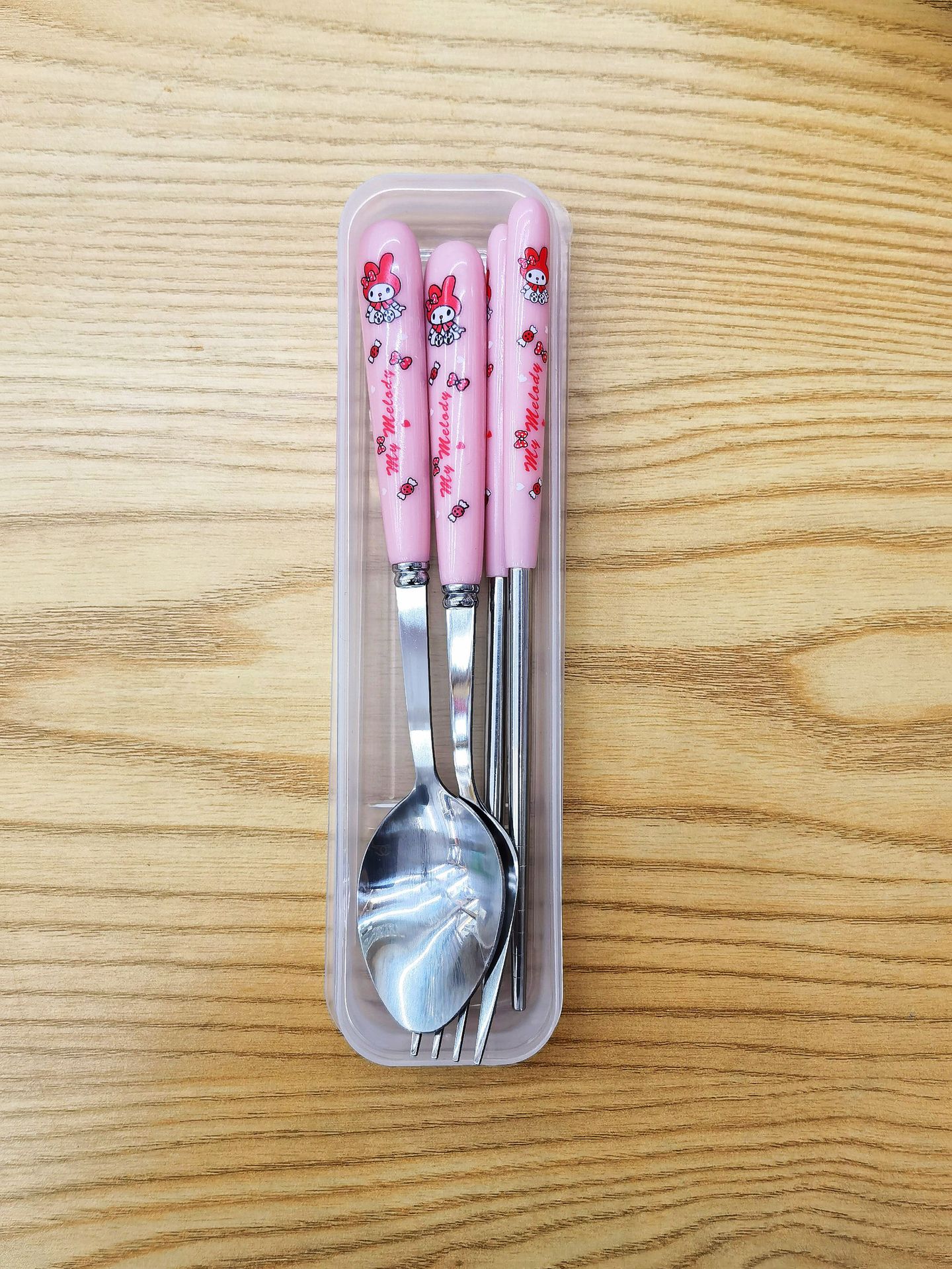 Nombre del producto: Juego de cubiertos de dibujos animados HL-06 de tres piezas (tenedor + cuchara + palillos)