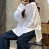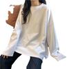 Camiseta de manga larga de color liso con abertura de otoño 2024, camisa básica de moda para mujer, atuendo coreano de moda para estudiantes, top holgado