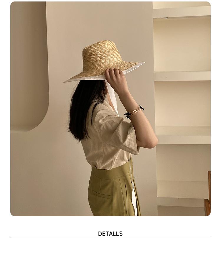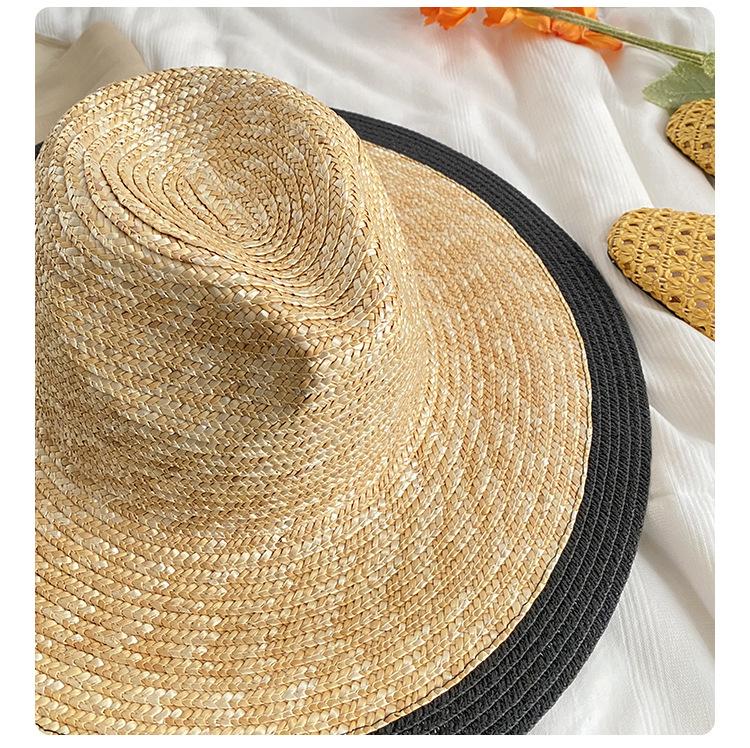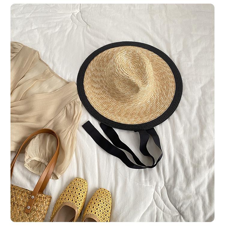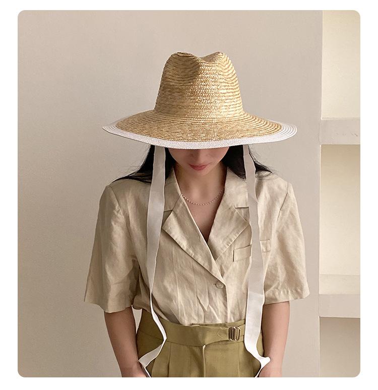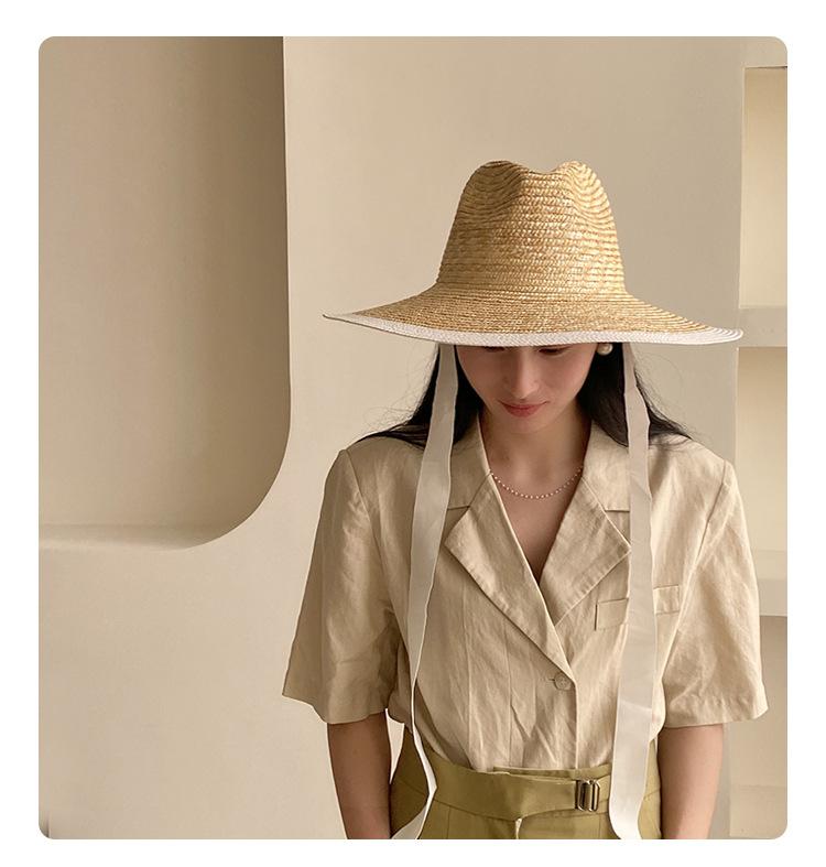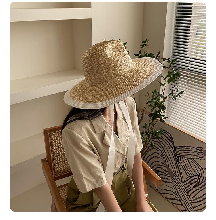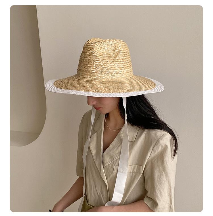 Sombrero de Paja Panamá Retro Francés con Empalme de Correa para Mujer Foto con Cordones Vacaciones Junto al Mar Sombrero de Paja de Playa de Ala Ancha