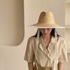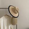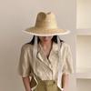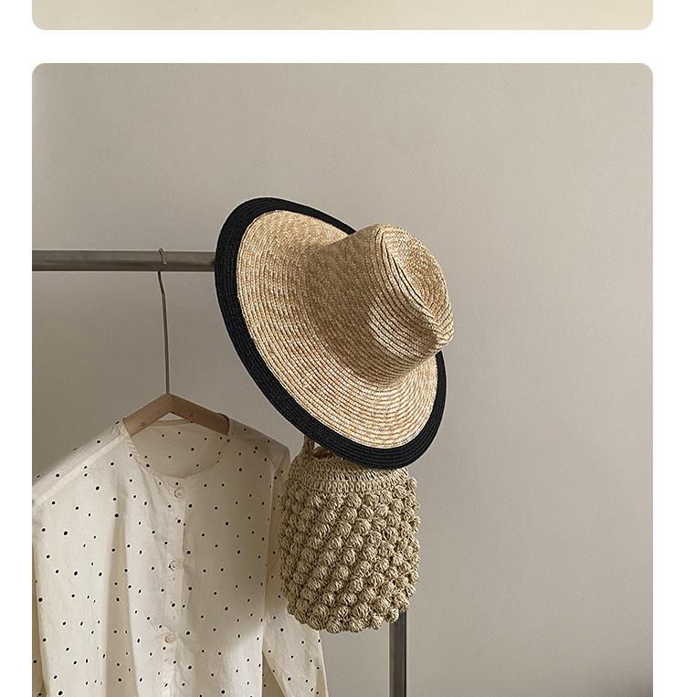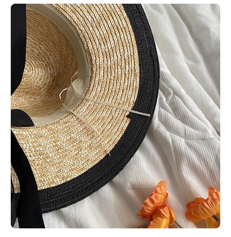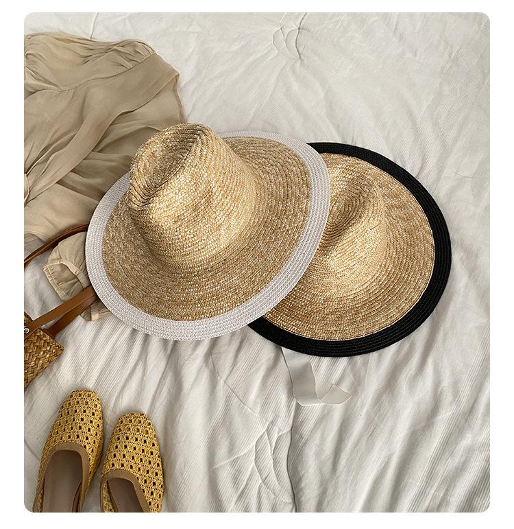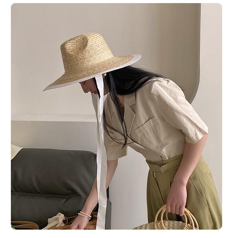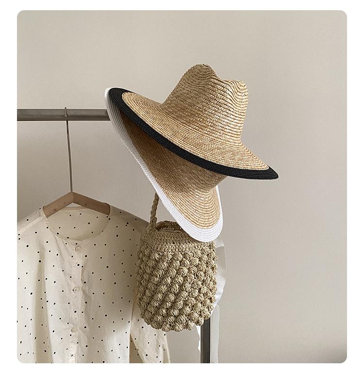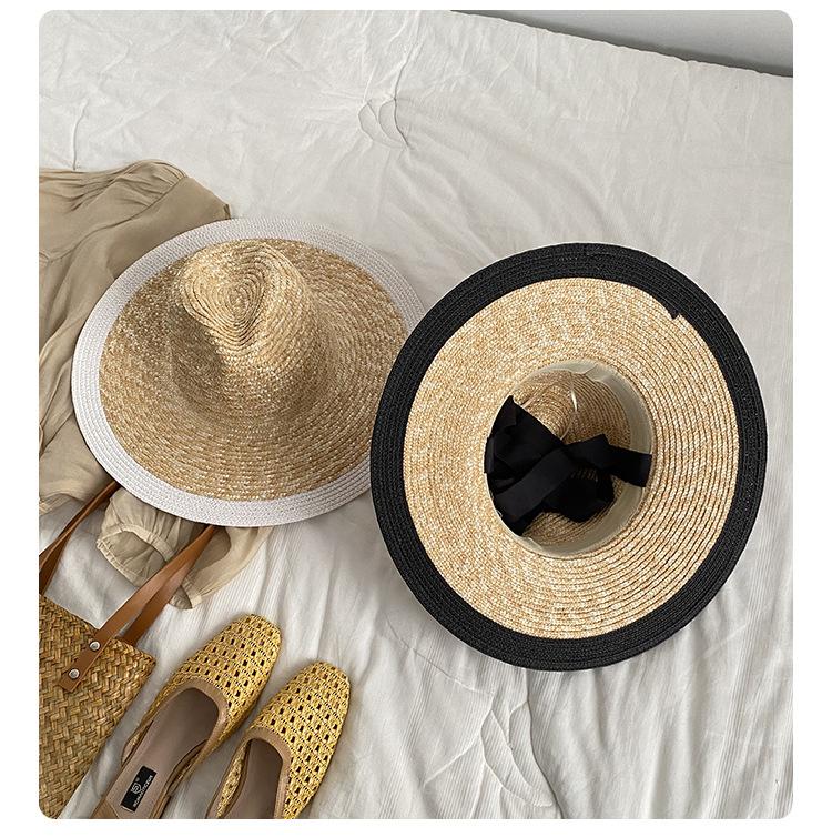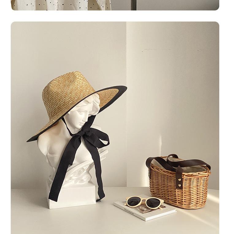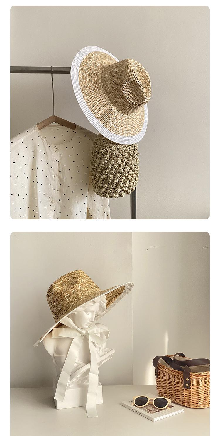 Sombrero de Paja Panamá Retro Francés con Empalme de Correa para Mujer Foto con Cordones Vacaciones Junto al Mar Sombrero de Paja de Playa de Ala Ancha