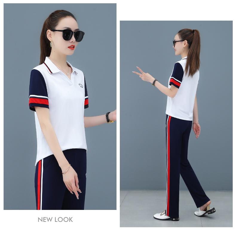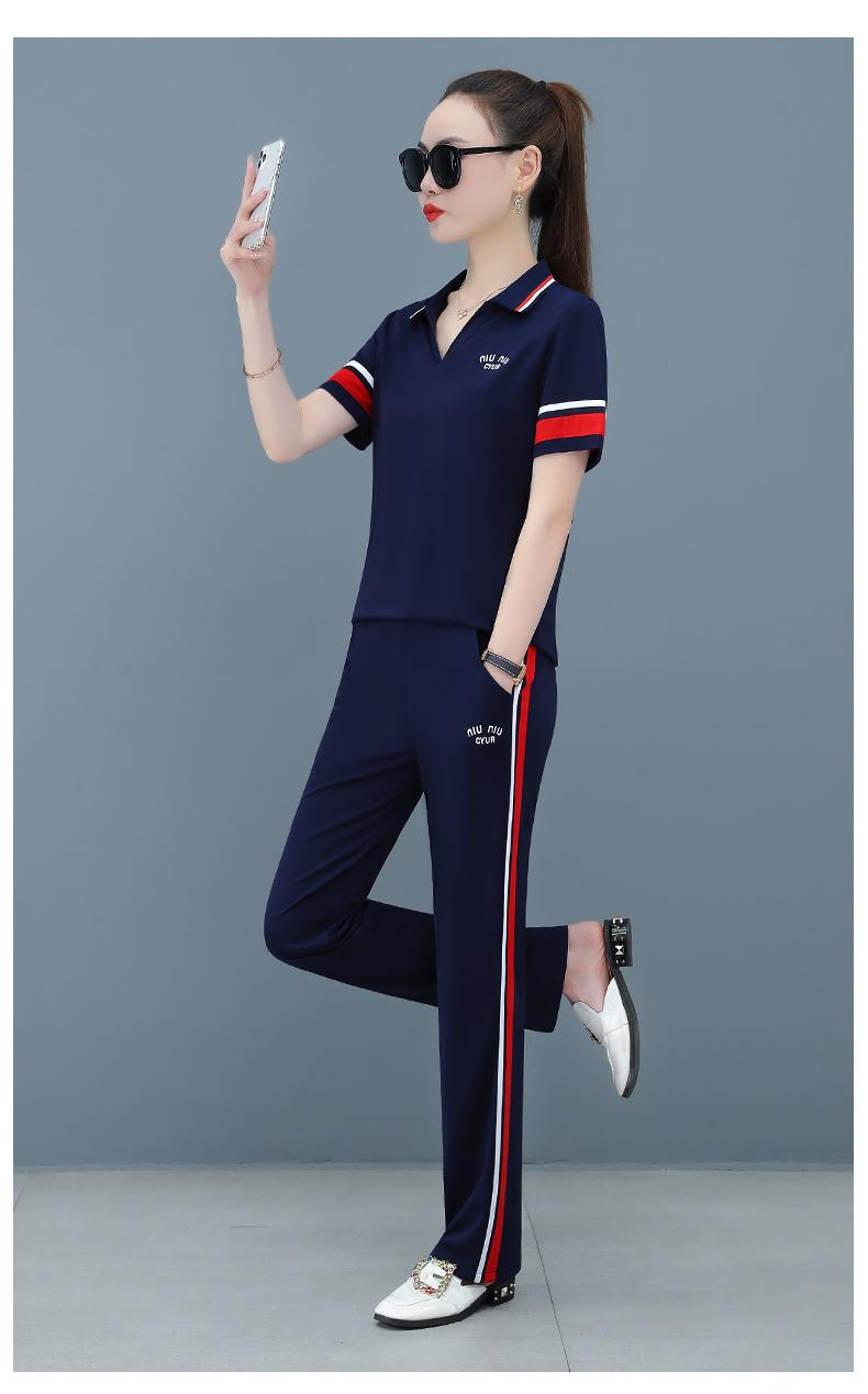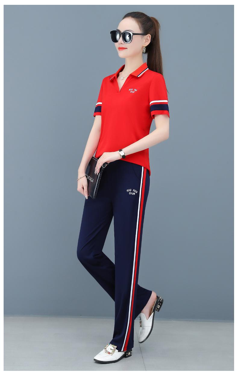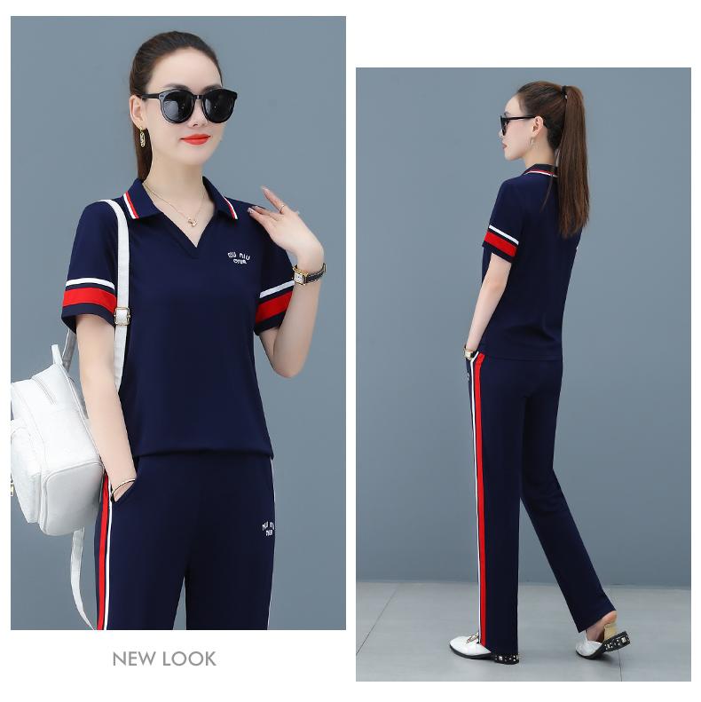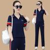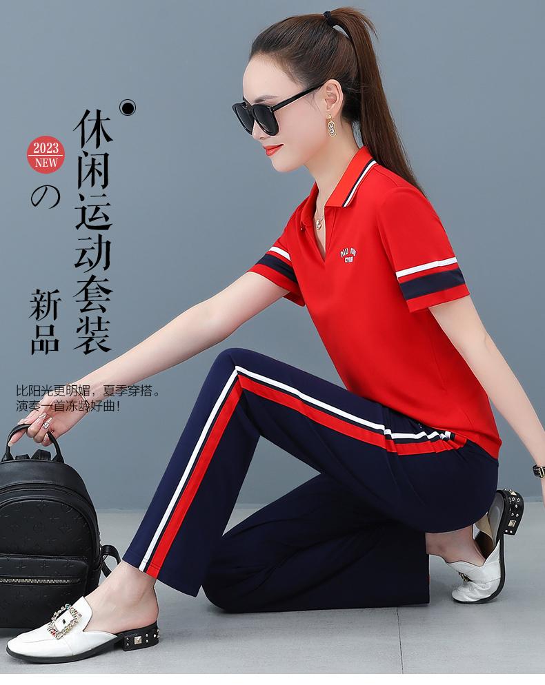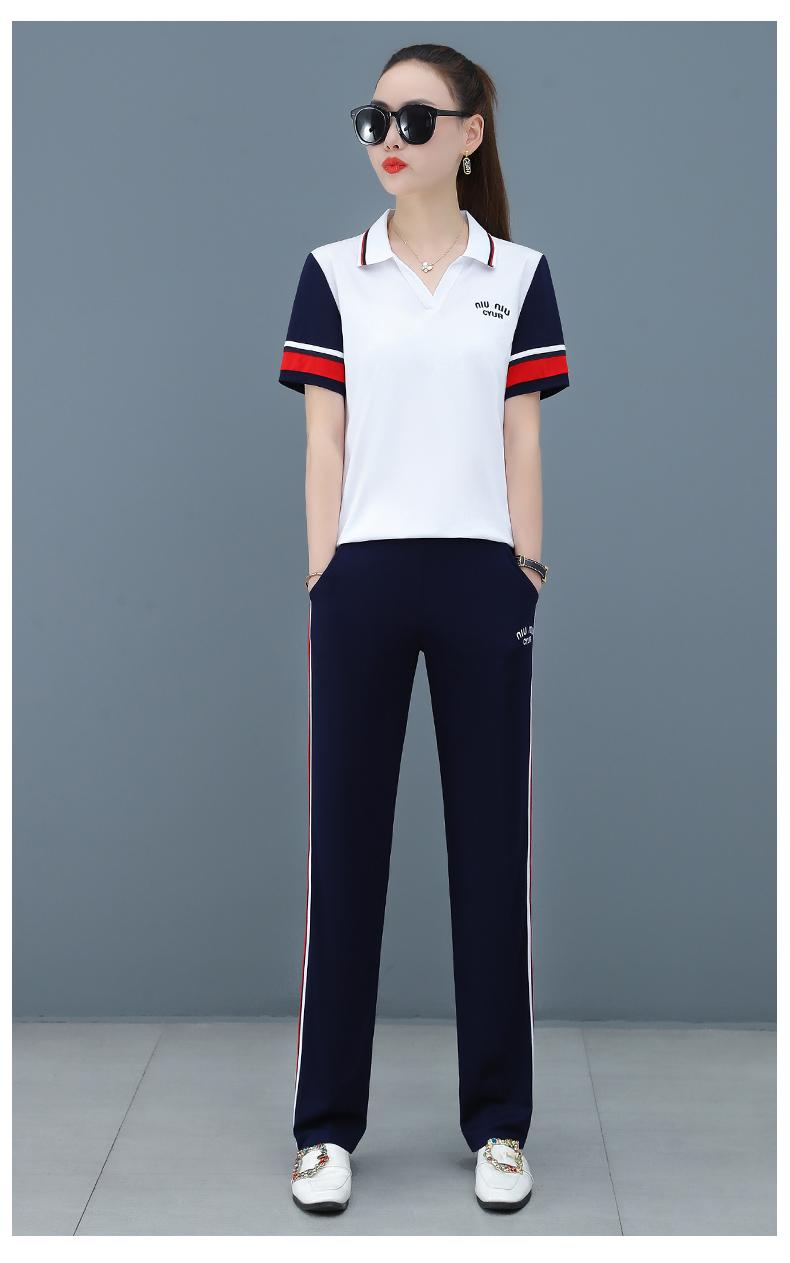 Trajes deportivos para mujer, verano 2023, nuevo estilo, elegante, con cuello en V, a juego de colores, moderno, holgado, antiedad, fino, para correr, traje de dos piezas