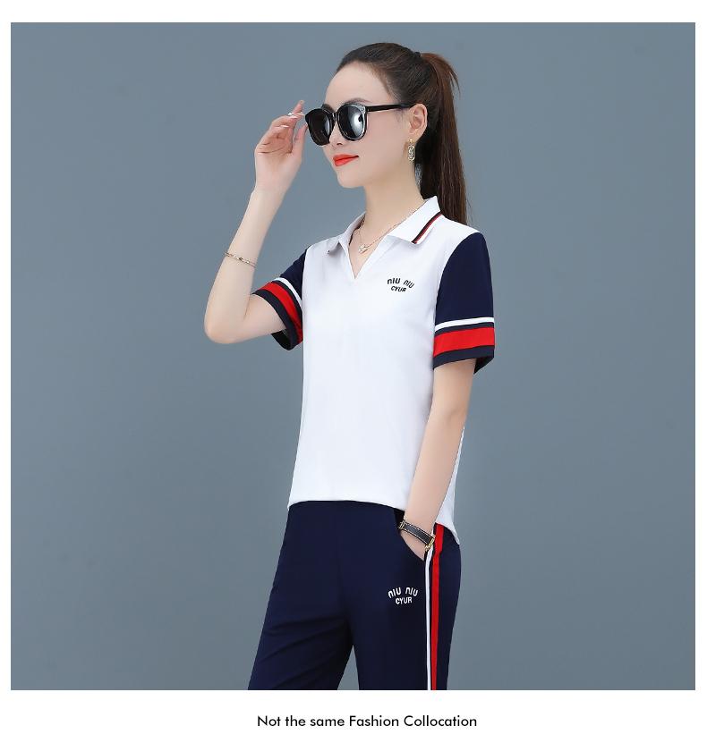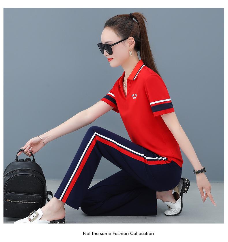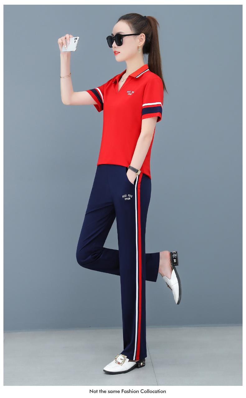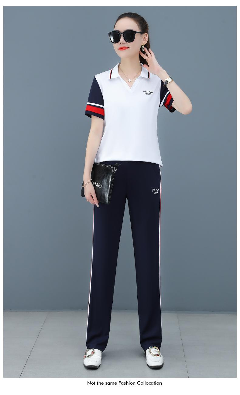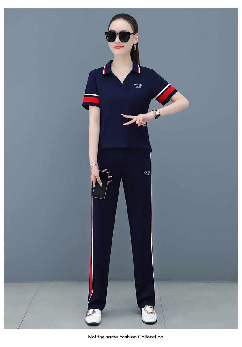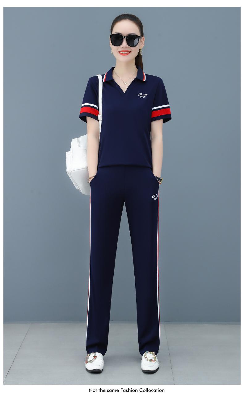 Trajes deportivos para mujer, verano 2023, nuevo estilo, elegante, con cuello en V, a juego de colores, moderno, holgado, antiedad, fino, para correr, traje de dos piezas