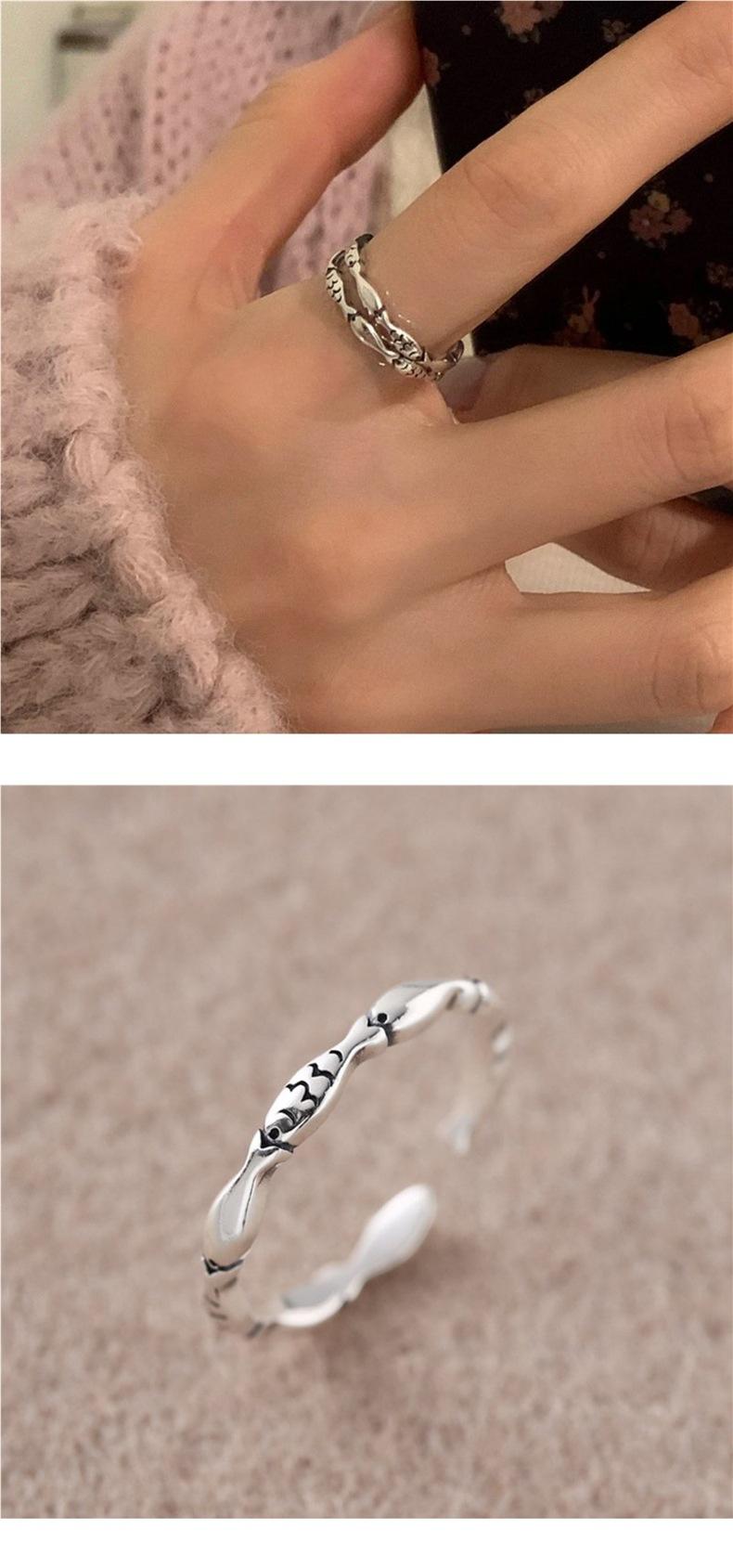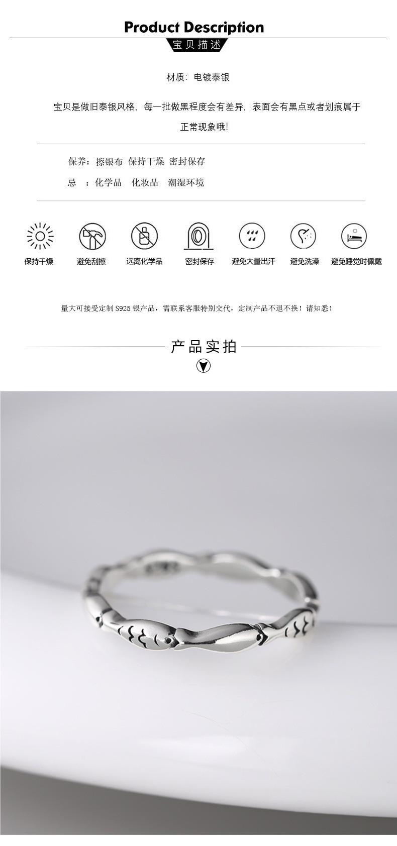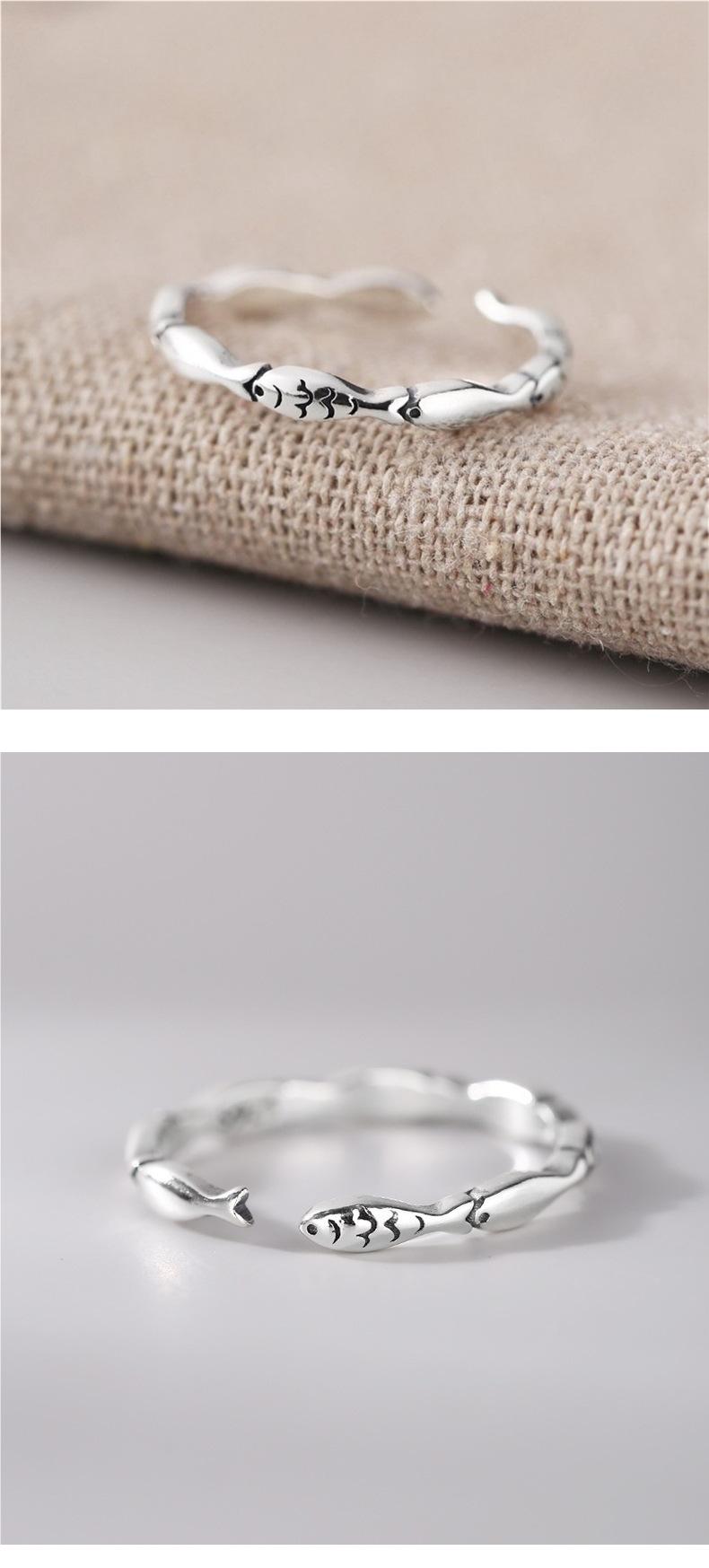 Anillo de Pez Pequeño Vintage Desgastado para Mujer Simple Moderno Distintivo Versátil Plata S925 Plateada Anillo Abierto Anillo de Dedo Ins