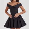 En stock 2025 moda de verano europea y americana temperamento sexy color sólido solapa hombro slim A palabra vestido al por mayor