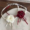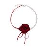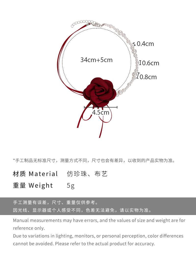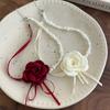 Collar de perlas y camelia estilo Pure Desire para mujer, gargantilla de cadena para clavícula, ligero, de lujo, con flor roja, accesorios