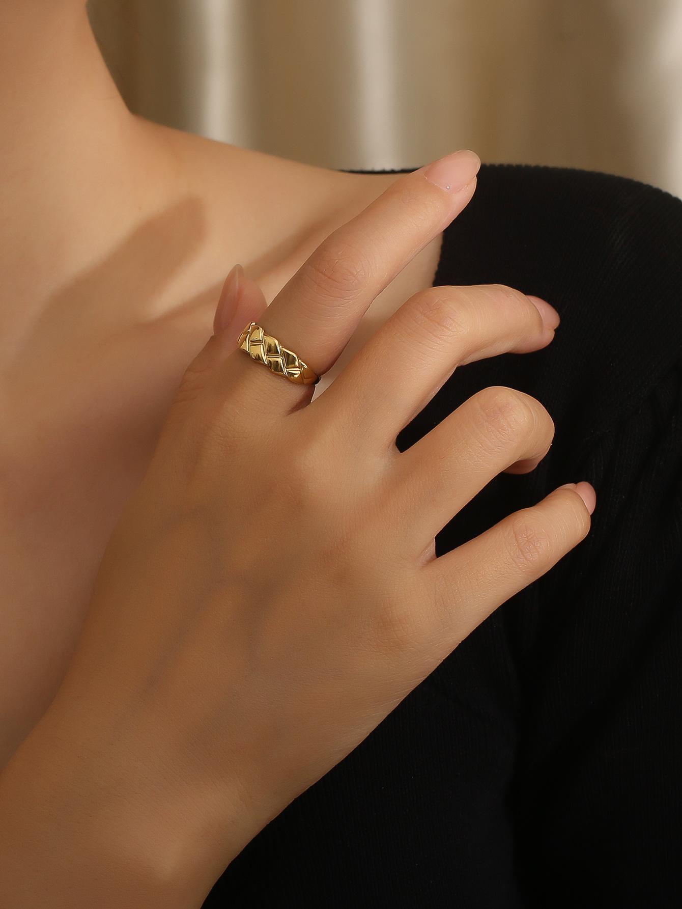 Anillo Romboidal Abierto de Acero de Titanio con Temperamento de Lujo Ligero para Mujer, Diario, Combinable con Todo, Temperamento Nicho, Joyería