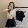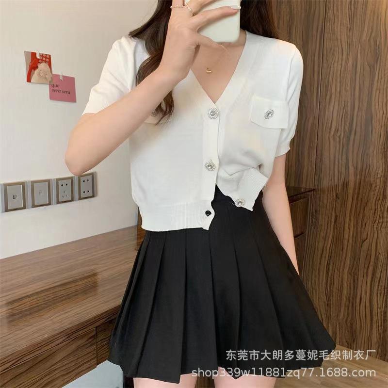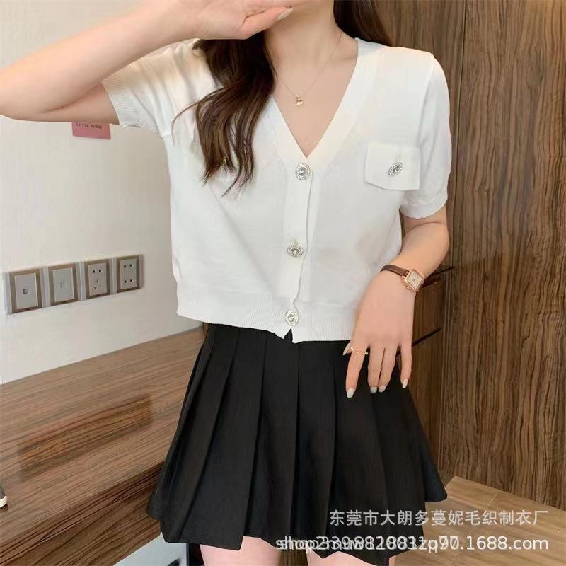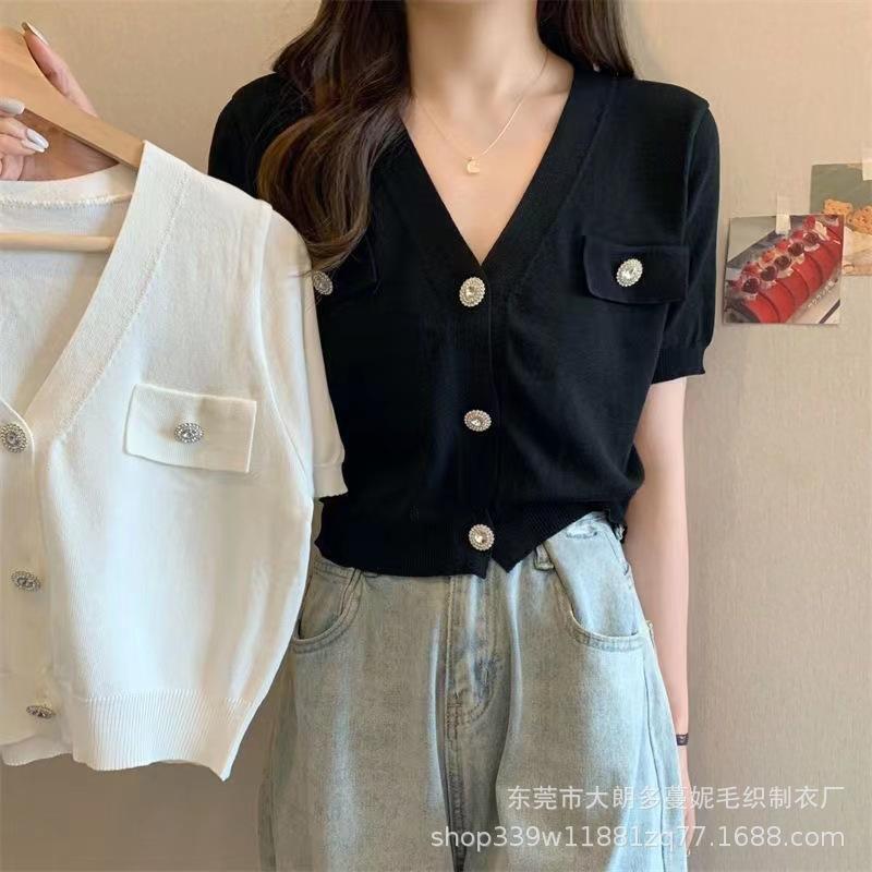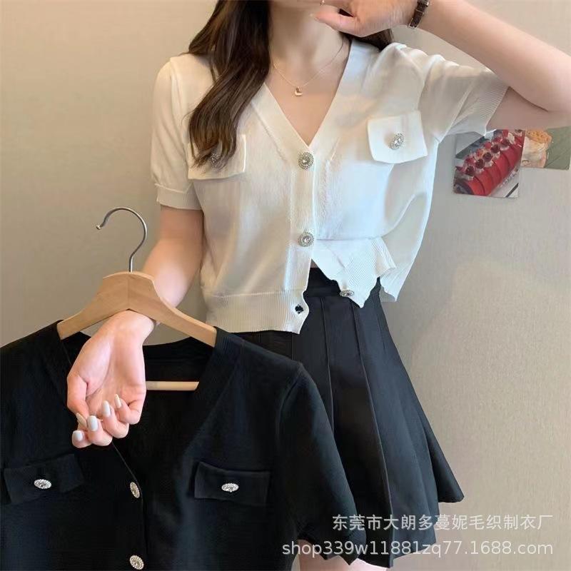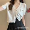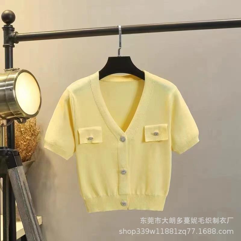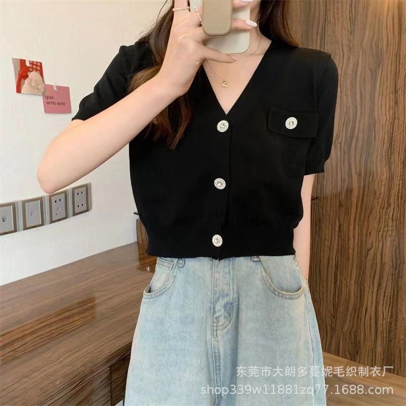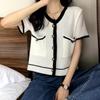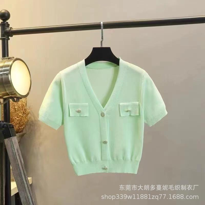 Cárdigan de punto de moda de verano nuevo transfronterizo de color sólido, delgado y suave, de manga corta, estilo francés, tops para mujer