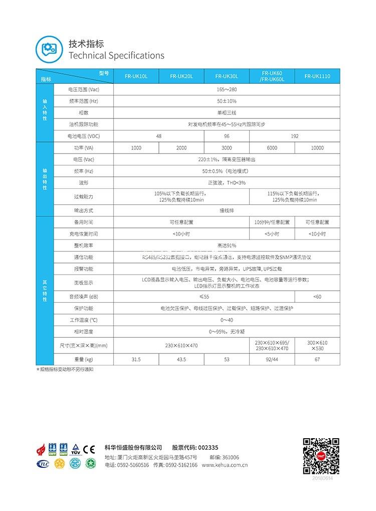Fuente de Alimentación UPS Kehua FR-UK60L Frecuencia de Potencia Online 6kVA Retardo por Fallo de Energía de Fábrica Otro