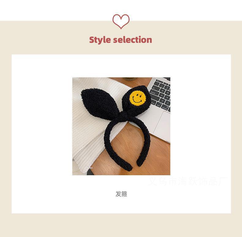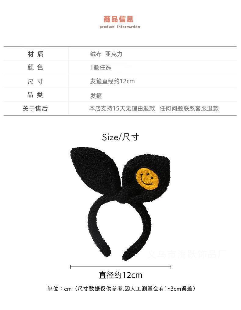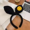 Joyería Haiyue, linda diadema con orejas de conejo, lavable para mujer, diadema antideslizante con cara sonriente de dibujos animados, dulce tocado, horquilla de felpa