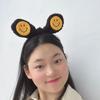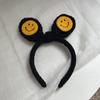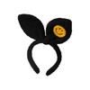 Single smiley black rabbit ear headband, Double smiling face black rabbit ear headband