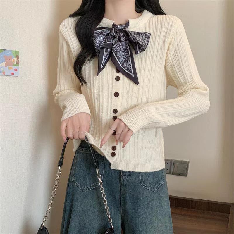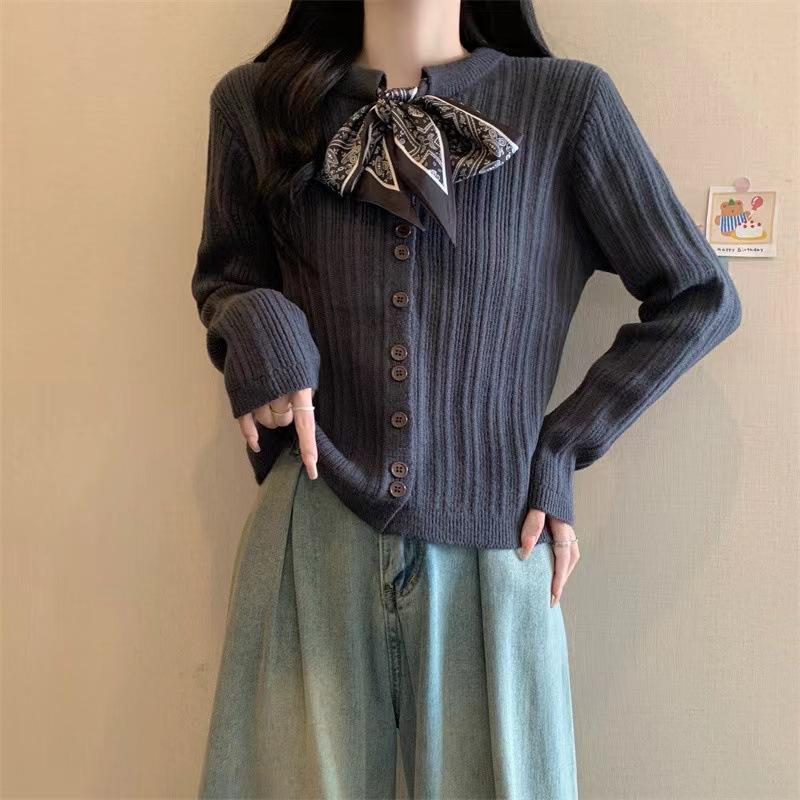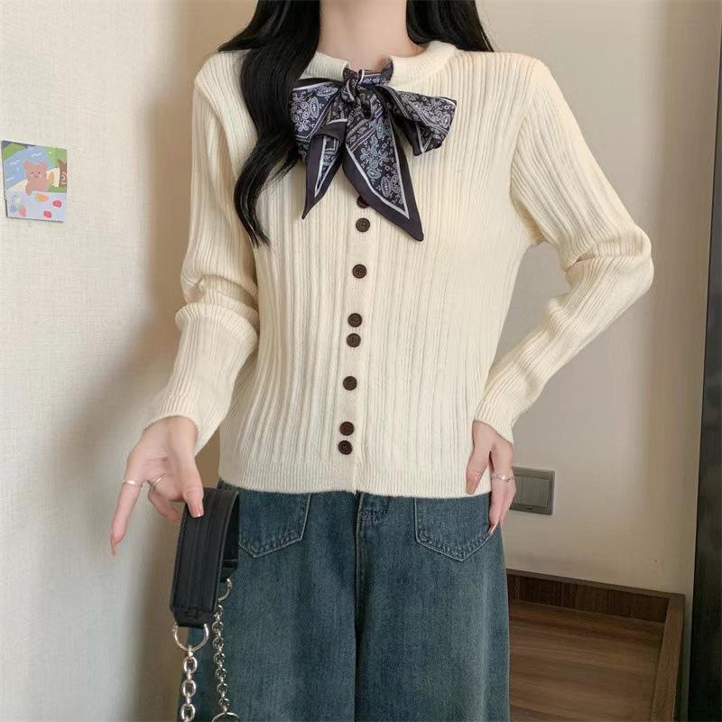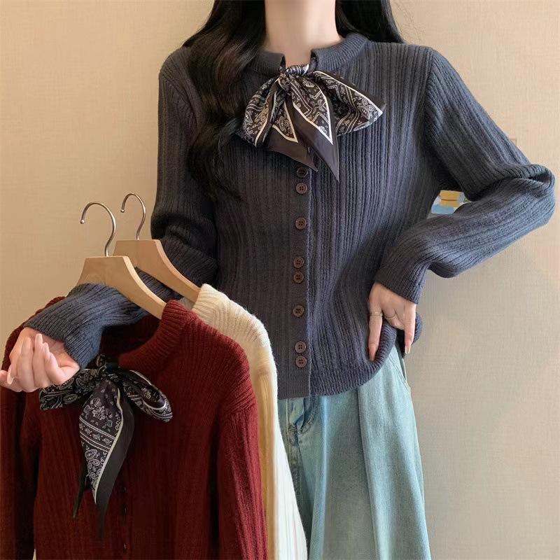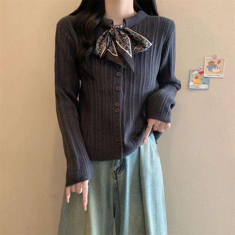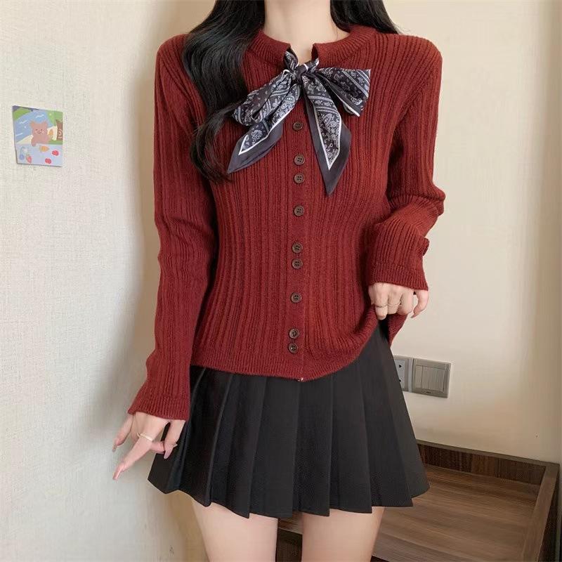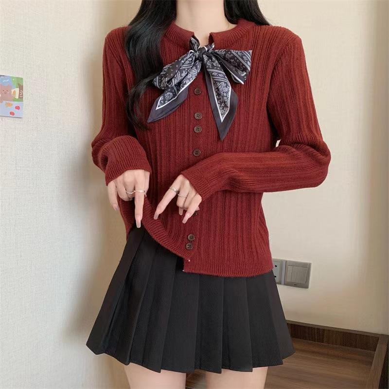 Cárdigan de punto de manga larga de color sólido para mujer, ropa de principios de otoño, ajuste ceñido, camisa base interior, suéter de alta calidad estilo holgazán