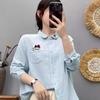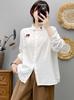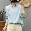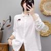 Camisa de algodón de doble capa con bordado de hilo de algodón para mujer, primavera y otoño de 2024, camisa blanca artística fresca de manga larga para mujer
