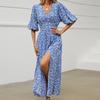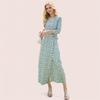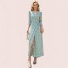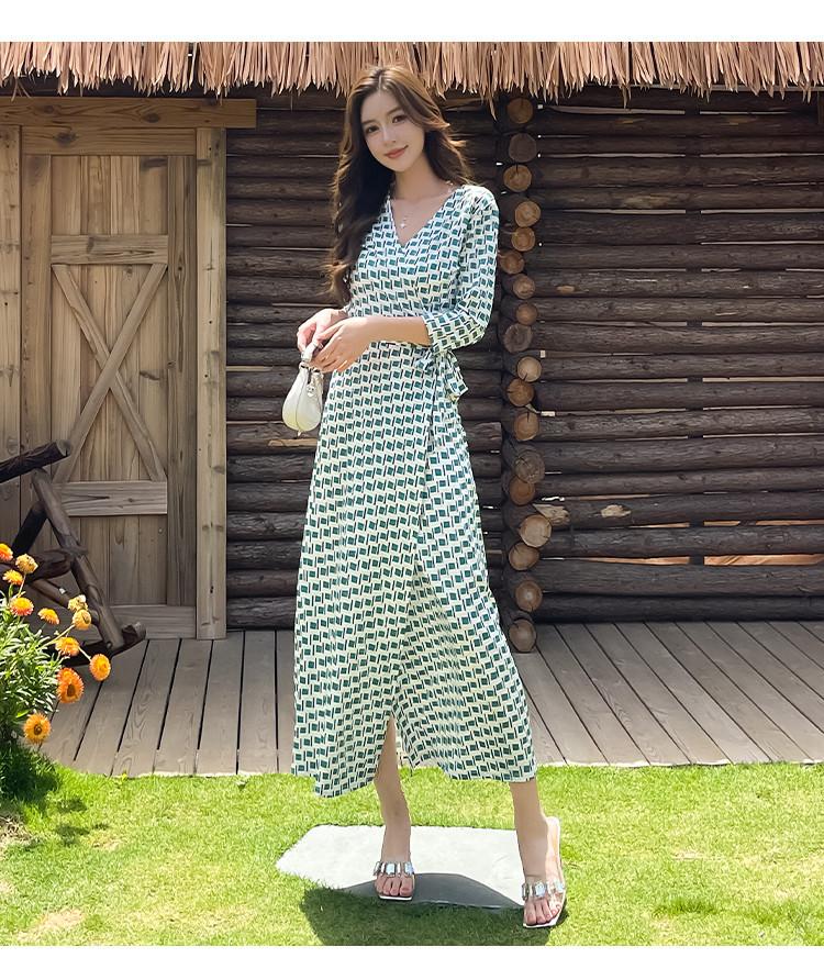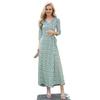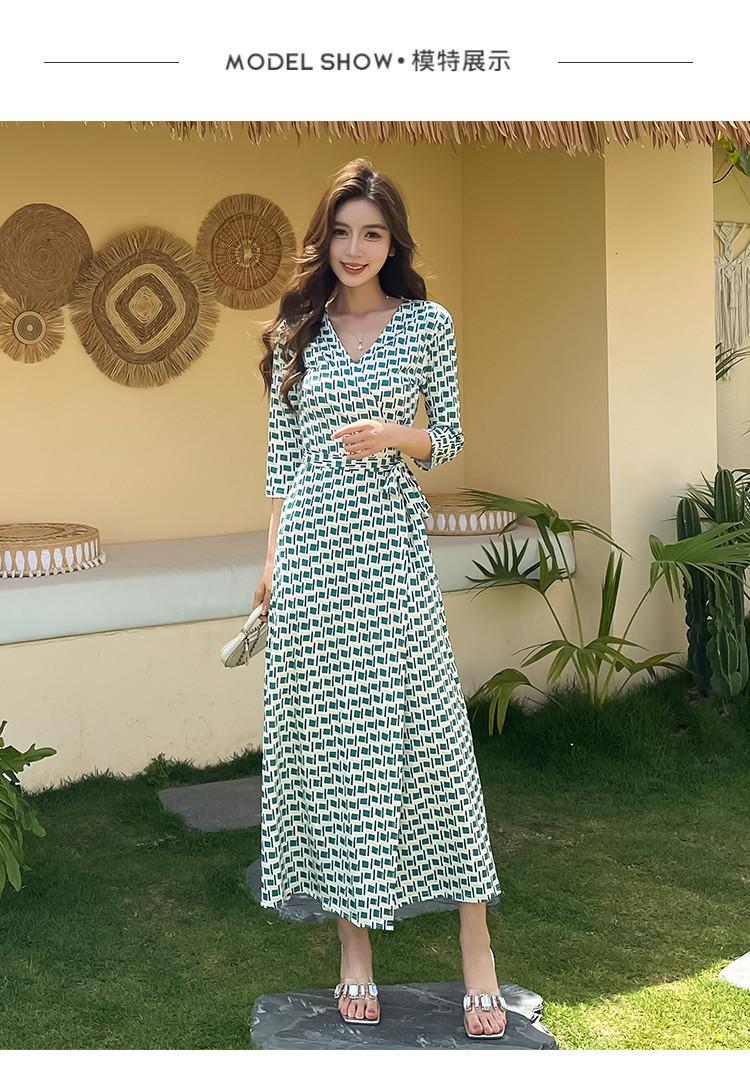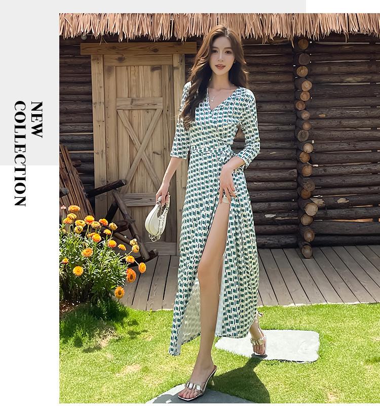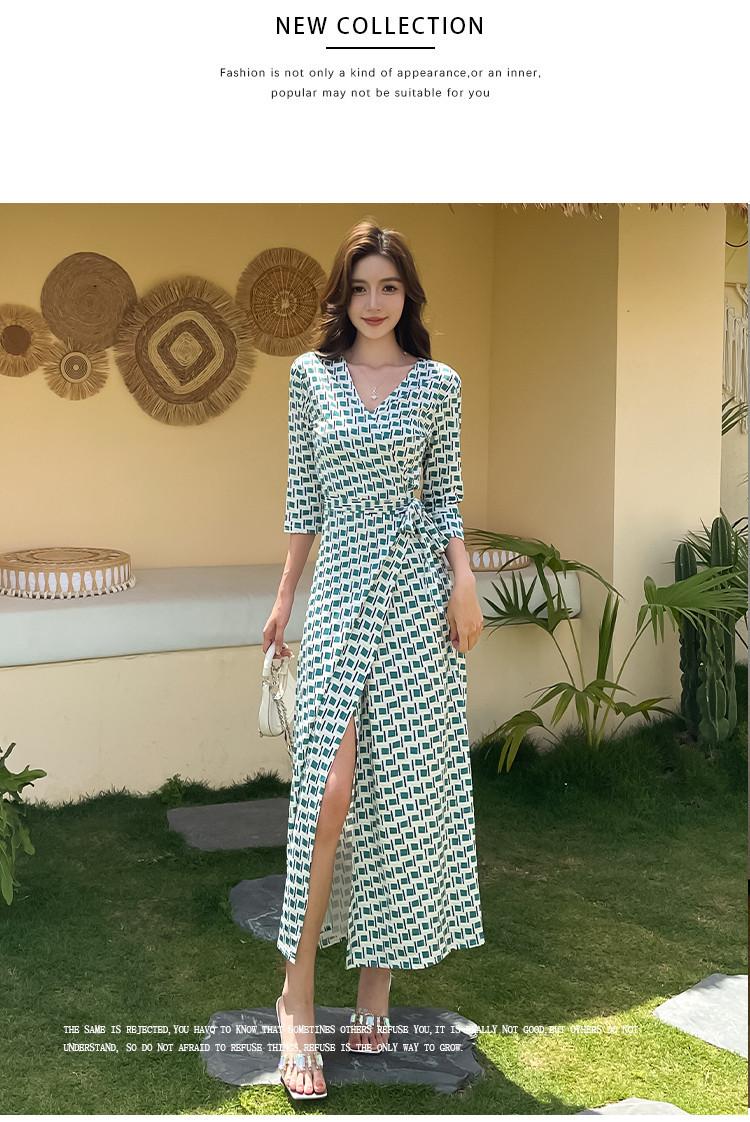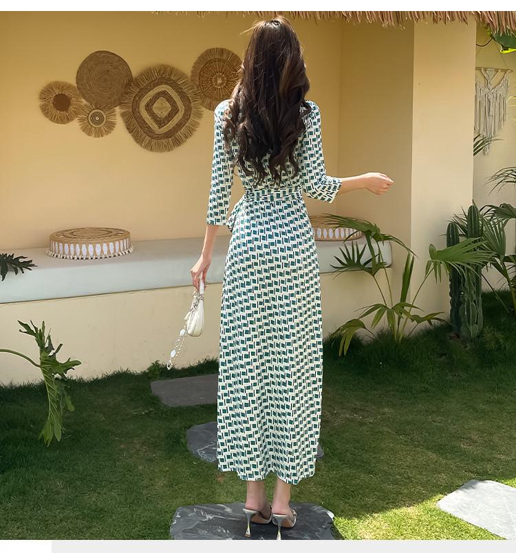 2025 Falda Wrap Estampado Cuadrado Verde Retro Francés Transfronterizo para Mujer Verano Vacaciones en la Playa Sexy Abertura Falda Larga