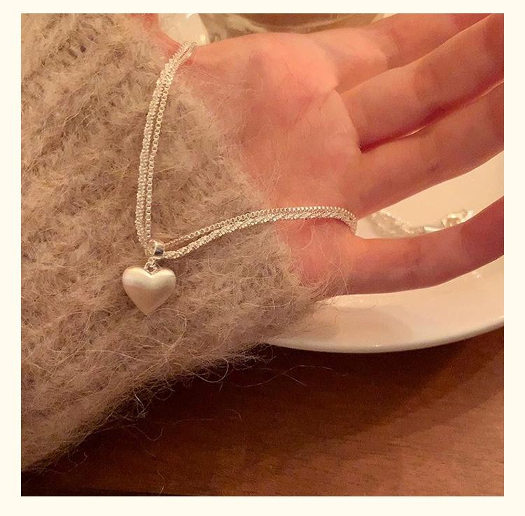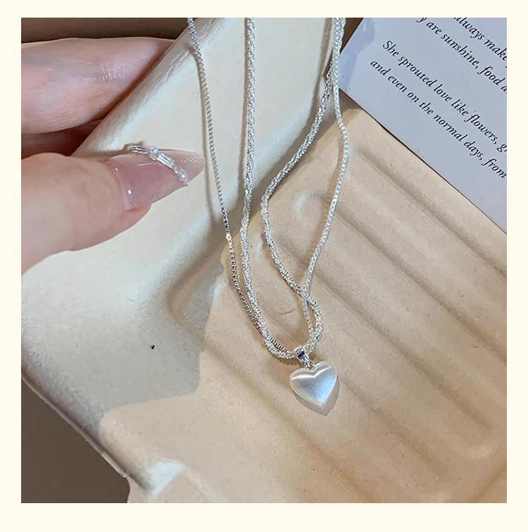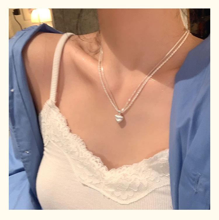 Collar de cadena de lana con colgante de amor cepillado de doble capa para clavícula, de alta calidad, ligero, de lujo, elegante y a la moda para mujer.