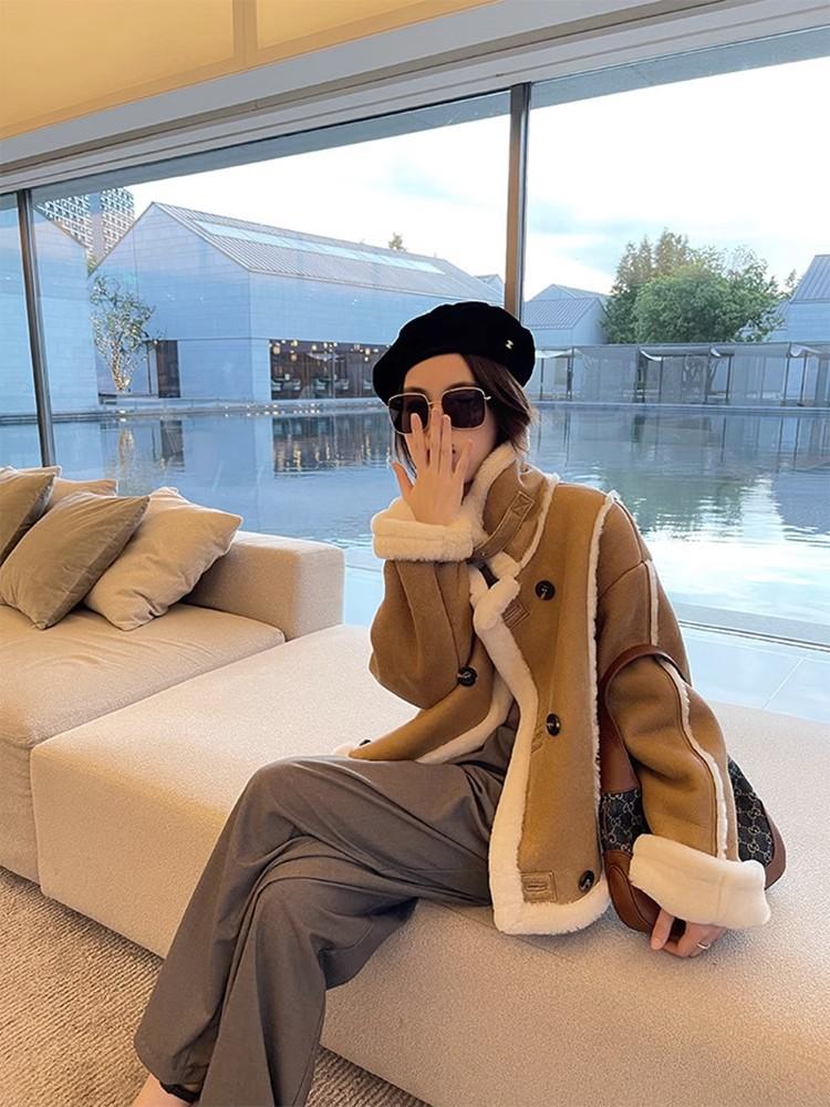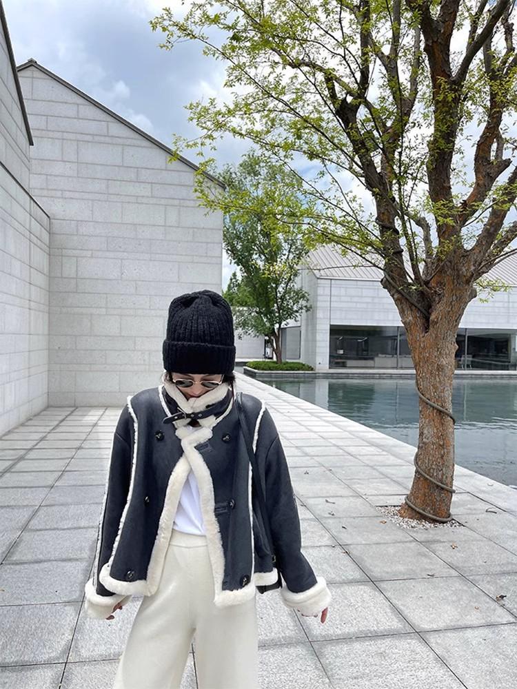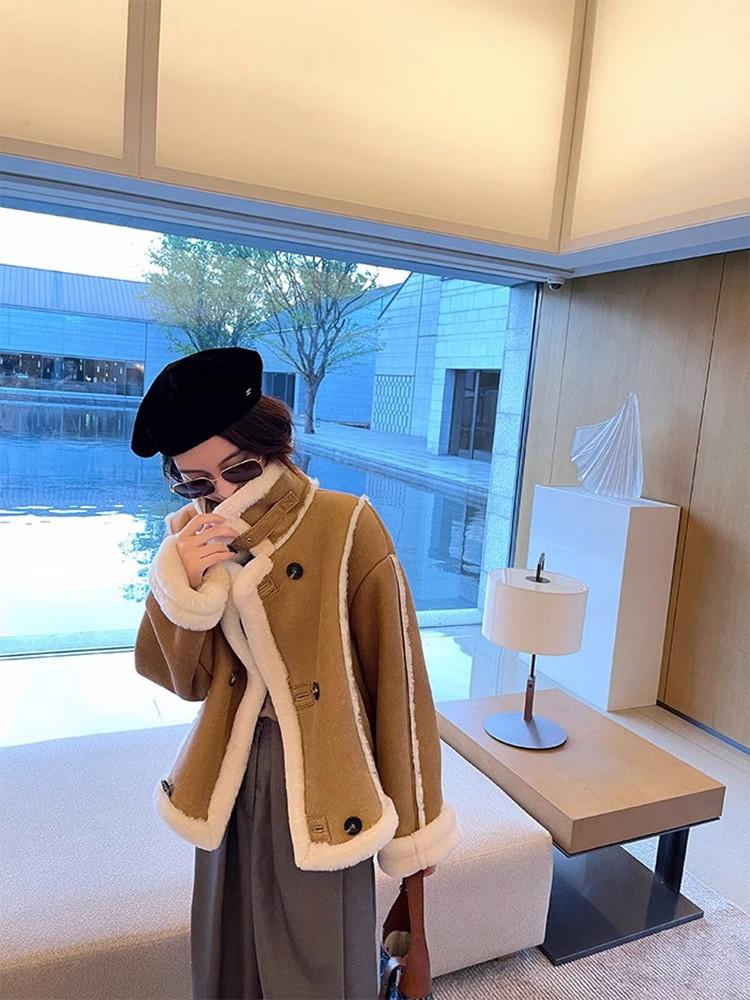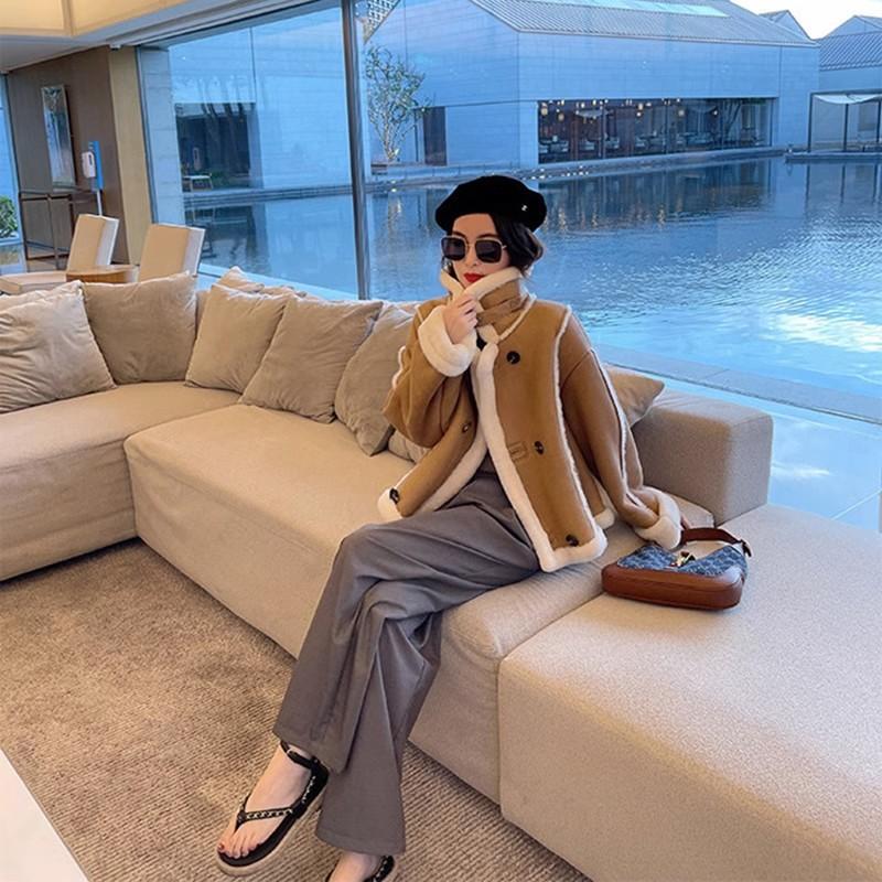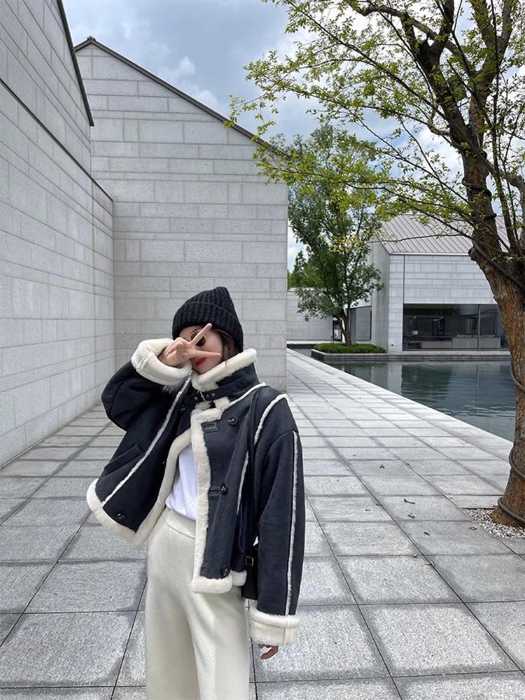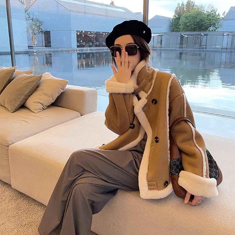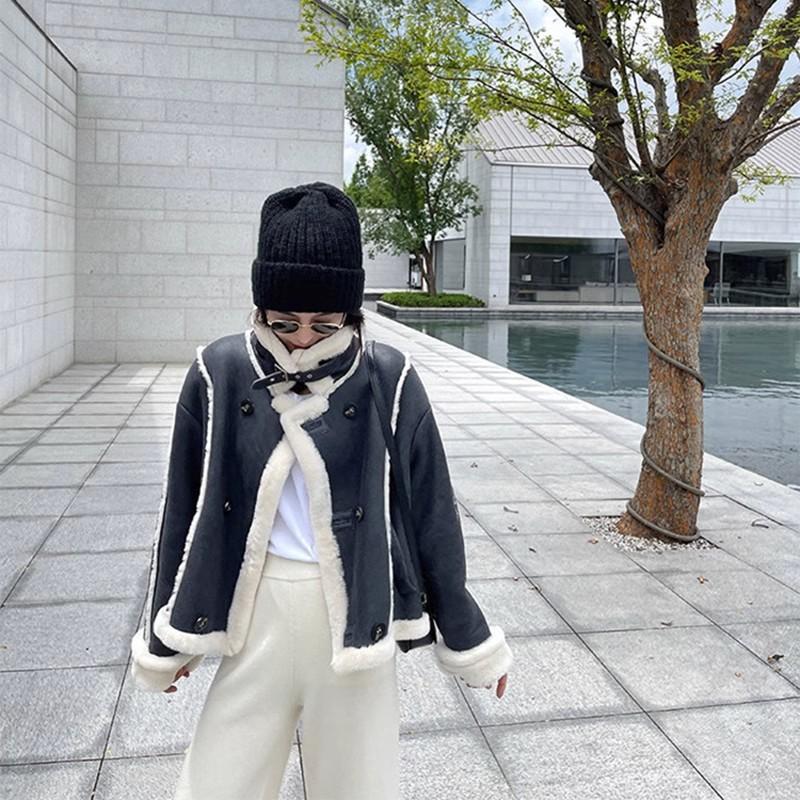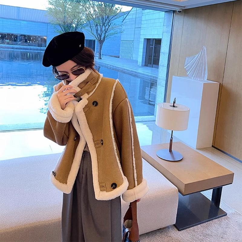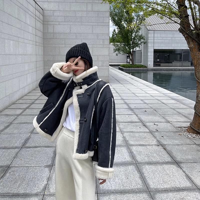 Chaqueta de motociclista de algodón, holgada, de piel gruesa y gamuza, para invierno, talla pequeña, 2024