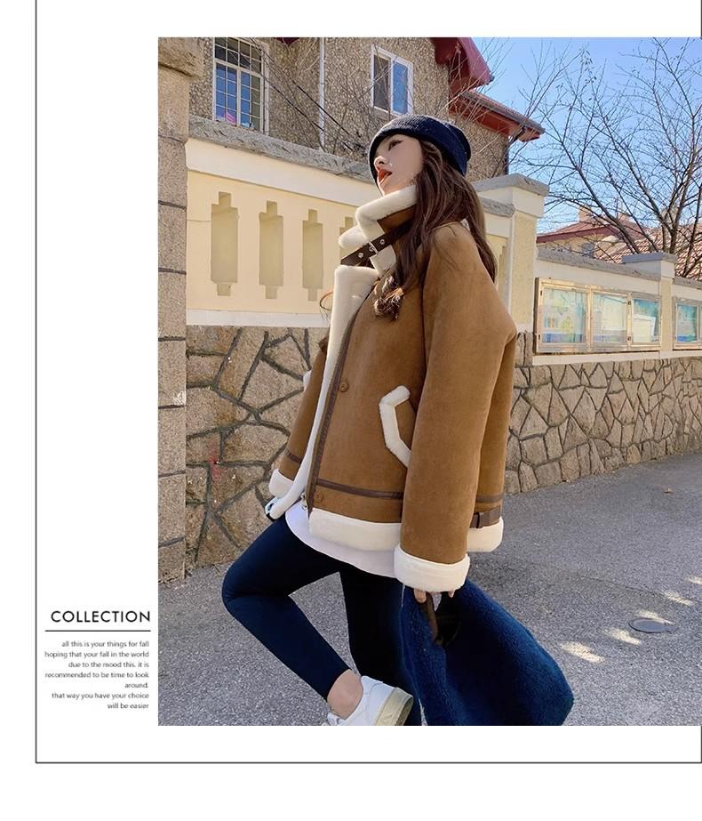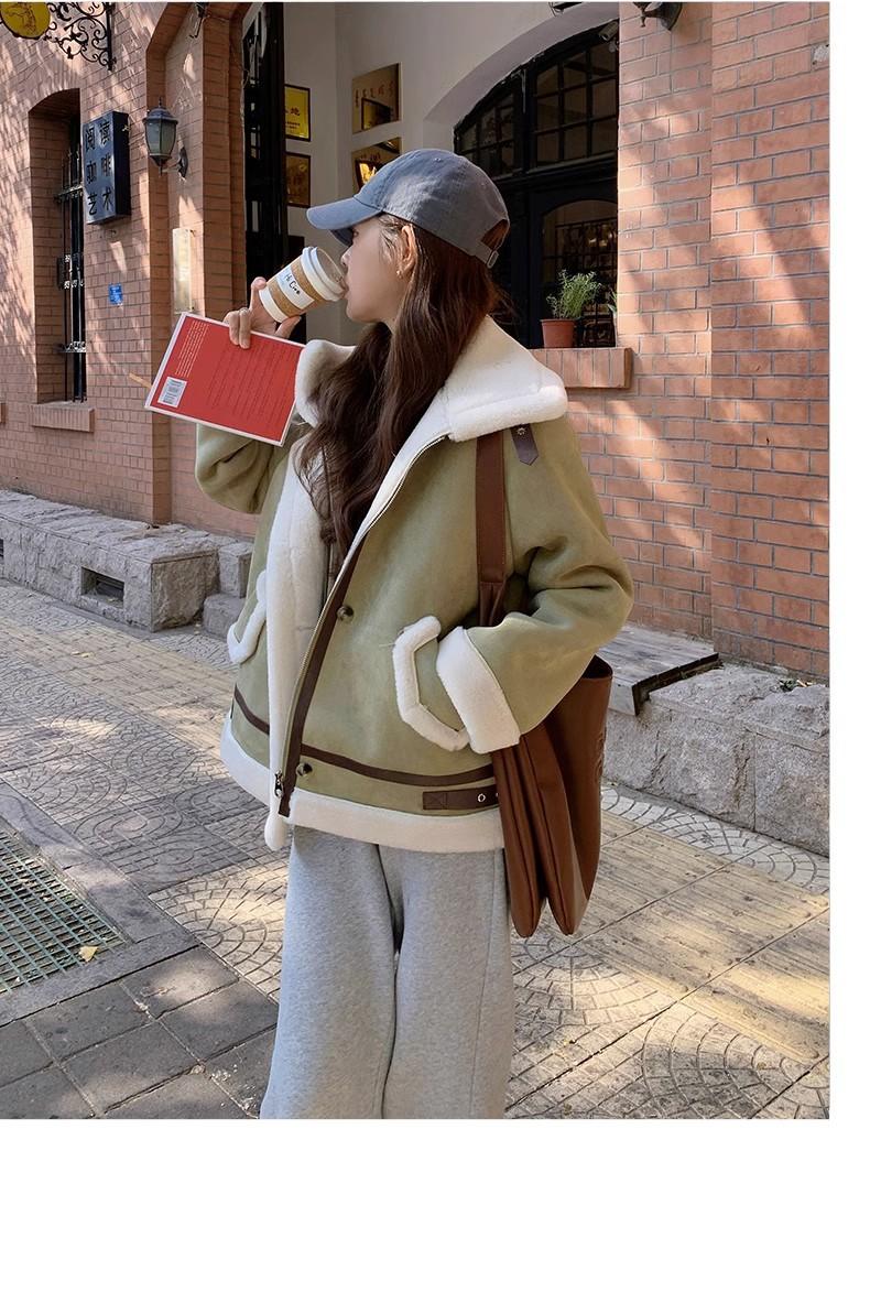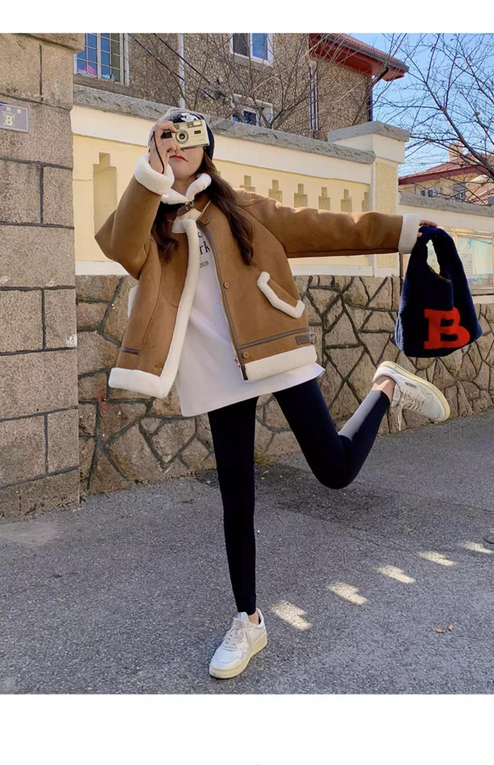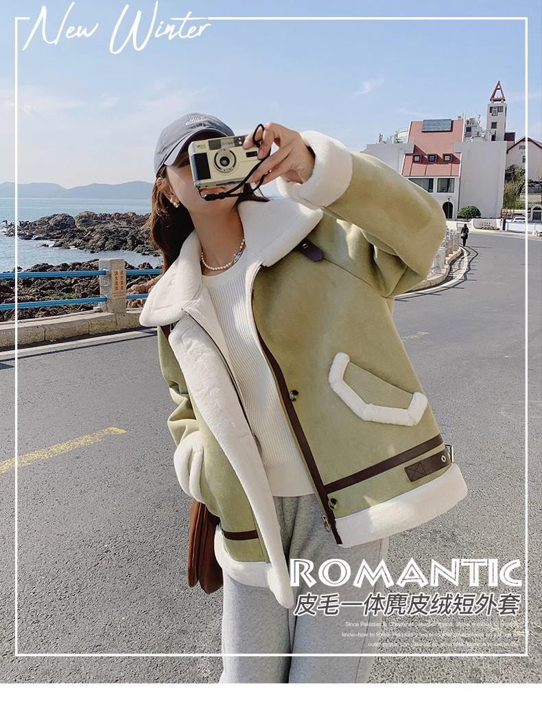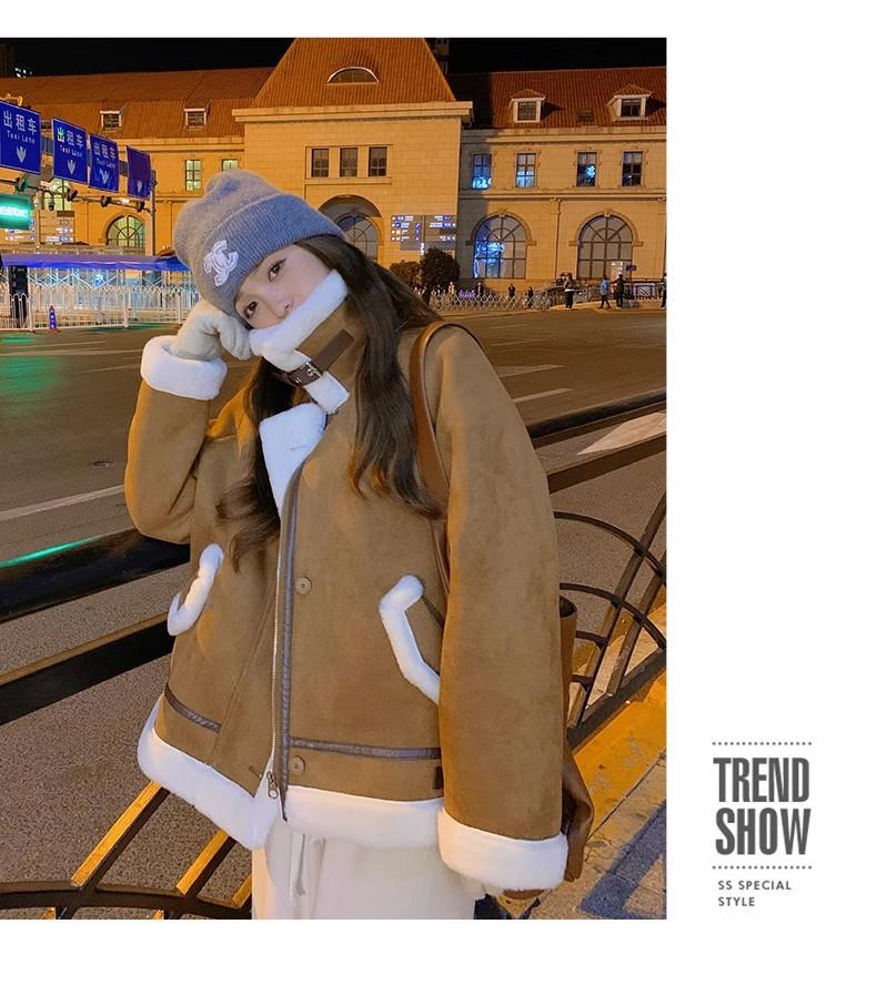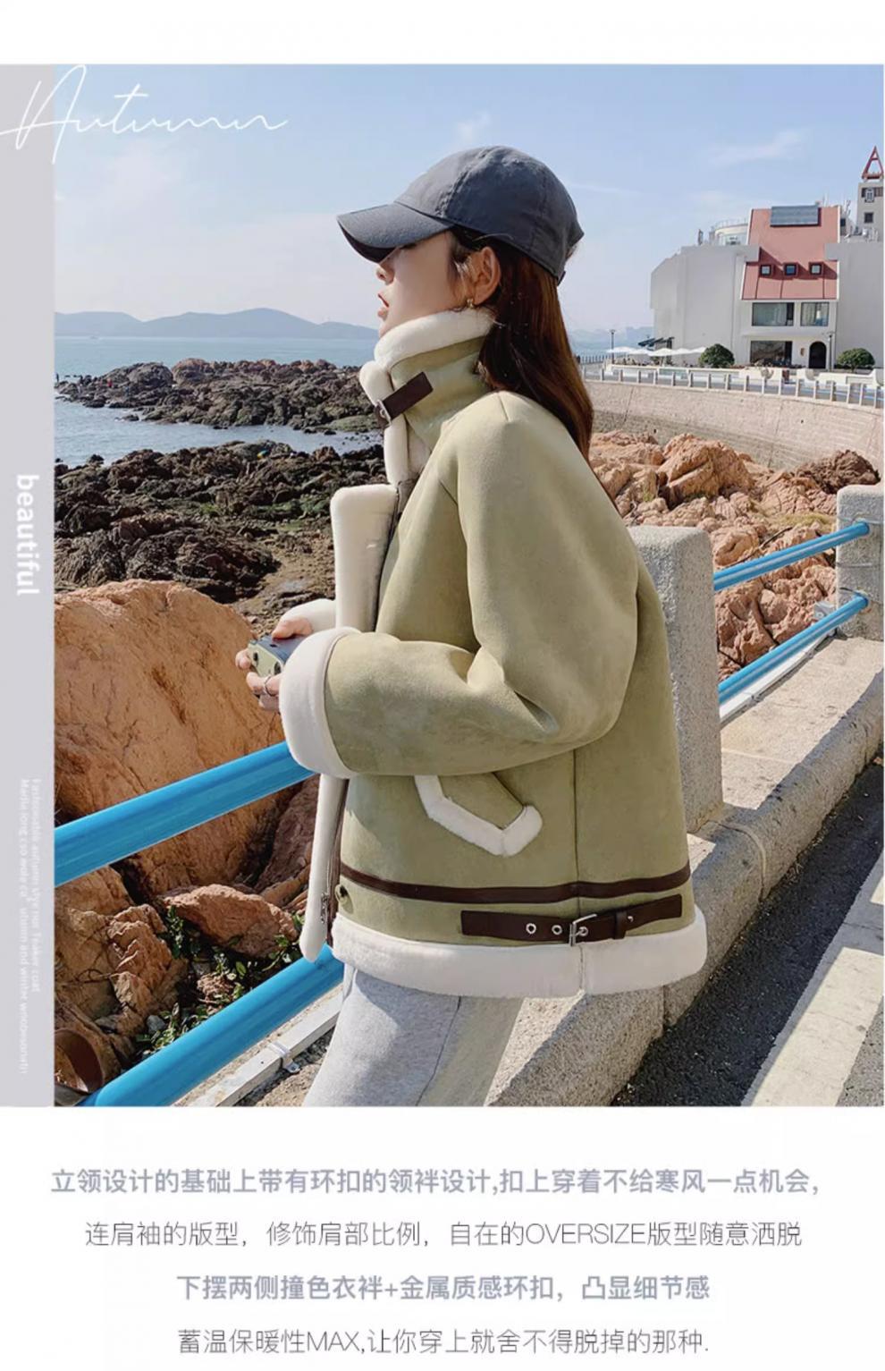 Chaqueta de Algodón para Motocicleta Todo en Uno de Piel para Mujer Corta Invierno 2024 Nuevo Estilo Coreano Chaqueta Pequeña de Gamuza Lana de Cordero