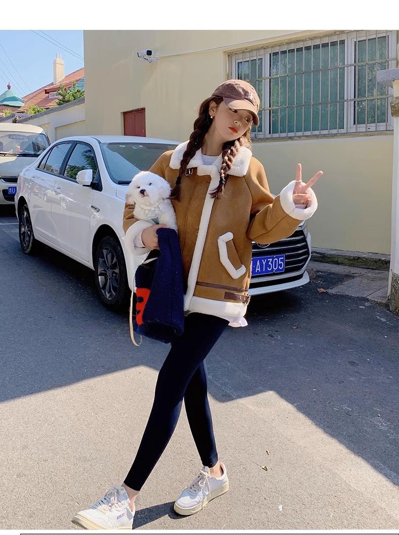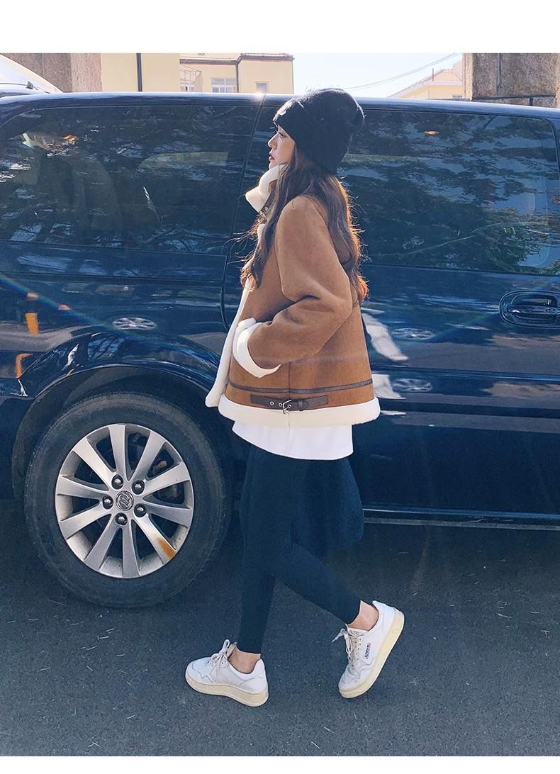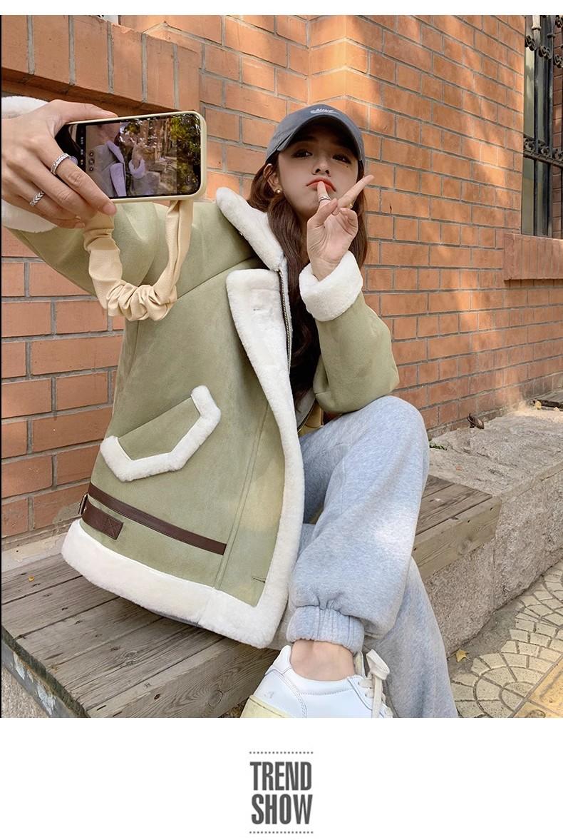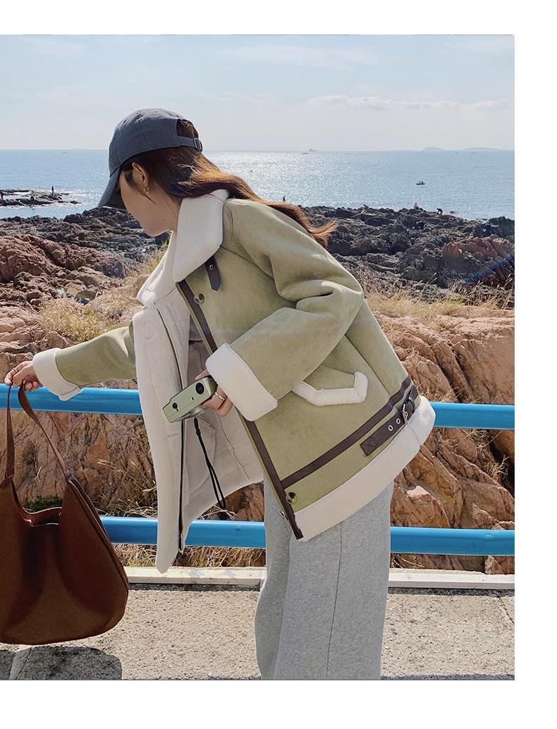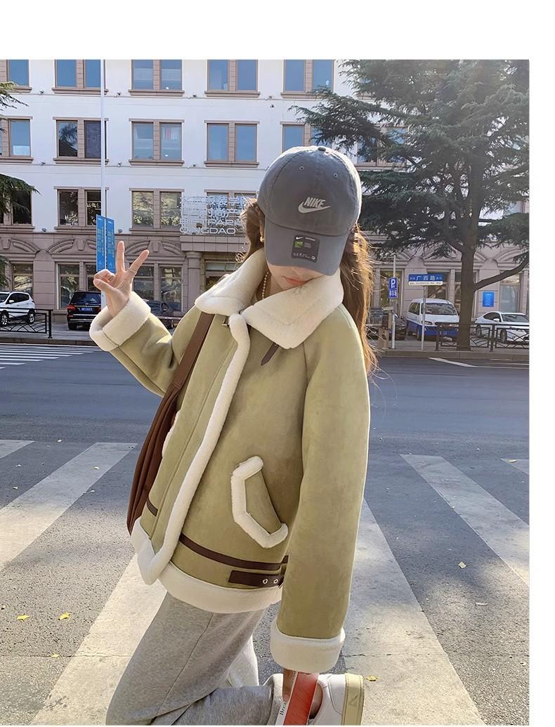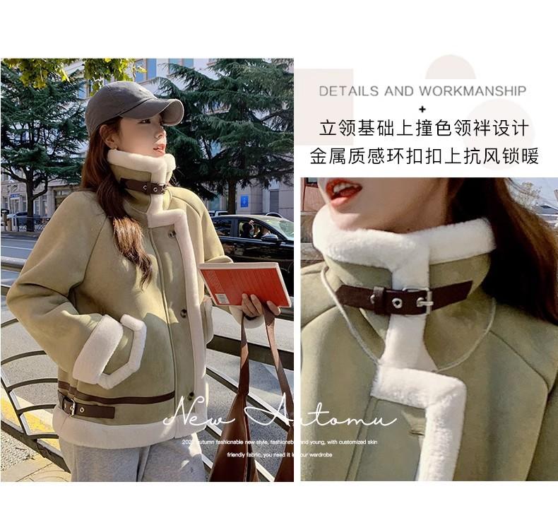 Chaqueta de Algodón para Motocicleta Todo en Uno de Piel para Mujer Corta Invierno 2024 Nuevo Estilo Coreano Chaqueta Pequeña de Gamuza Lana de Cordero