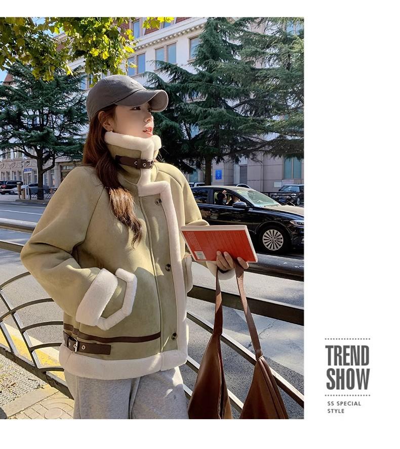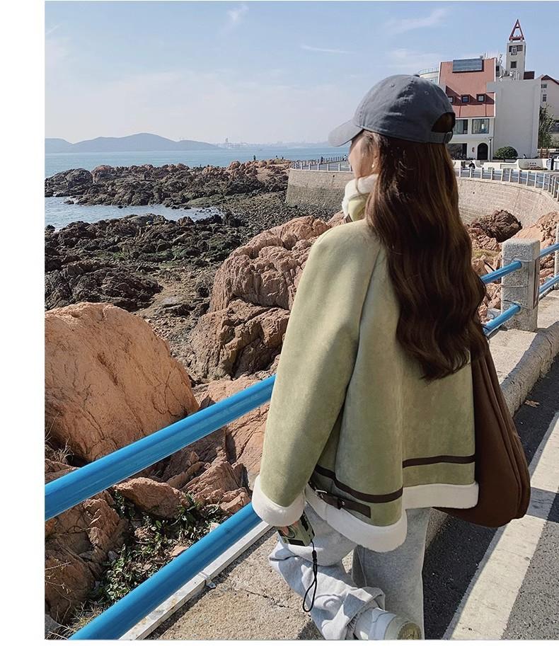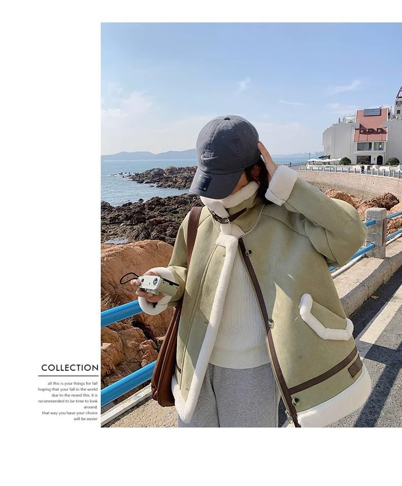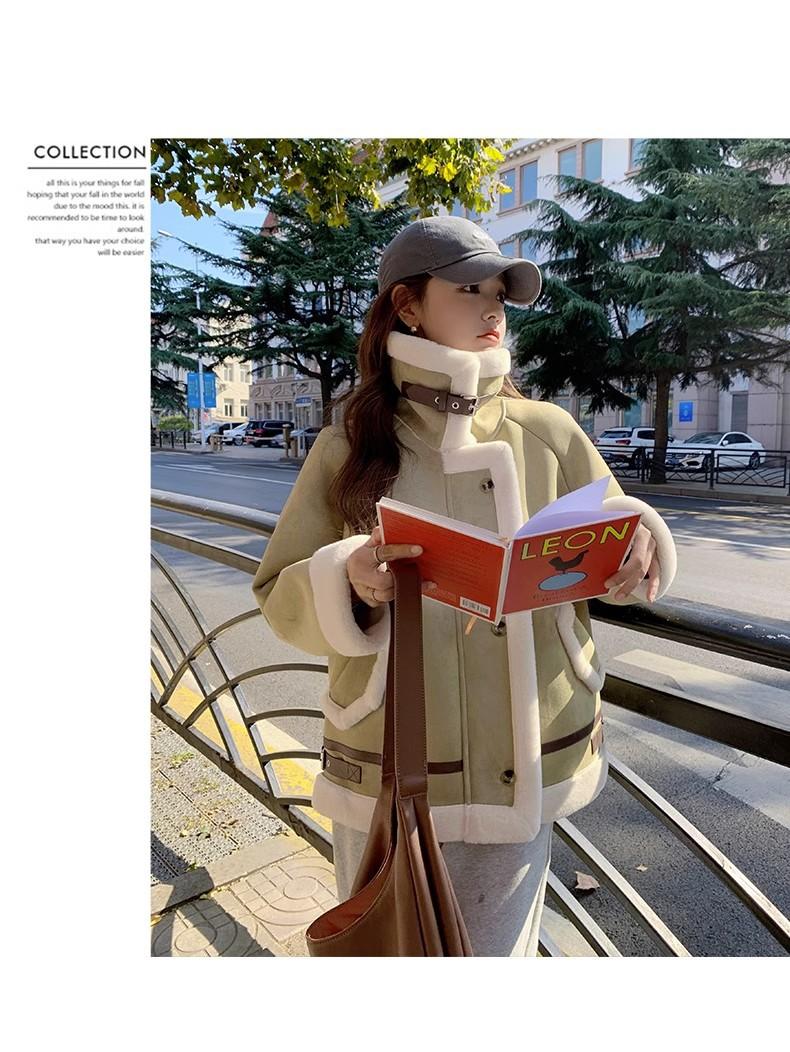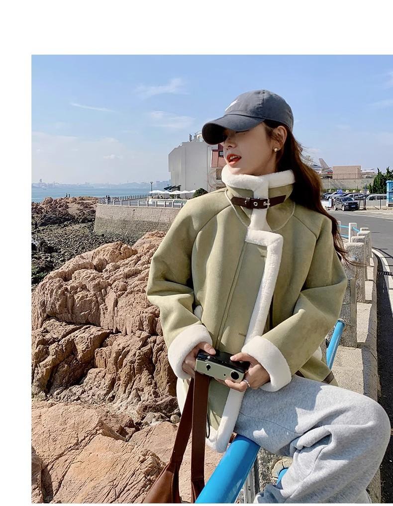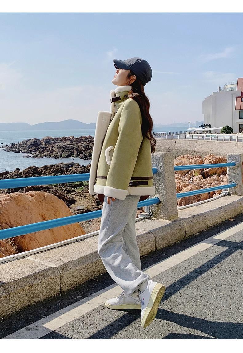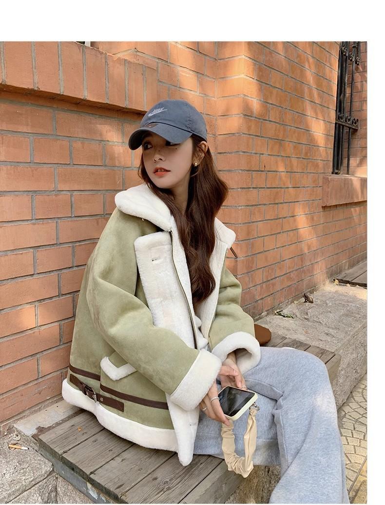 Chaqueta de Algodón para Motocicleta Todo en Uno de Piel para Mujer Corta Invierno 2024 Nuevo Estilo Coreano Chaqueta Pequeña de Gamuza Lana de Cordero